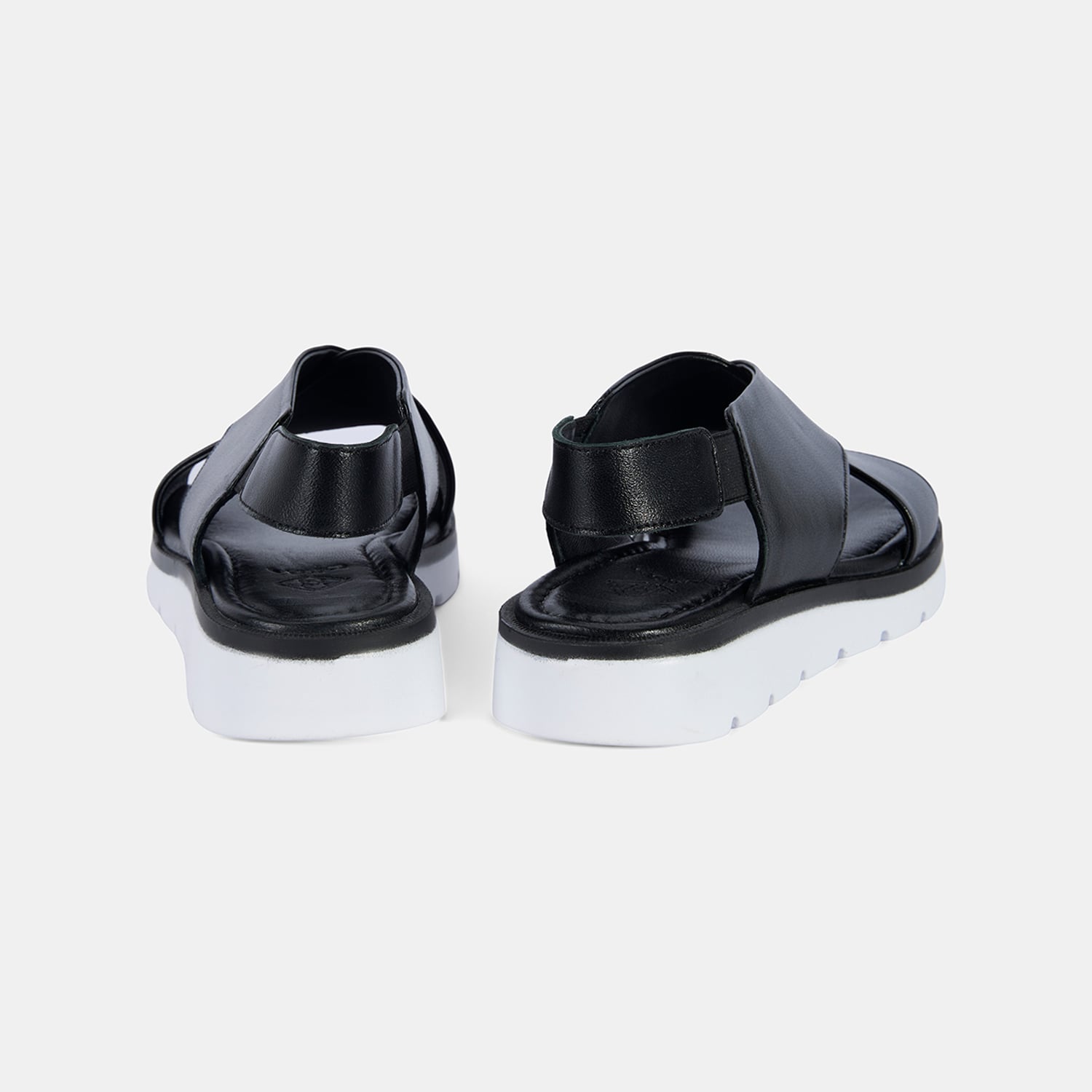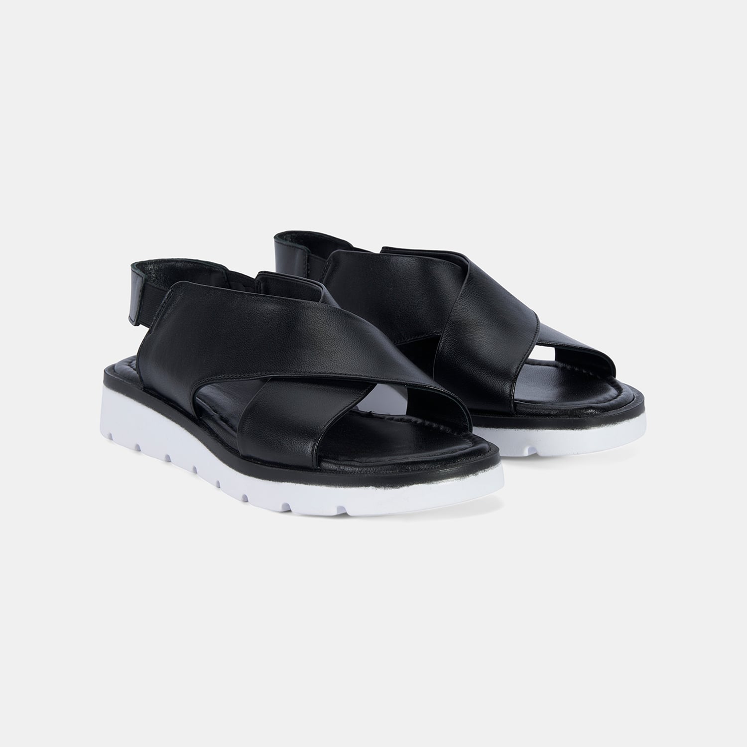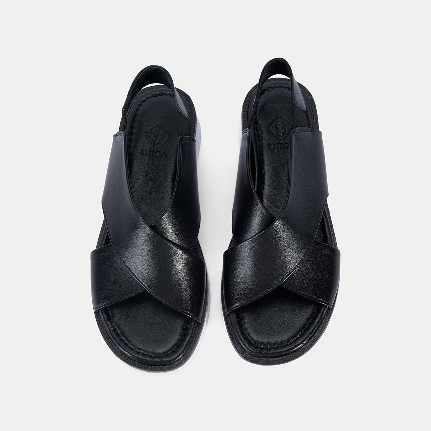 Kadın Siyah Çapraz Bantlı Lastikli Deri Sandalet