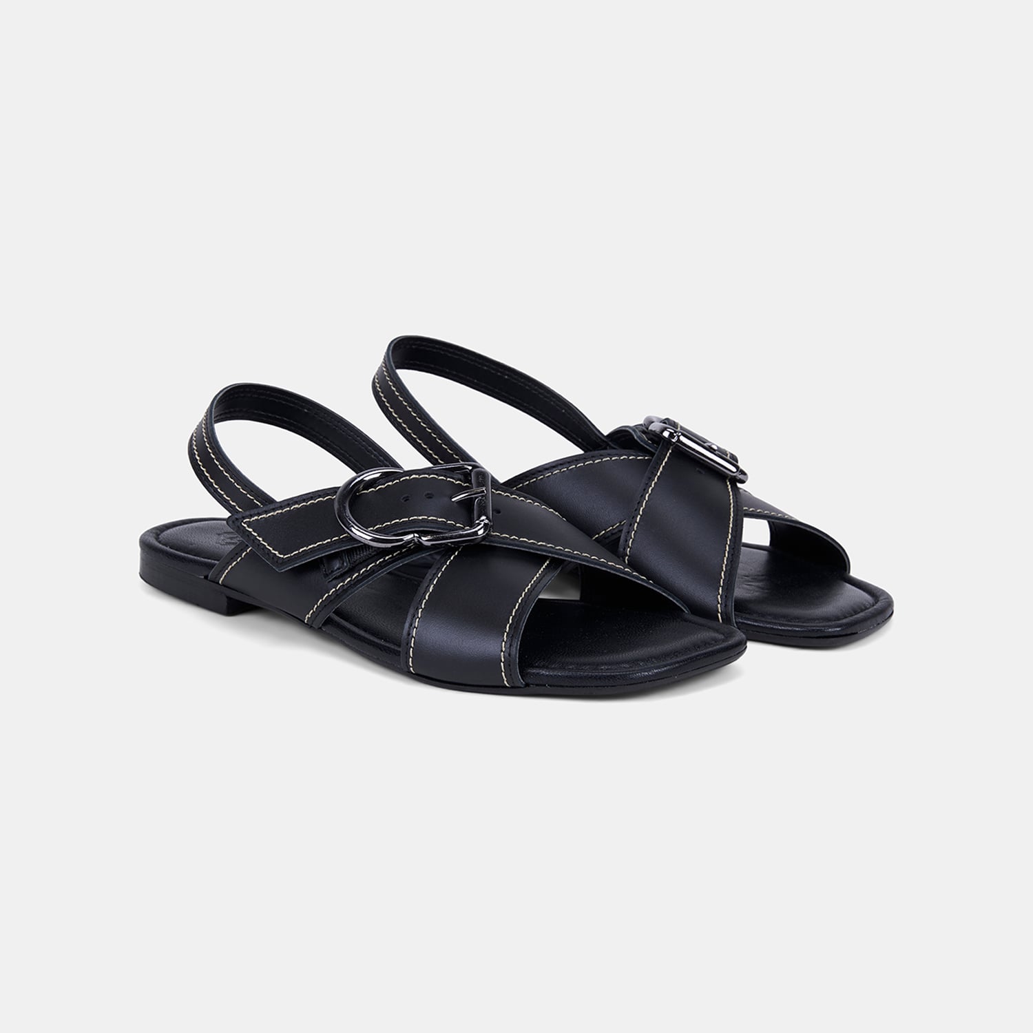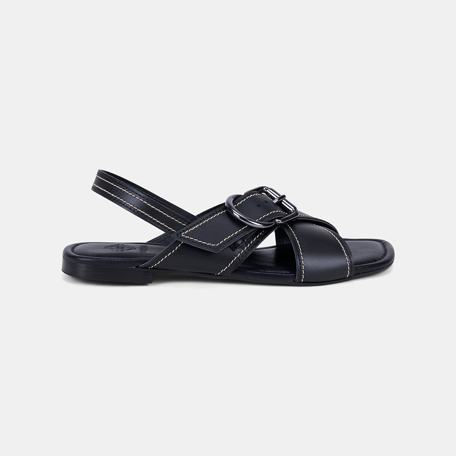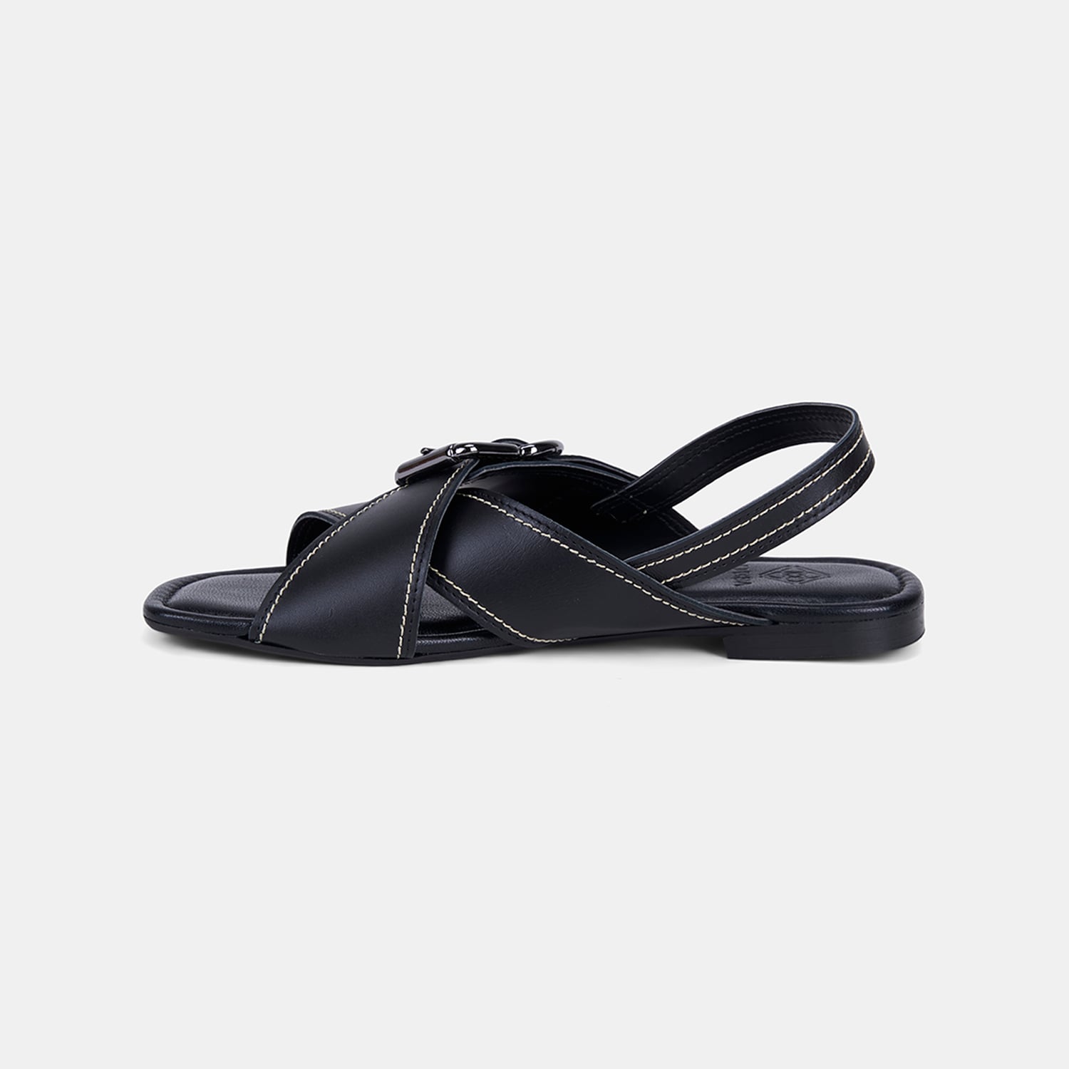 Kadın Siyah Çapraz Bantlı Tokalı Deri Sandalet