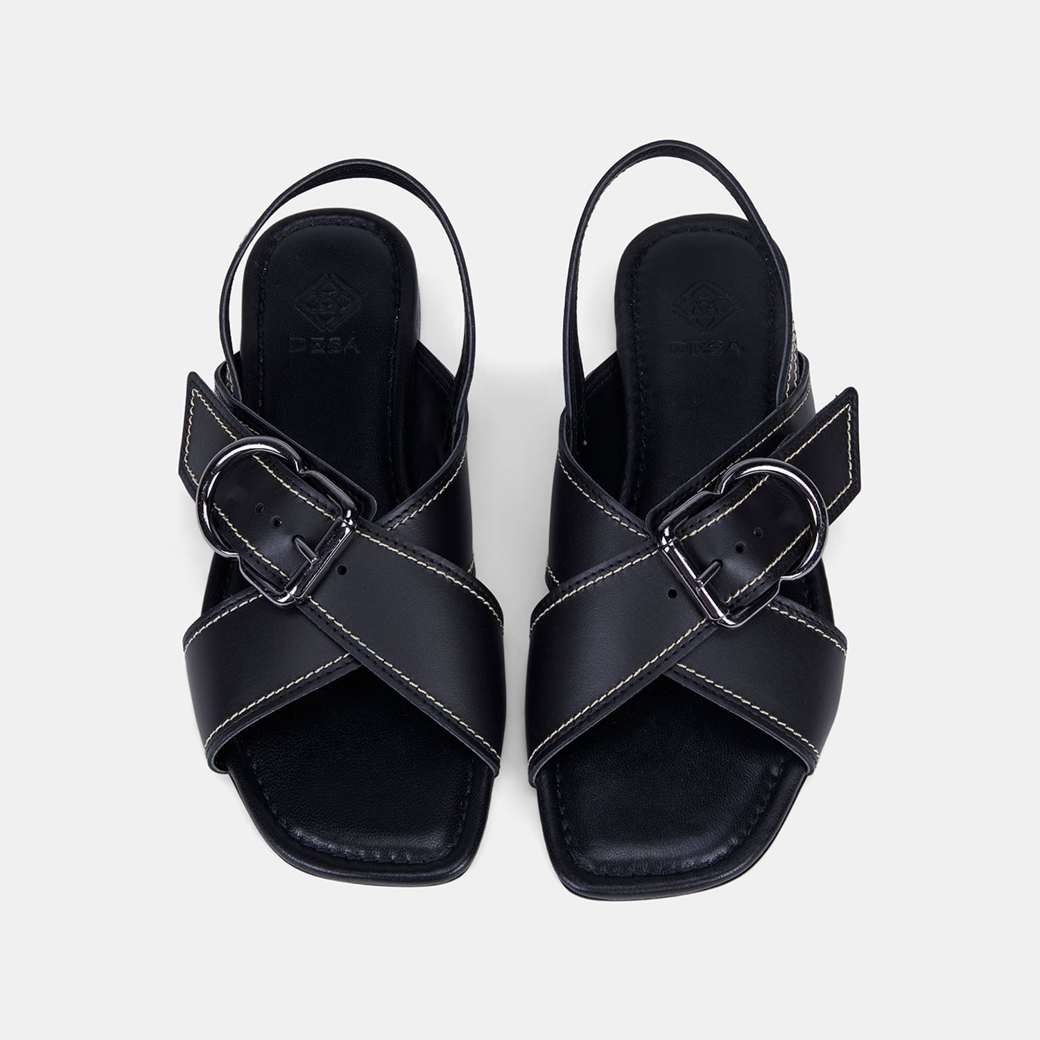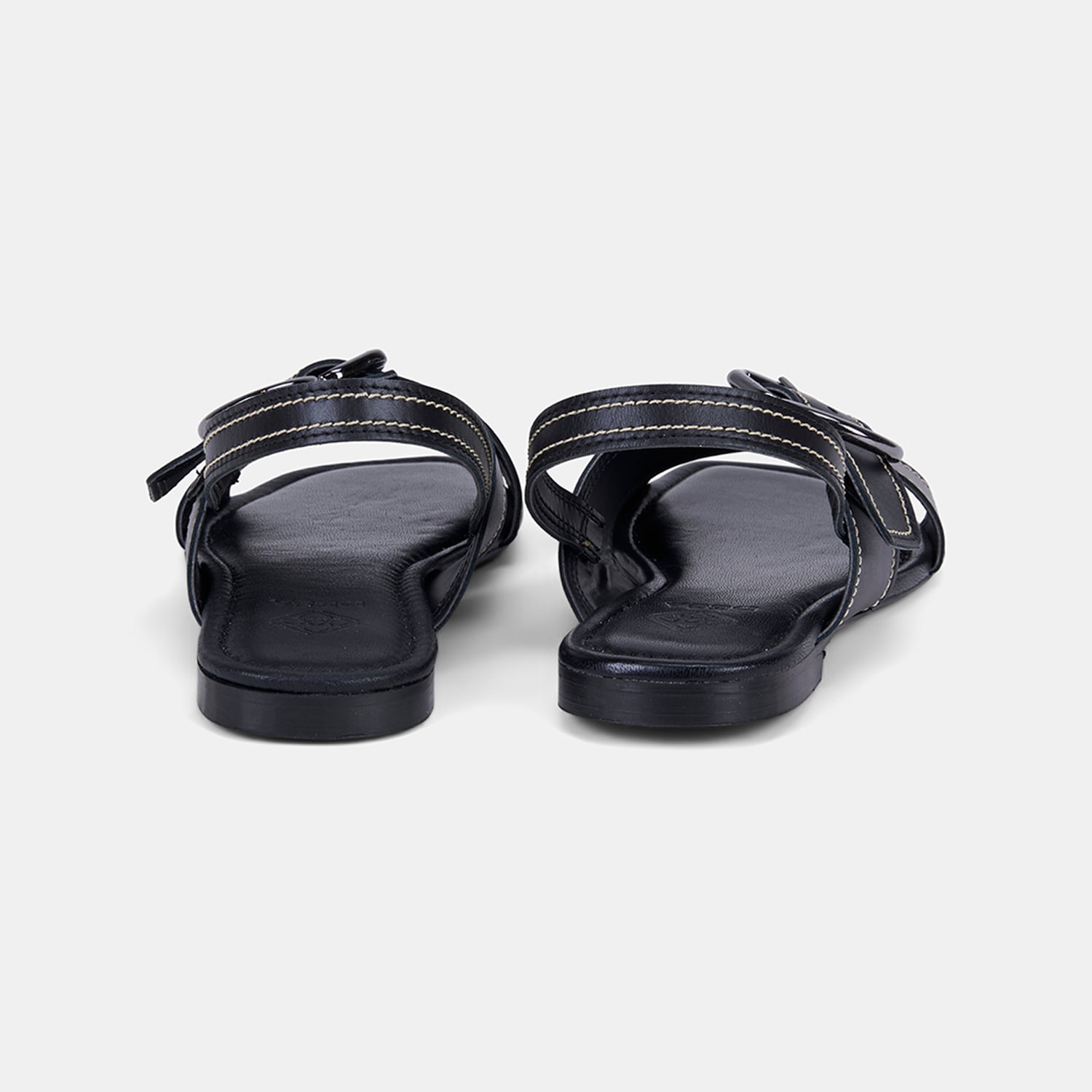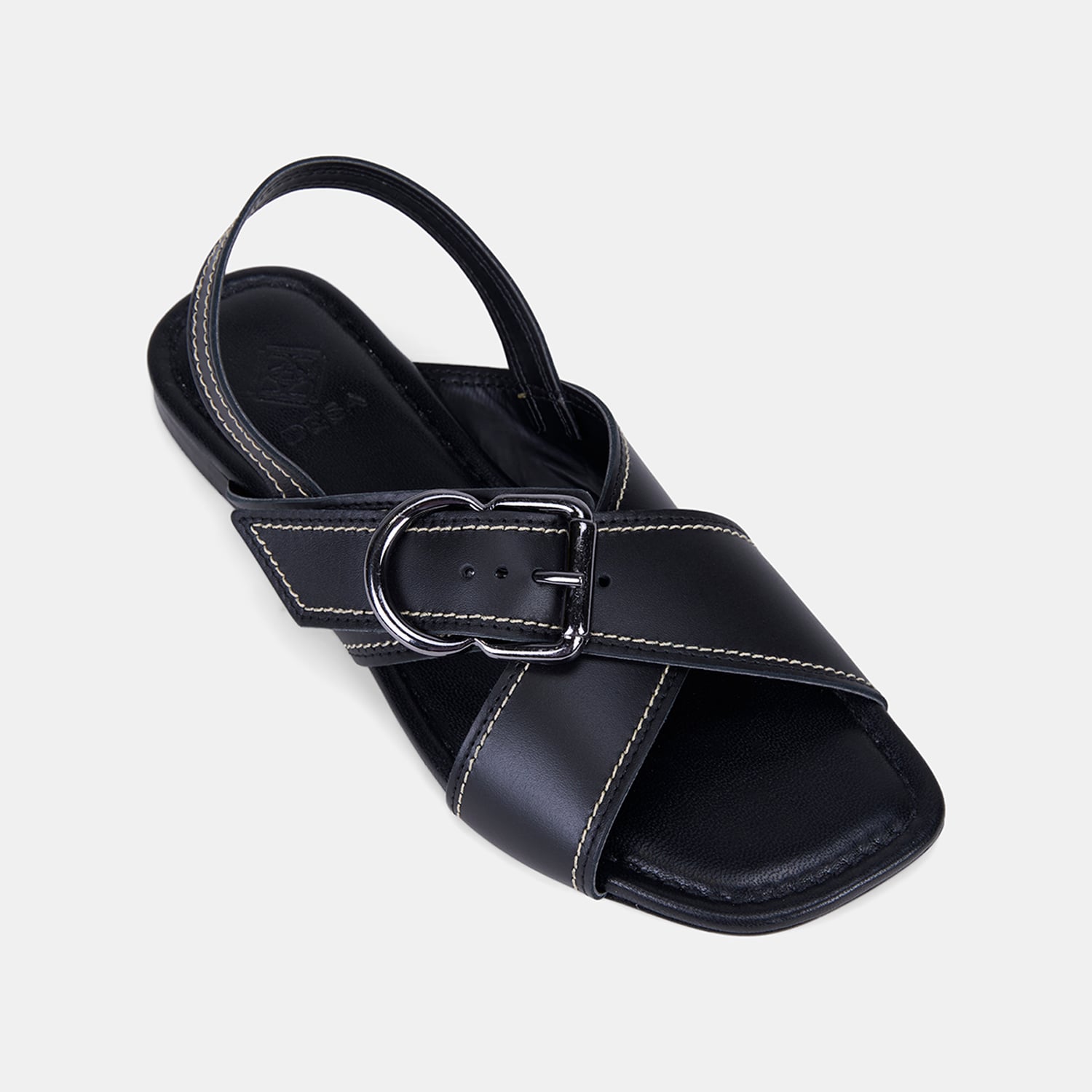 Kadın Siyah Çapraz Bantlı Tokalı Deri Sandalet