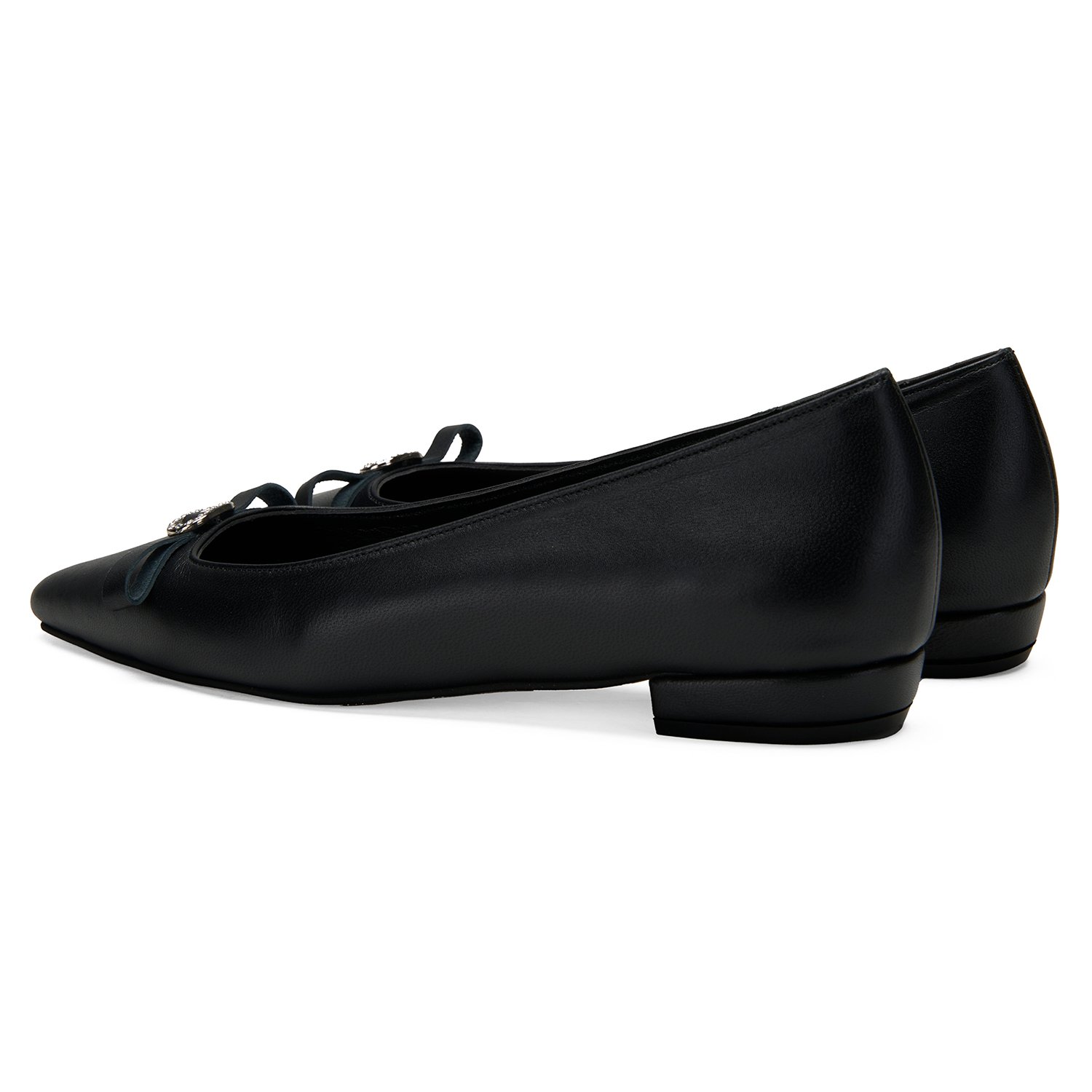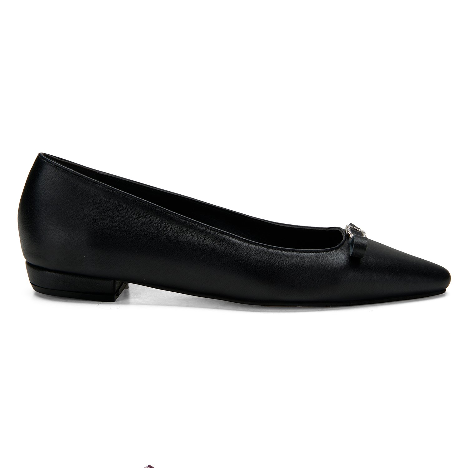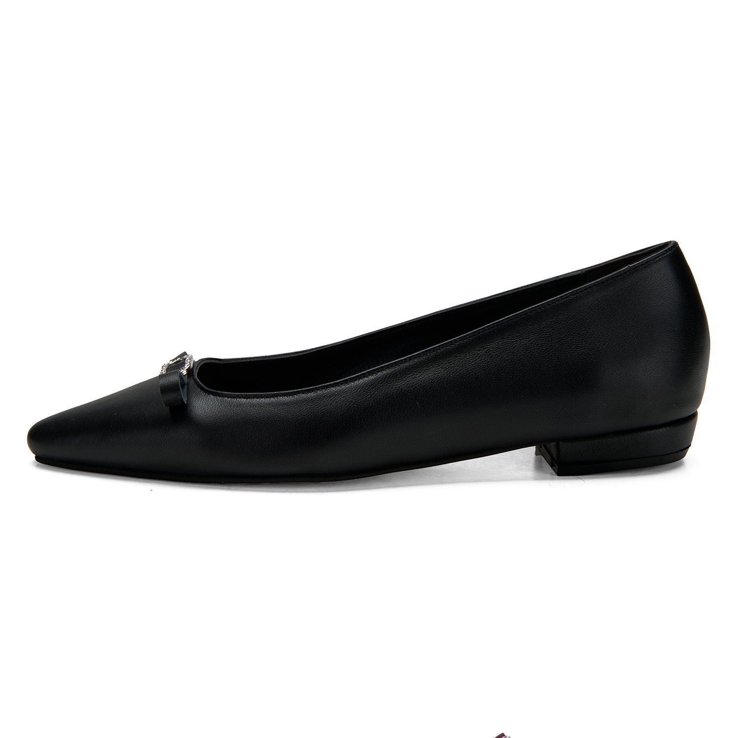 %100 deri, deri iç tabanlı, deri astarlı, neolit tabanlı, taşlı metal aksesuar detaylı, kadın babet.