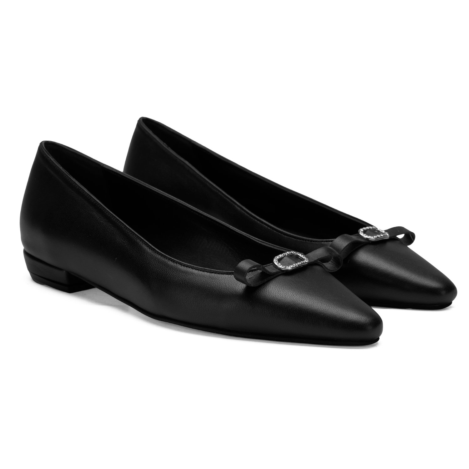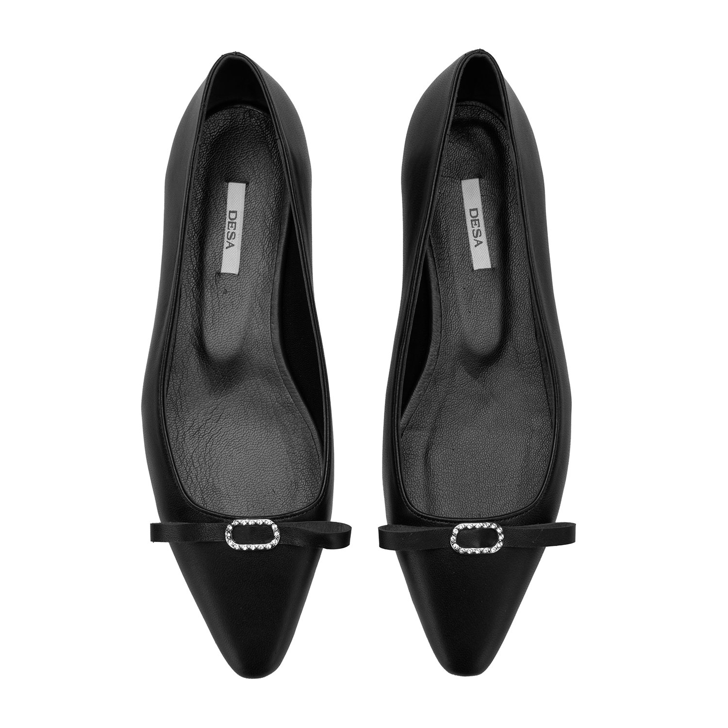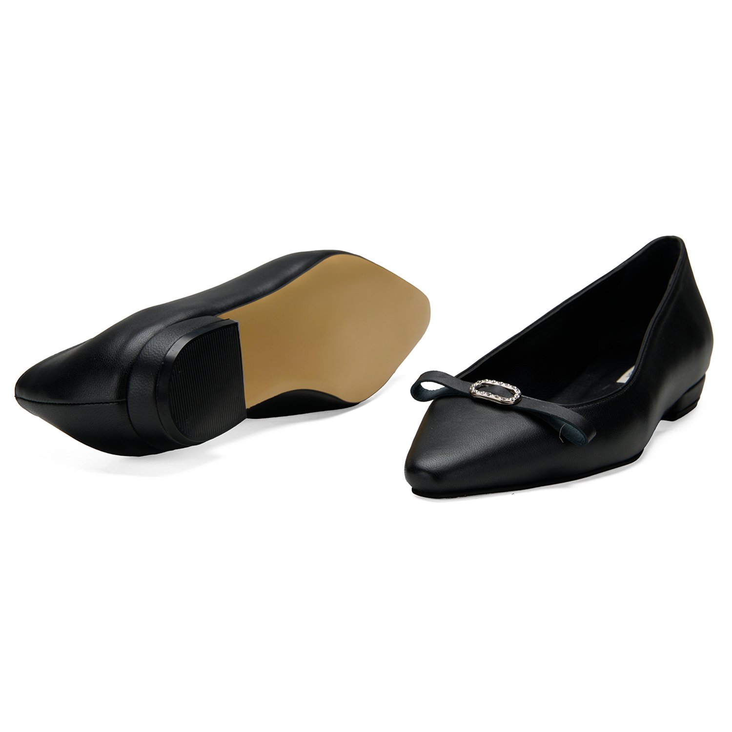 %100 deri, deri iç tabanlı, deri astarlı, neolit tabanlı, taşlı metal aksesuar detaylı, kadın babet.