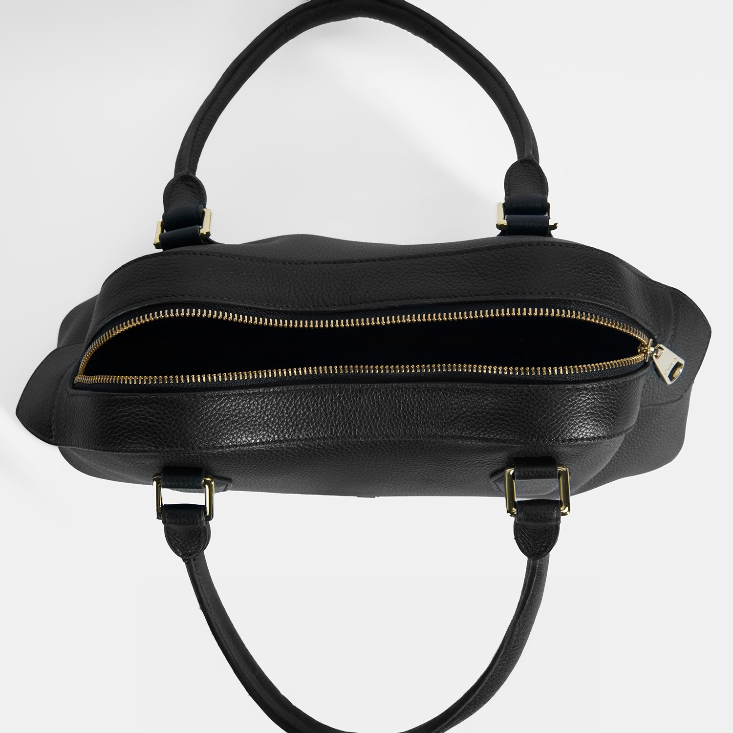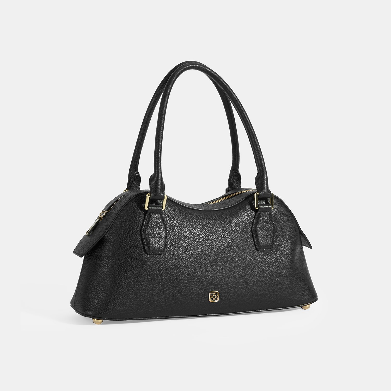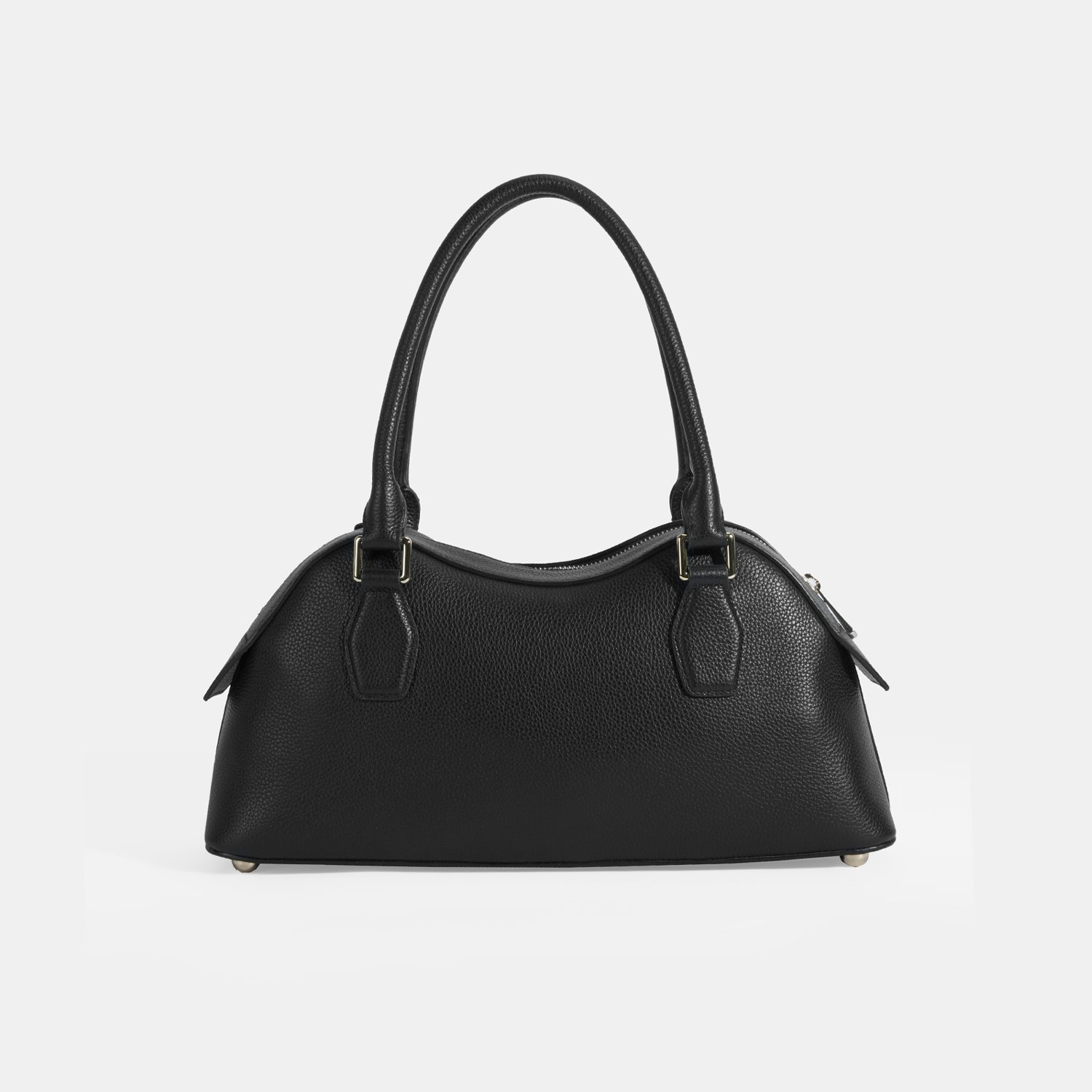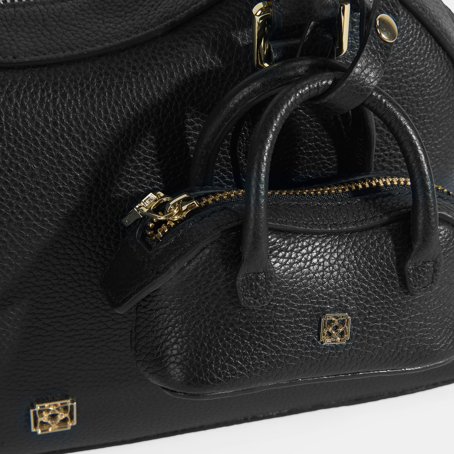 Kadın Siyah Deri Çanta Aksesuarlı Büyük Omuz Çantası