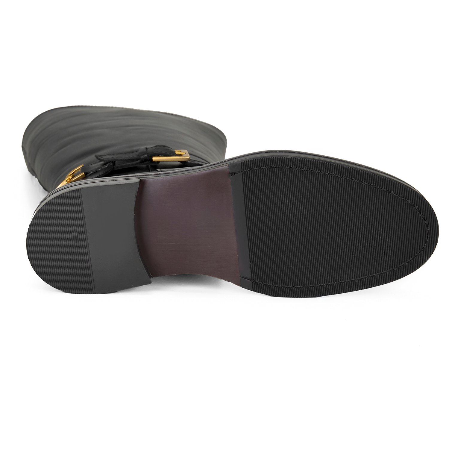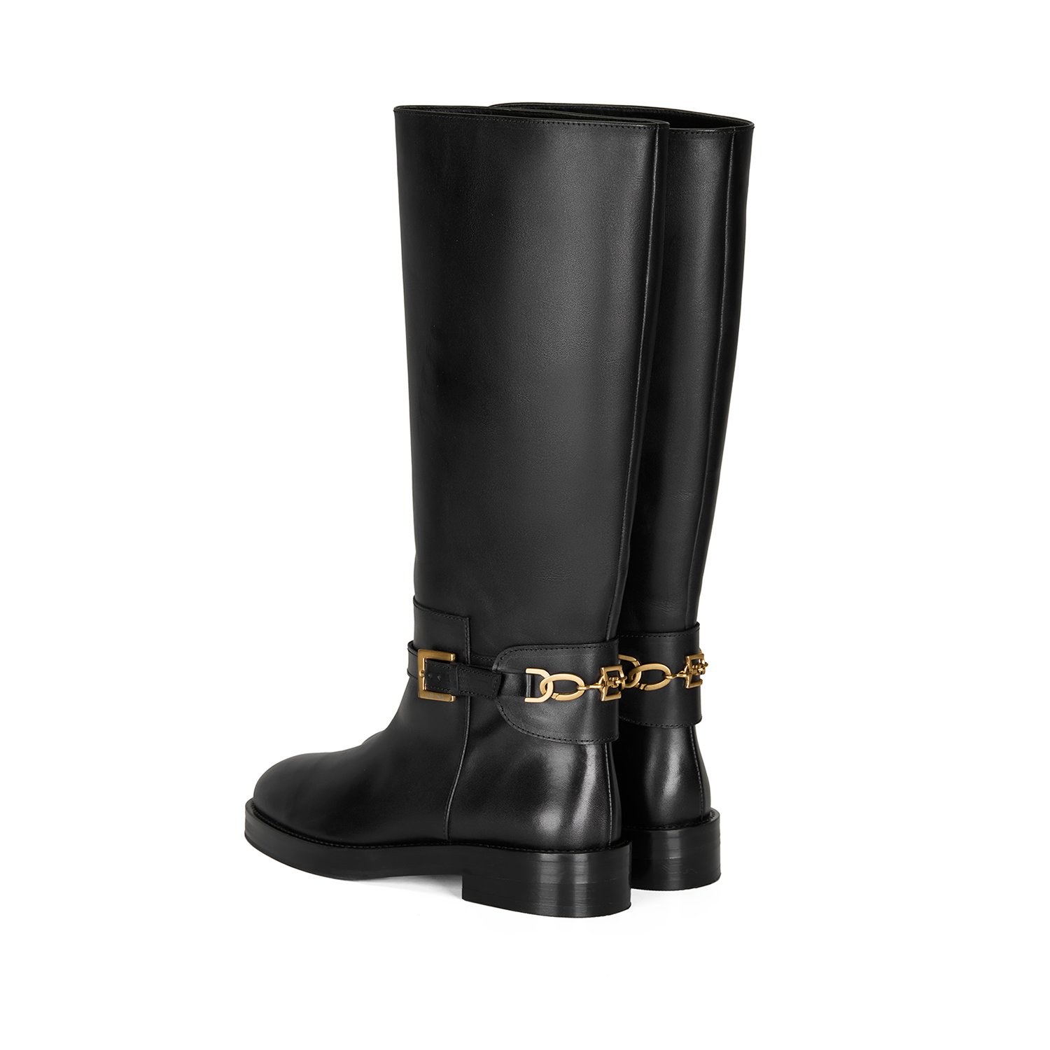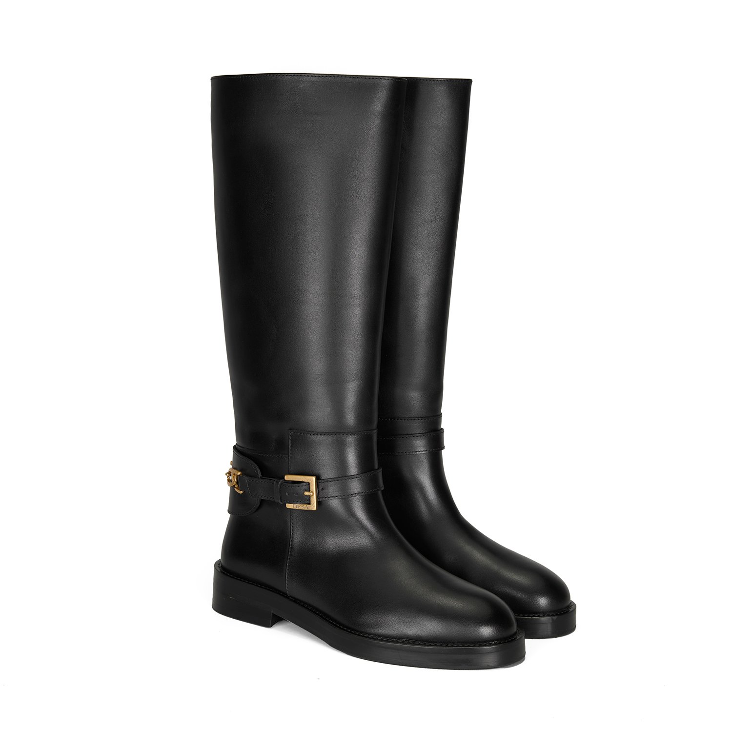 %100 deri, deri iç tabanlı, deri tekstil astarlı, neolit tabanlı, çıkarılabilir metal aksesuar detaylı kadın çizme.