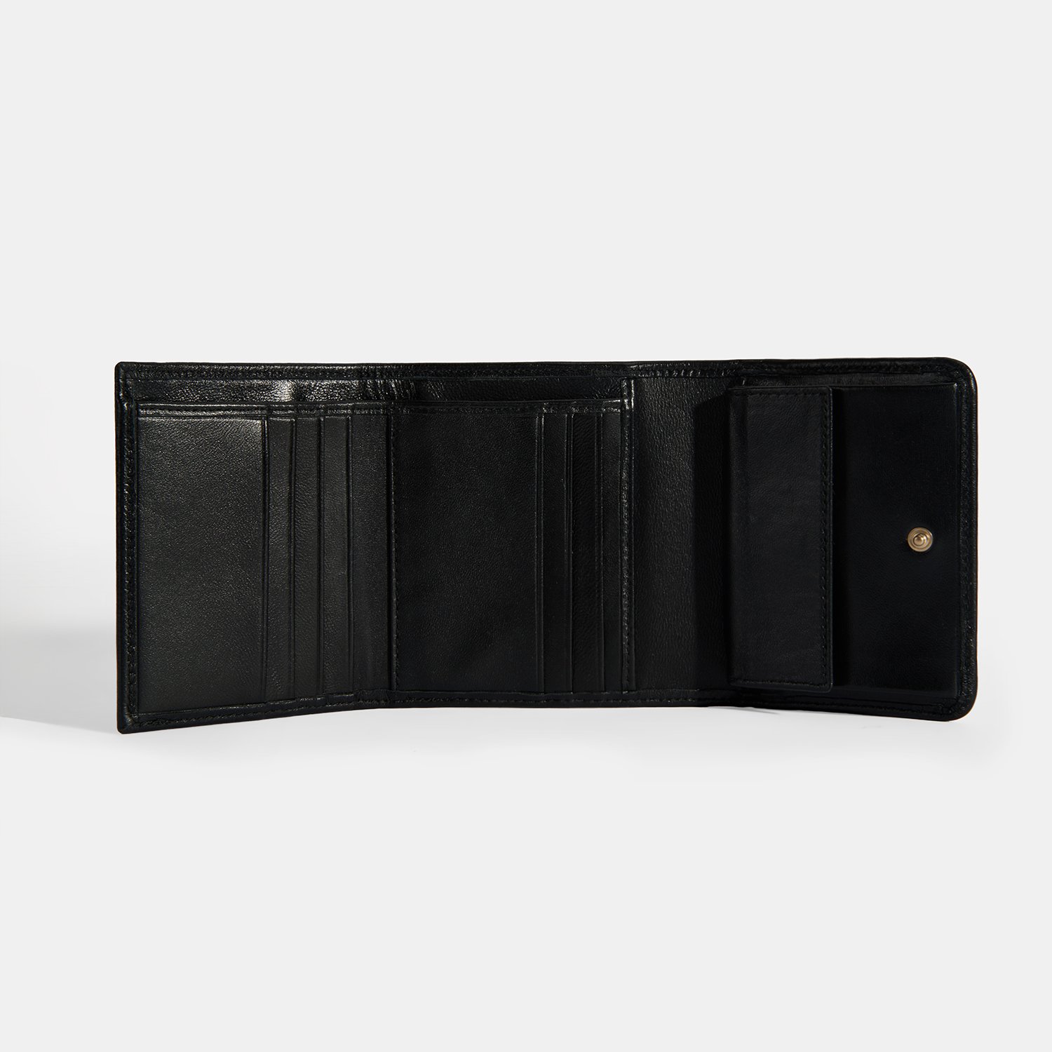 6 kredi kartı için özel bölme, çıtçıtlı bozuk para bölmesi ve kağıt para bölmesi bulunmaktadır.