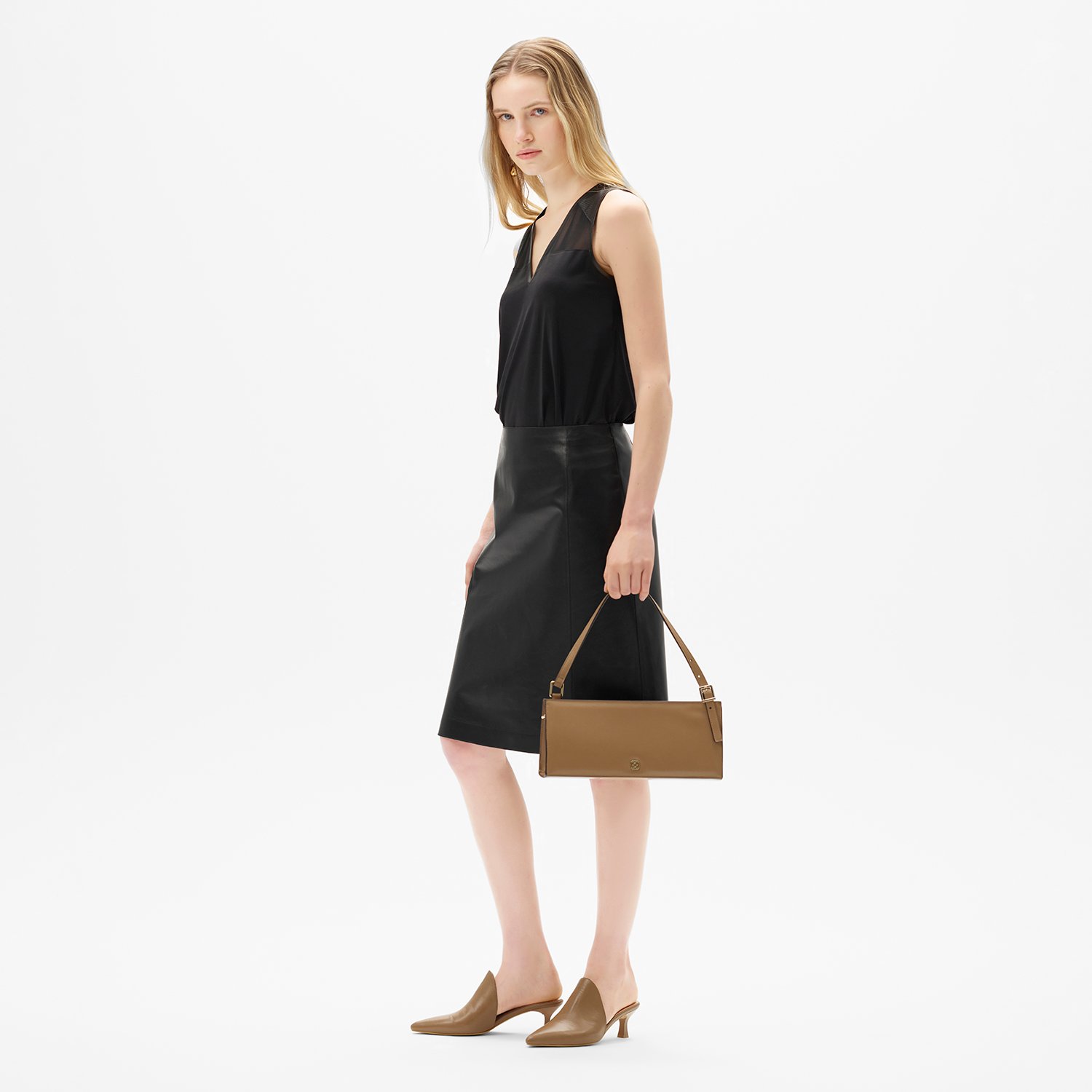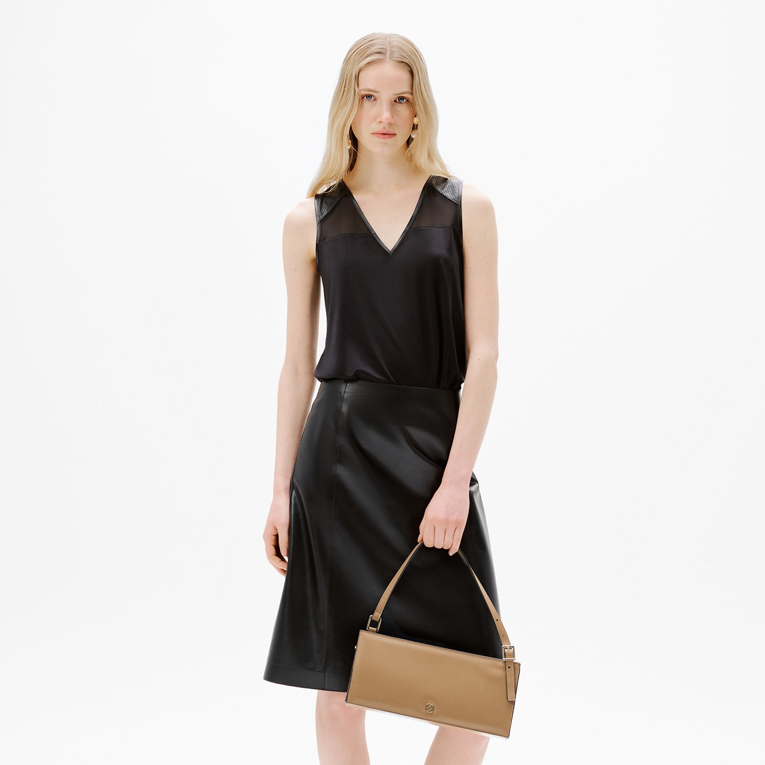Kadın Siyah Deri Detaylı Perforeli Bluz