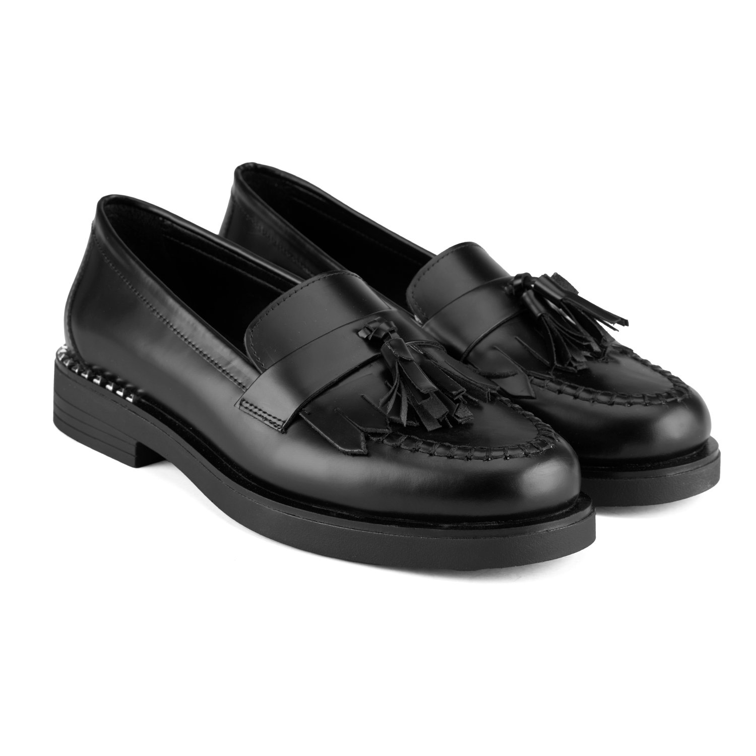 %100 deri, deri iç tabanlı, deri astarlı, püskül detaylı, neolit tabanlı, kadın loafer.