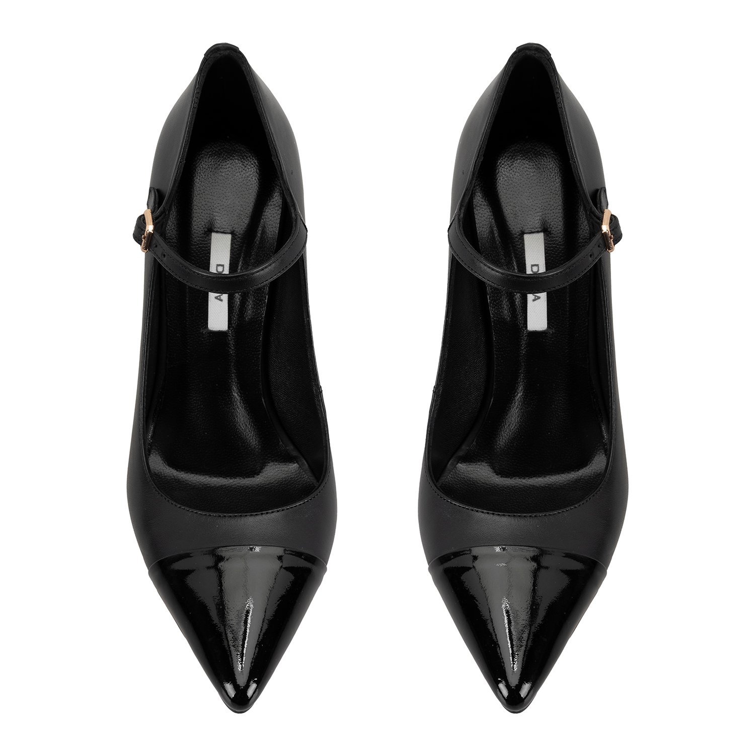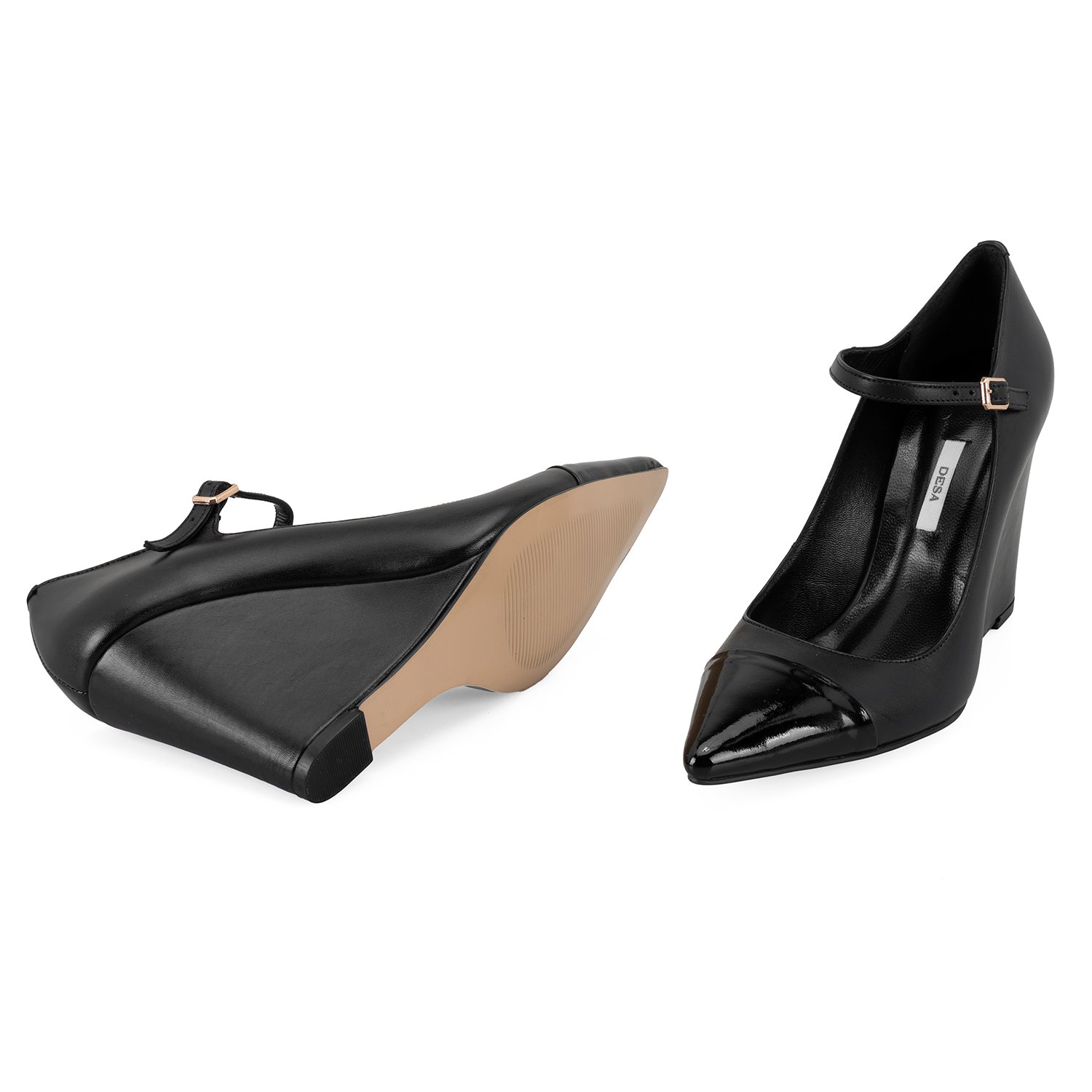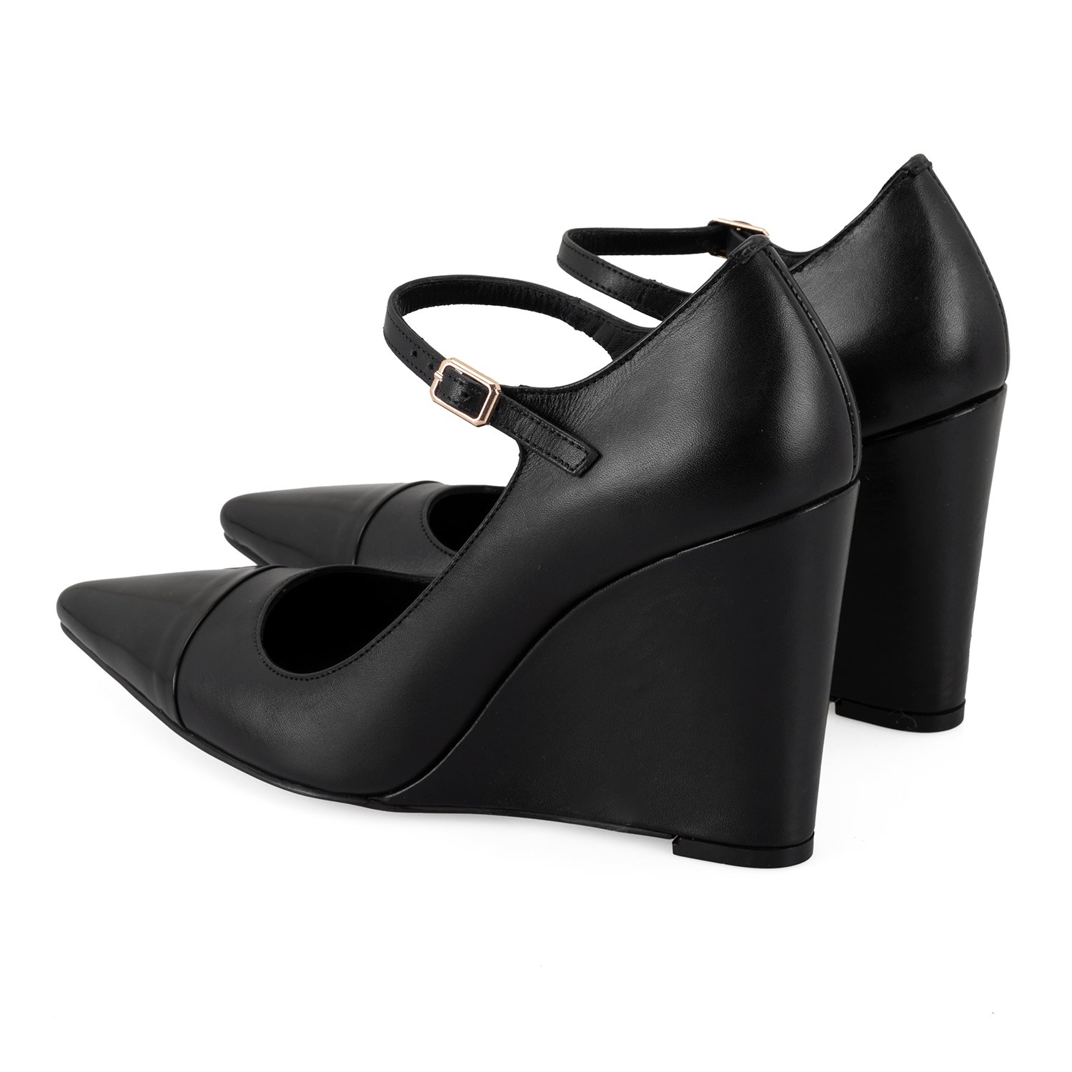 %80 deri %20 rugan, deri iç tabanlı, deri astarlı, ayarlanabilir metal tokalı, neolit tabanlı, dolgu topuklu kadın mary jane ayakkabı.
