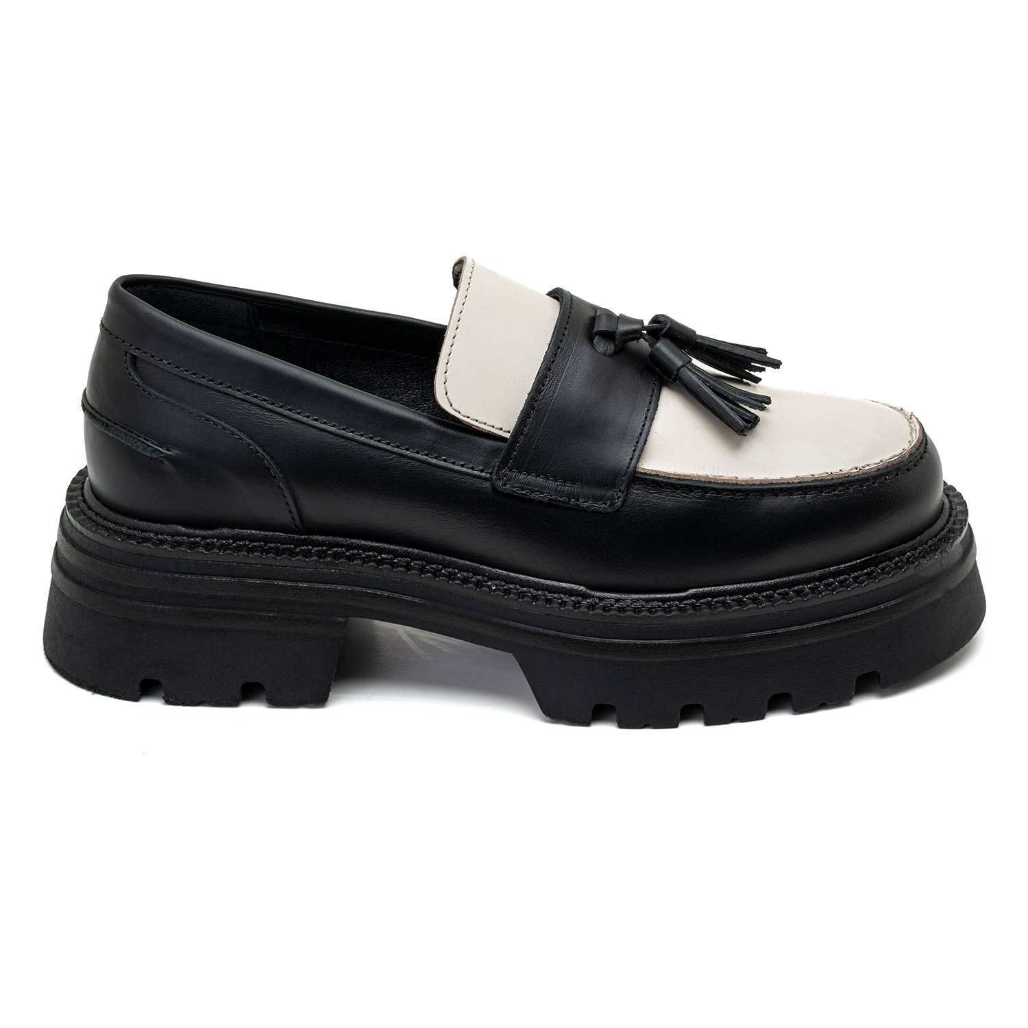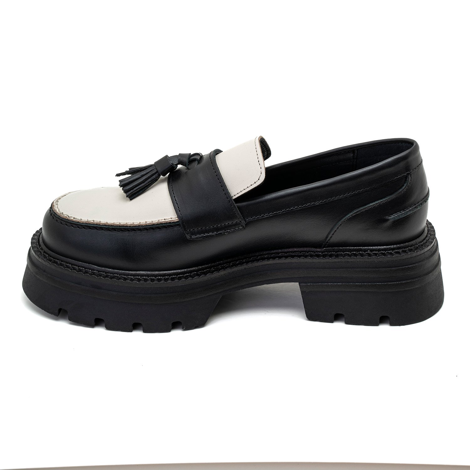 %100 deri, deri iç tabanlı, deri astarlı, thermo tabanlı, püskül detaylı, kadın loafer.