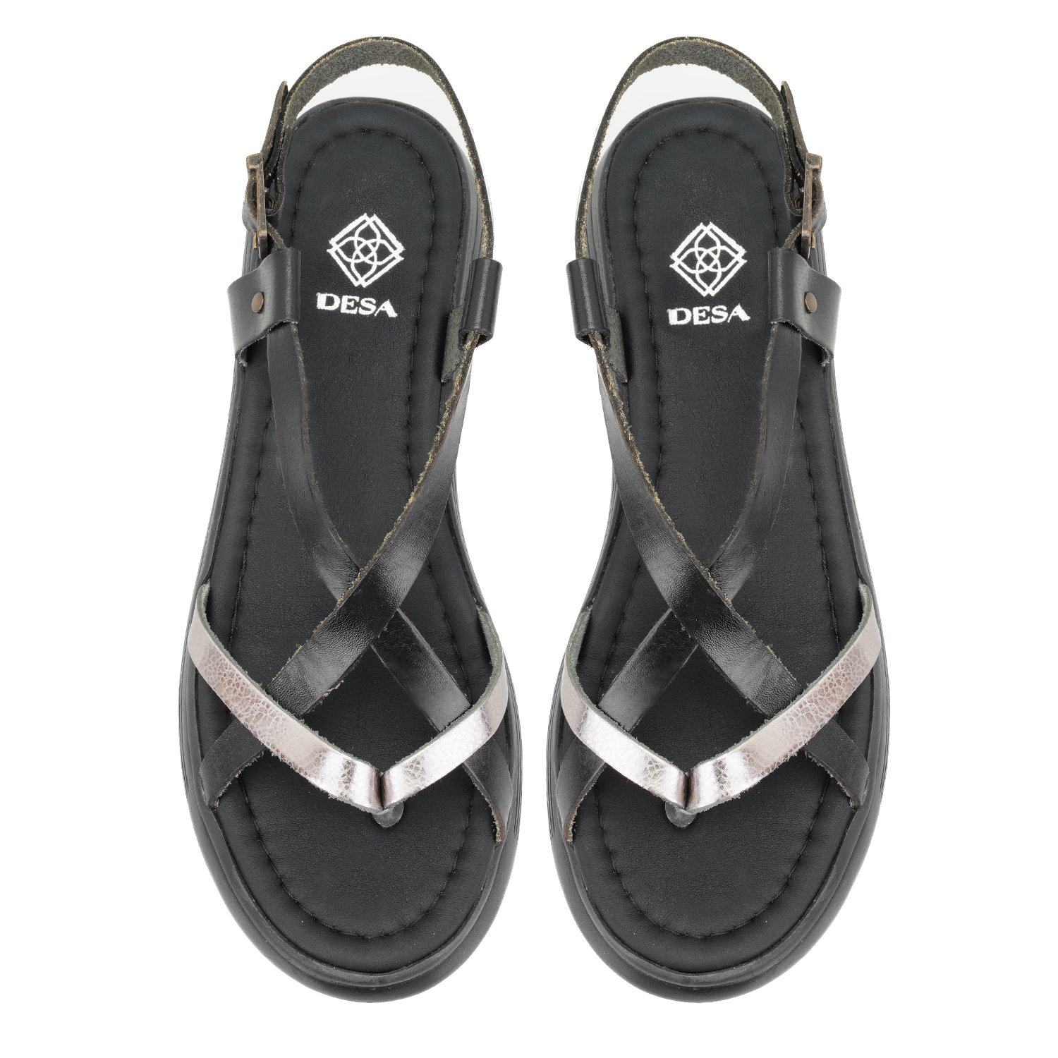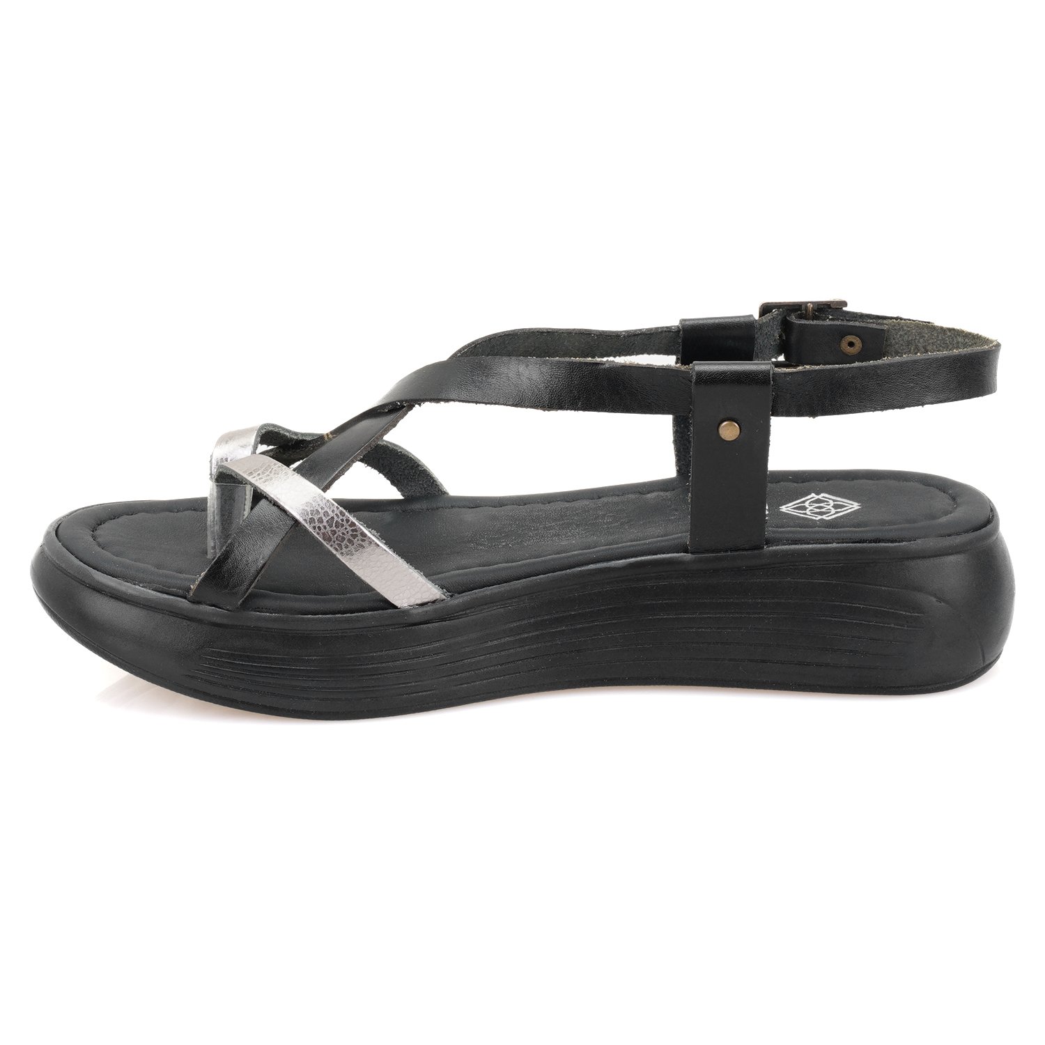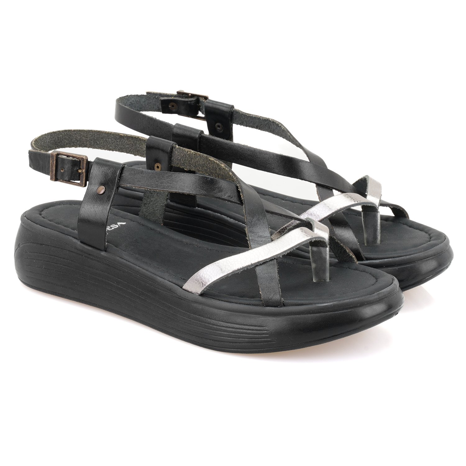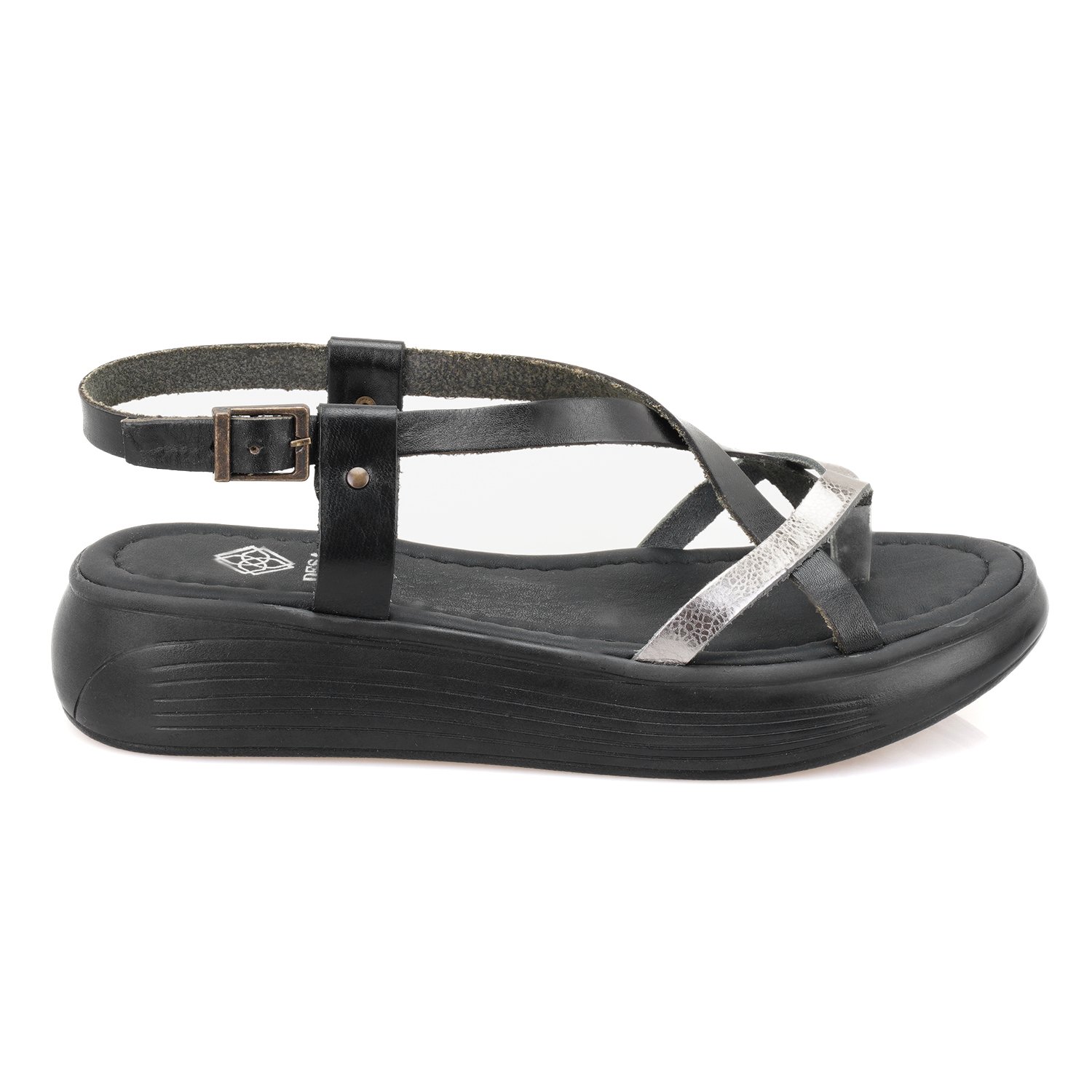 Vaketa deri&metalik deri,ayarlanabilir metal aksesuarlı,esnek ve hafif poliüretan tabanlı kadın sandalet.