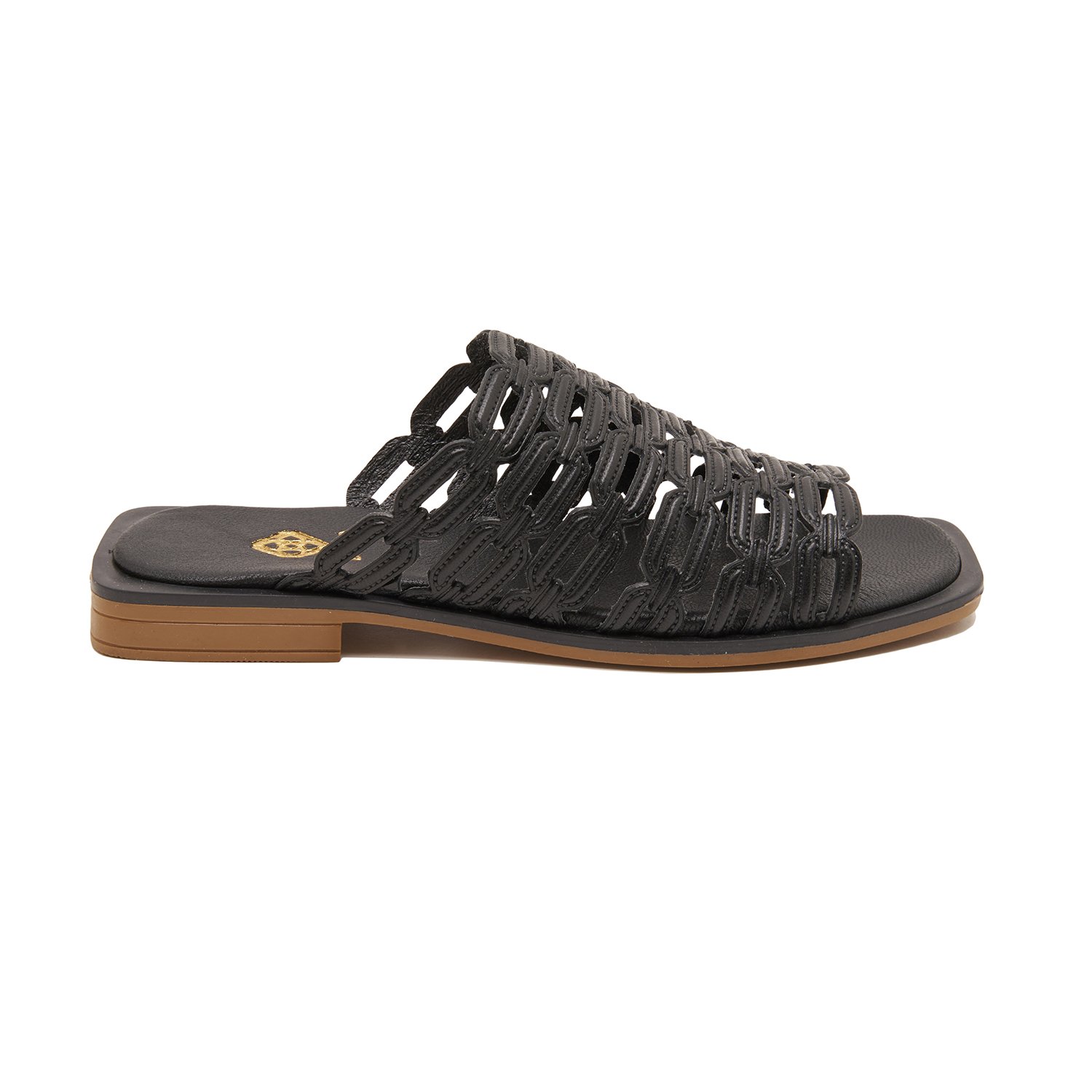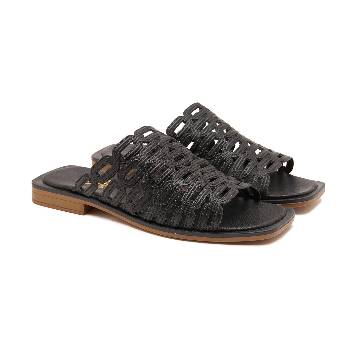 Deri iç tabanlı, dayanıklı termo tabanlı kadın terlik.
