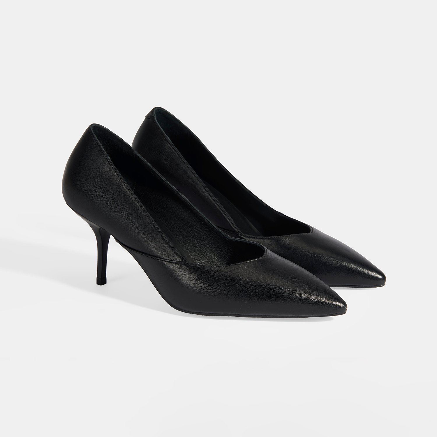 Kadın Siyah Deri Topuklu Klasik Ayakkabı