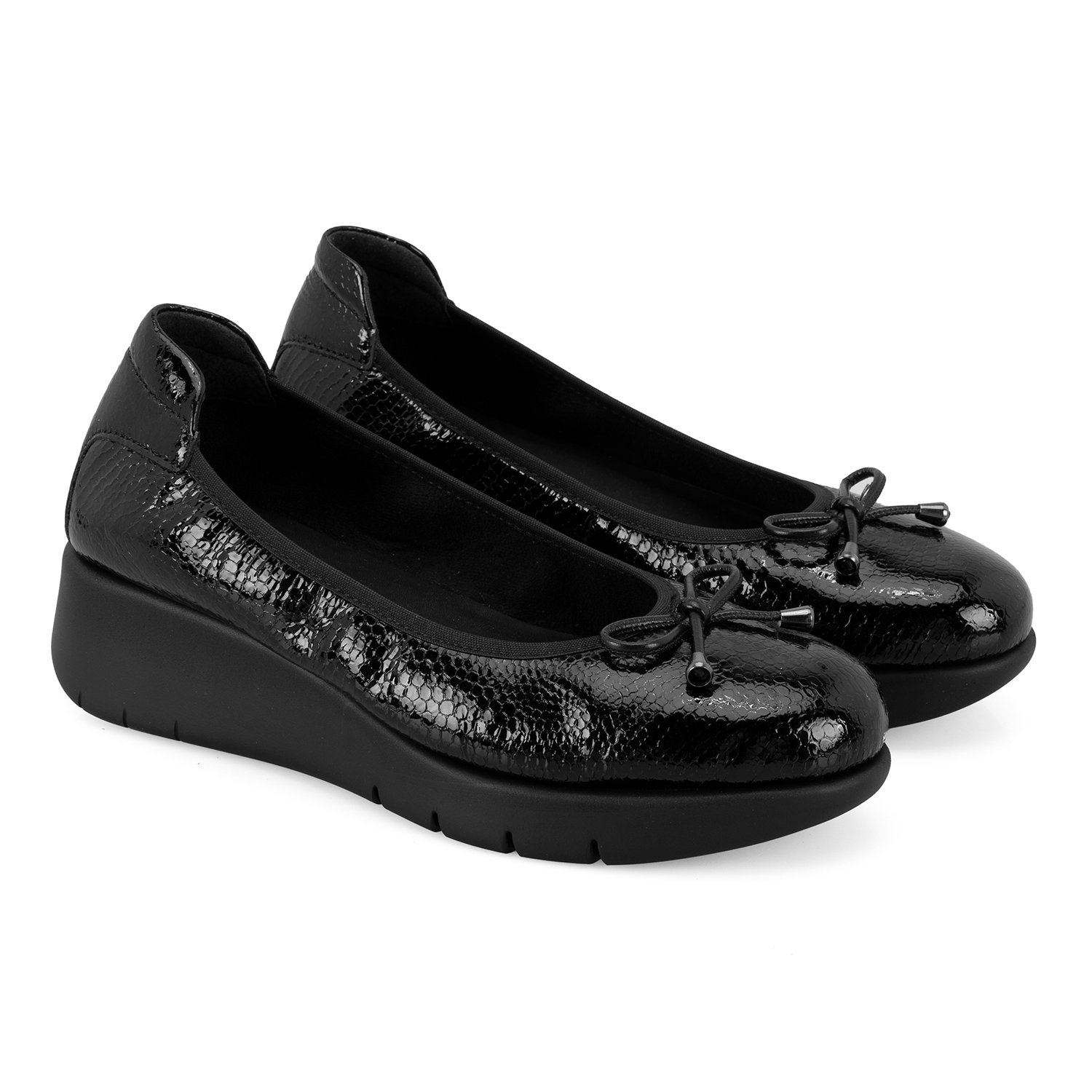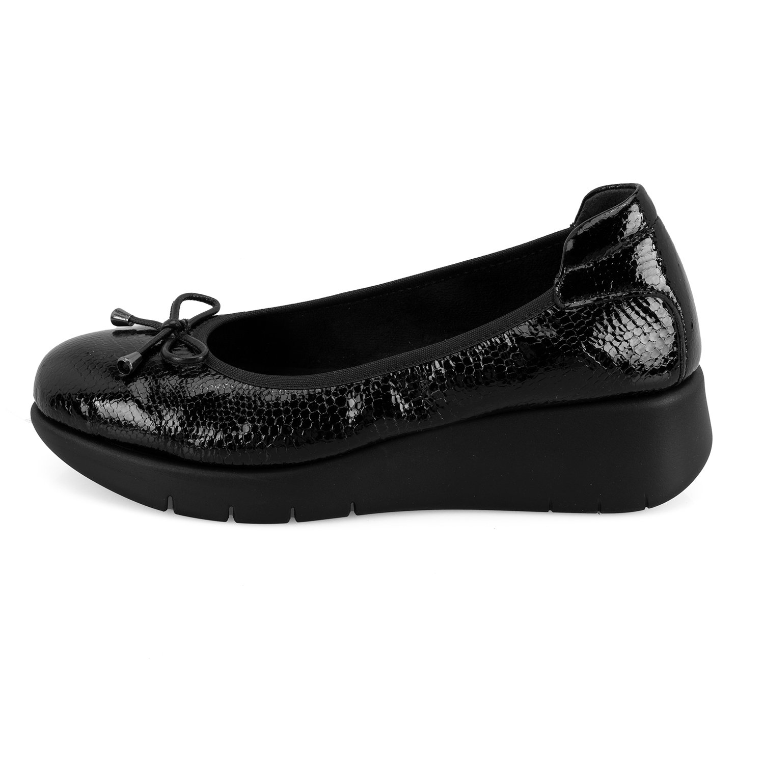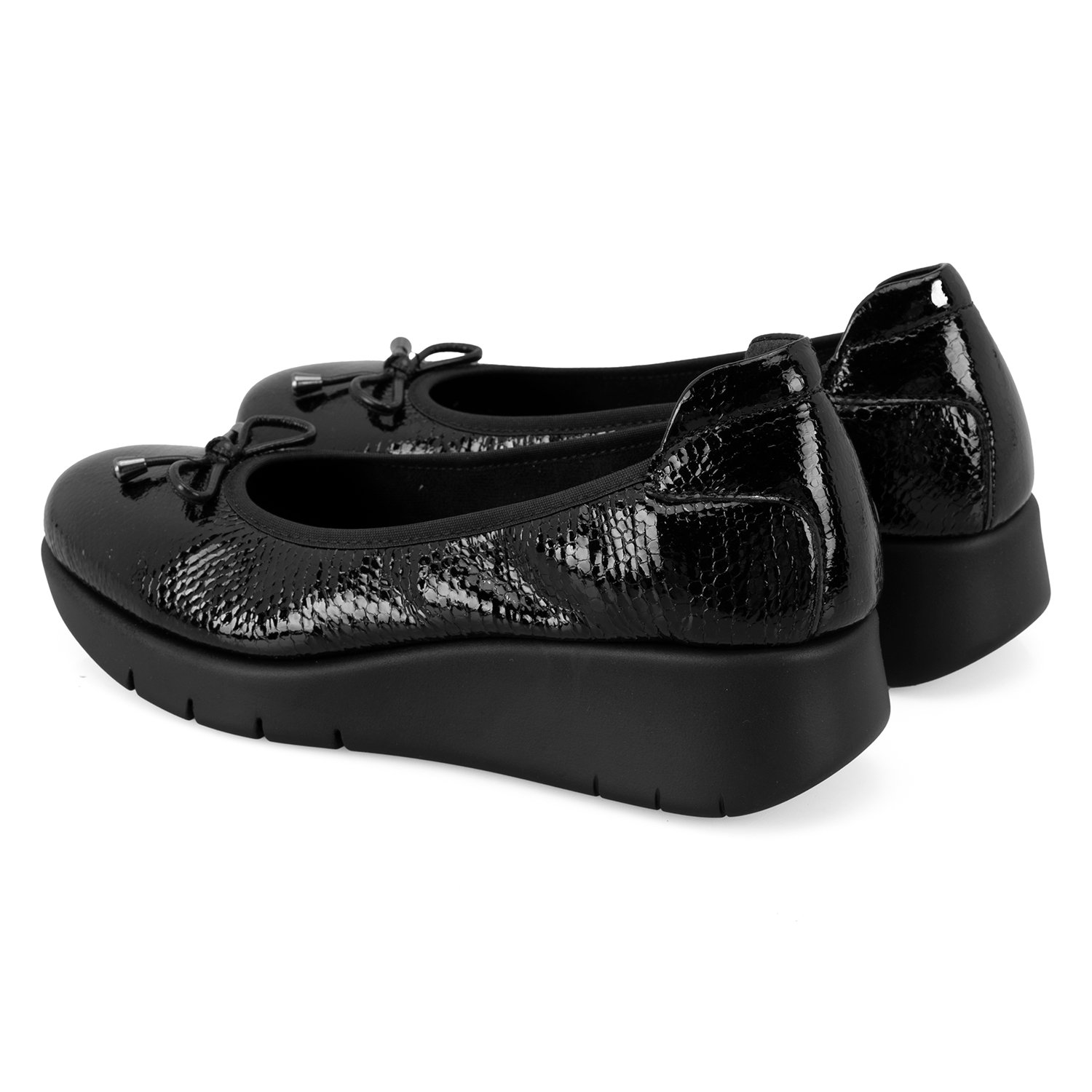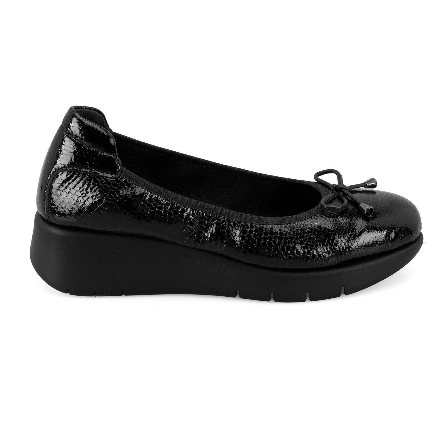 %100 baskılı deri, deri iç tabanlı, tekstil astarlı, kauçuk tabablı, fiyonk detaylı, kadın DesaComfort günlük ayakkabı.