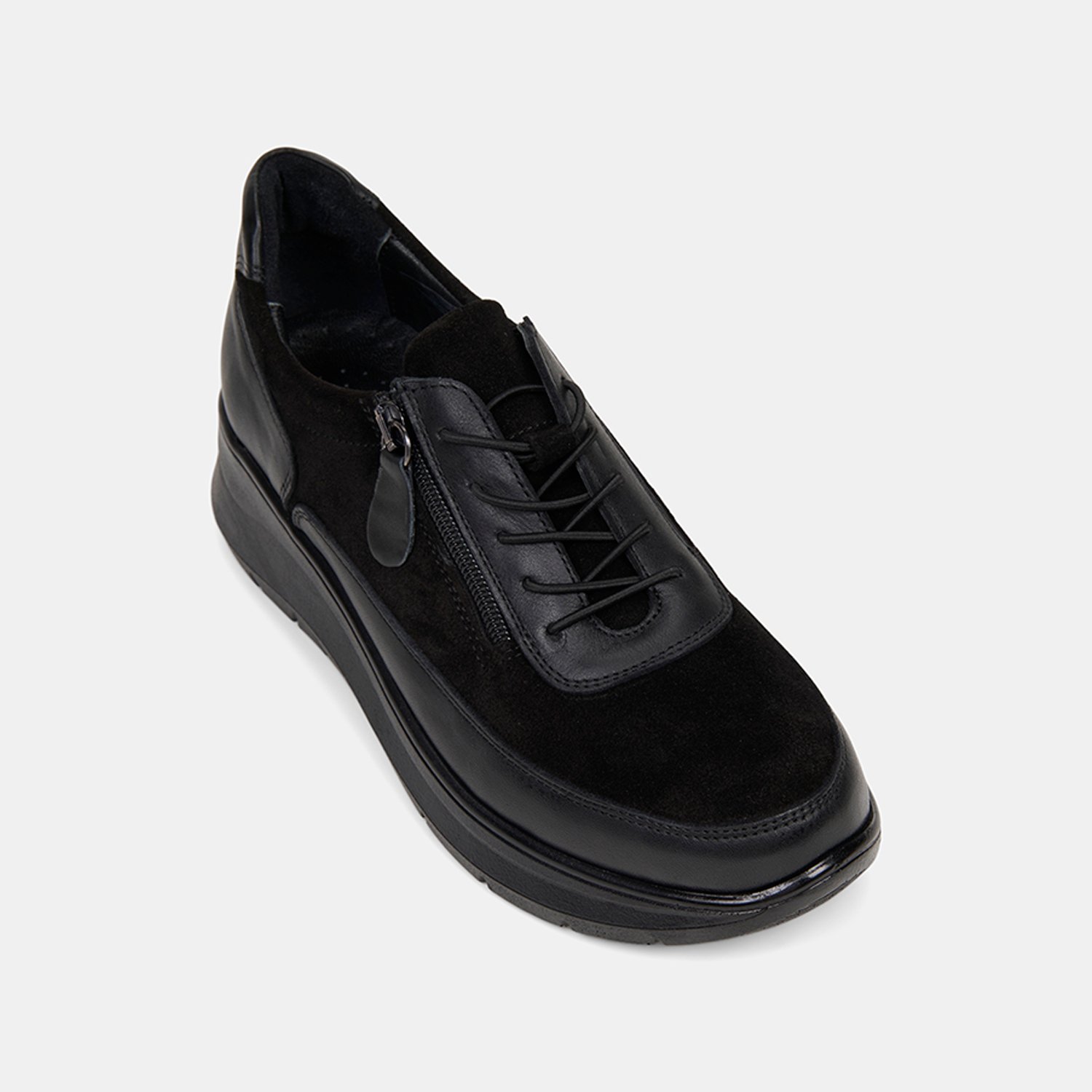 Kadın Siyah DesaComfort Fermuarlı Deri Spor Ayakkabı