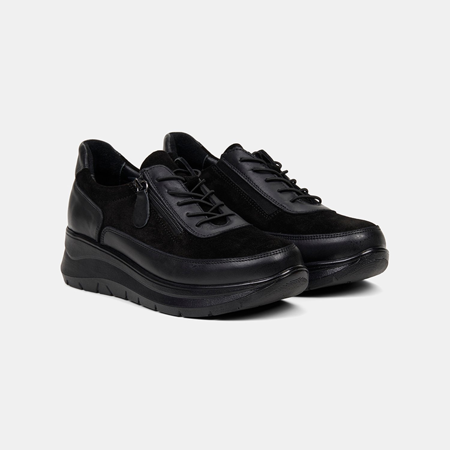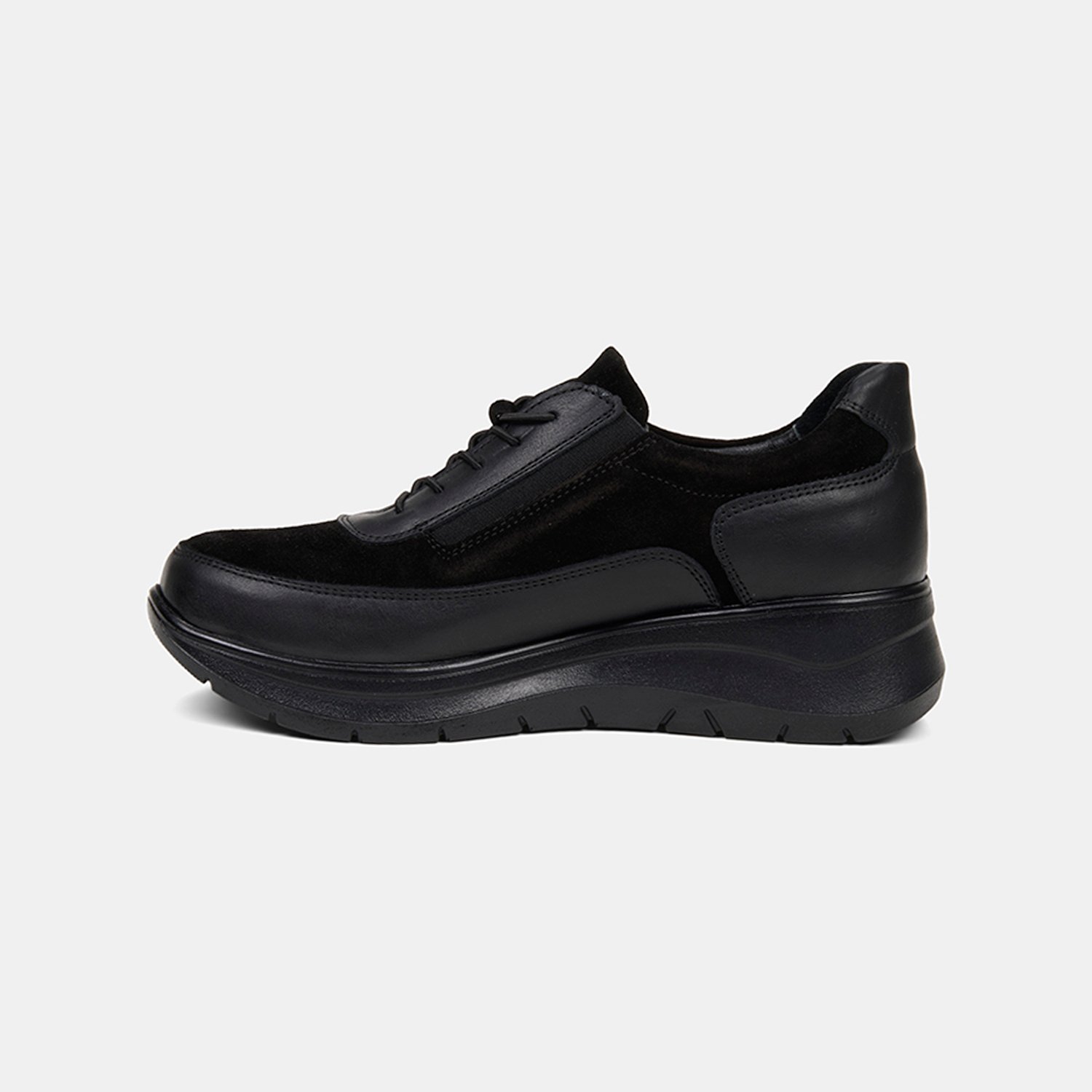 Günlük konforu modern detaylarla buluşturan kadın bağcıklı comfort ayakkabı, dengeli dolgu topuk formuyla öne çıkar