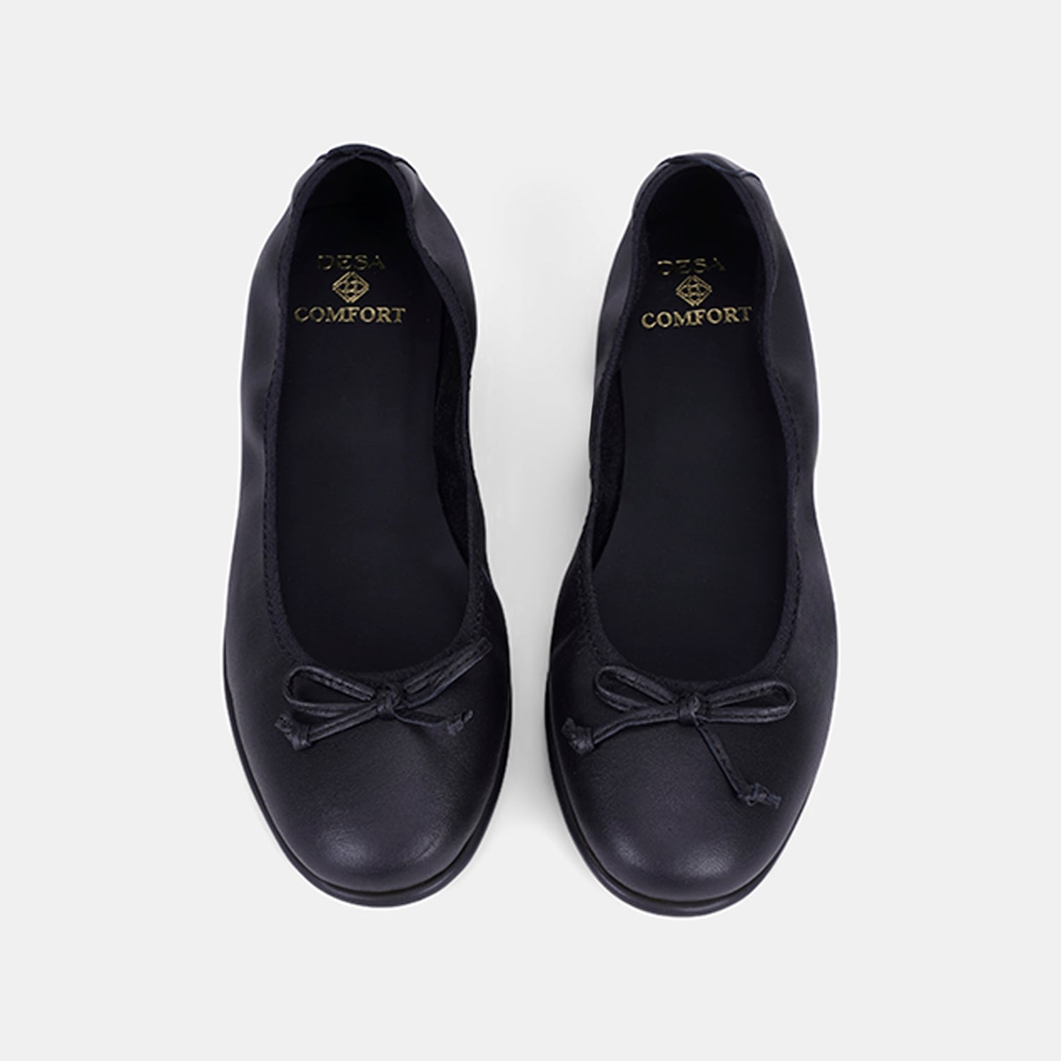 Kadın Siyah DesaComfort Fiyonklu Deri Babet