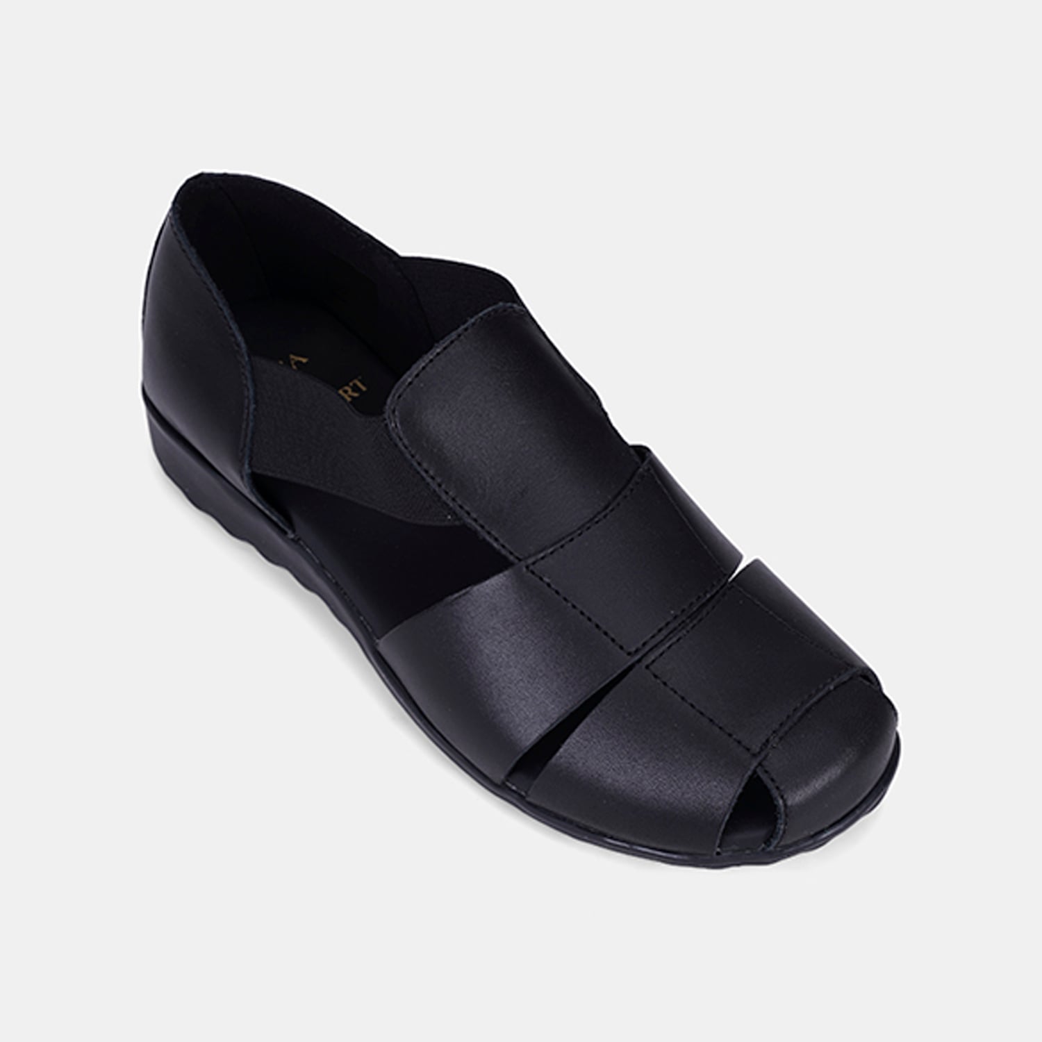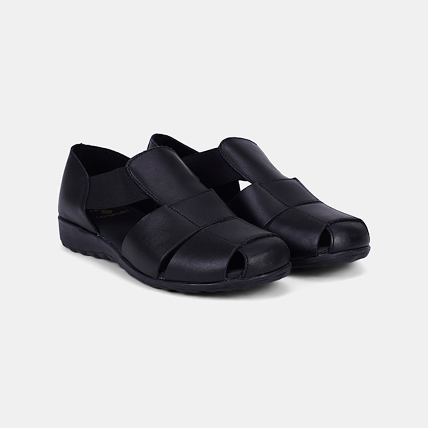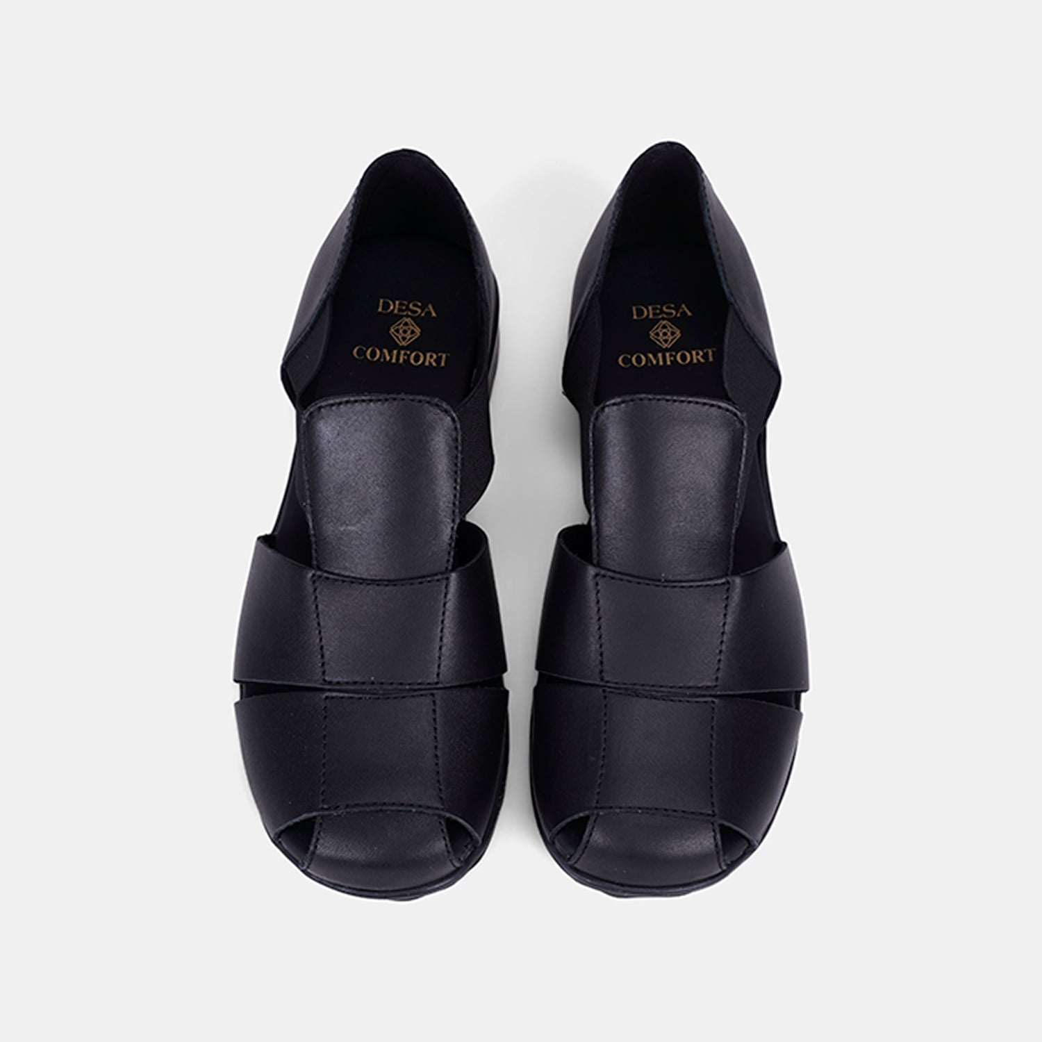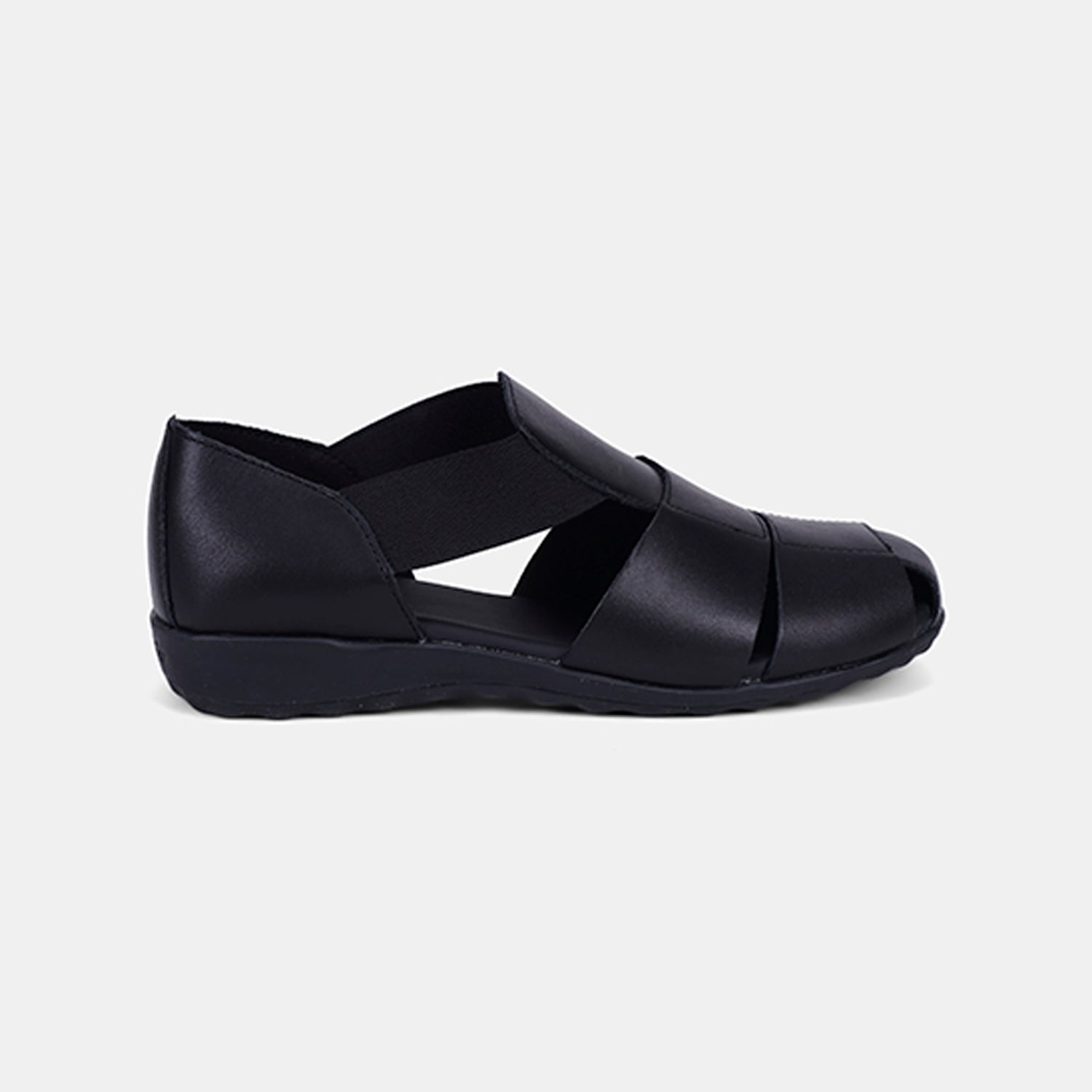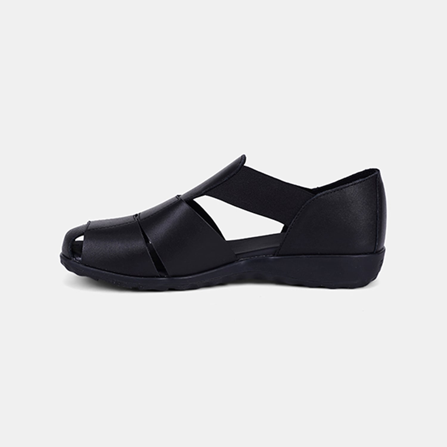 Kadın Siyah DesaComfort Lastikli Deri Sandalet