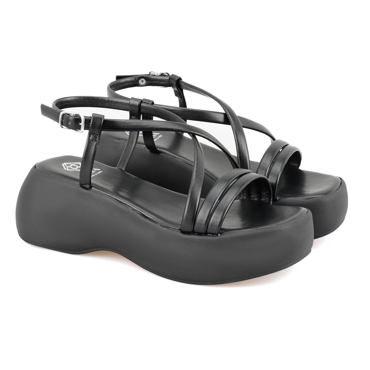 Kadın Siyah Dolgu Tabanlı Sandalet