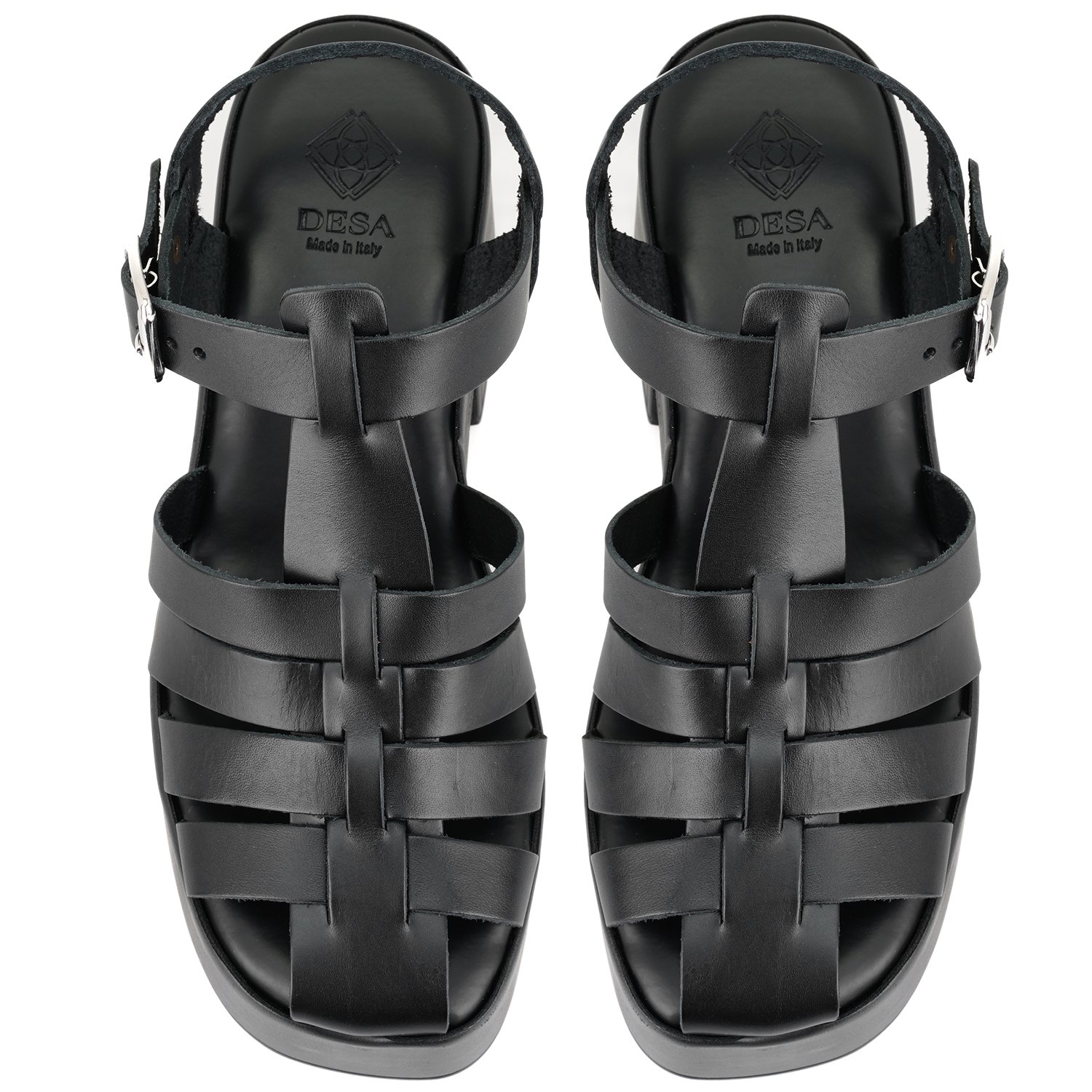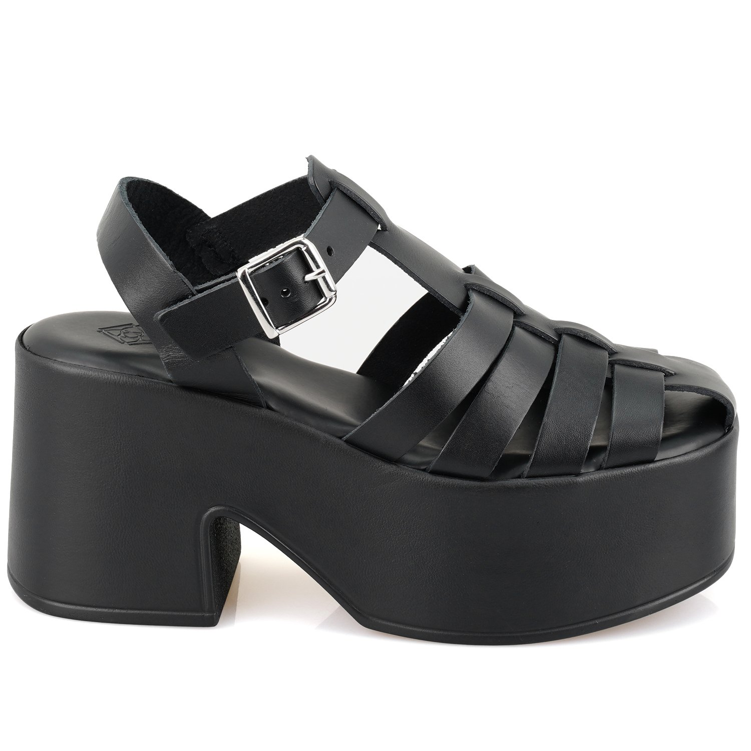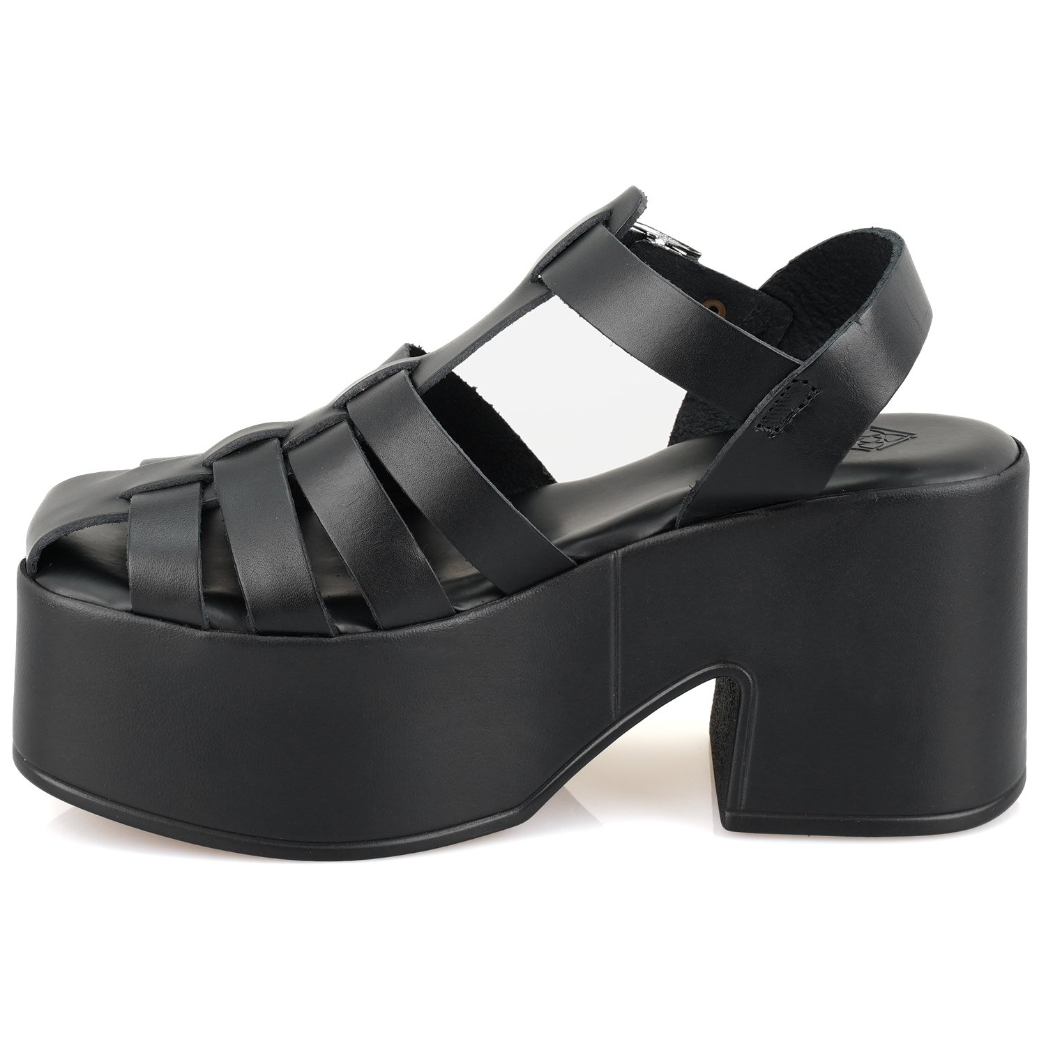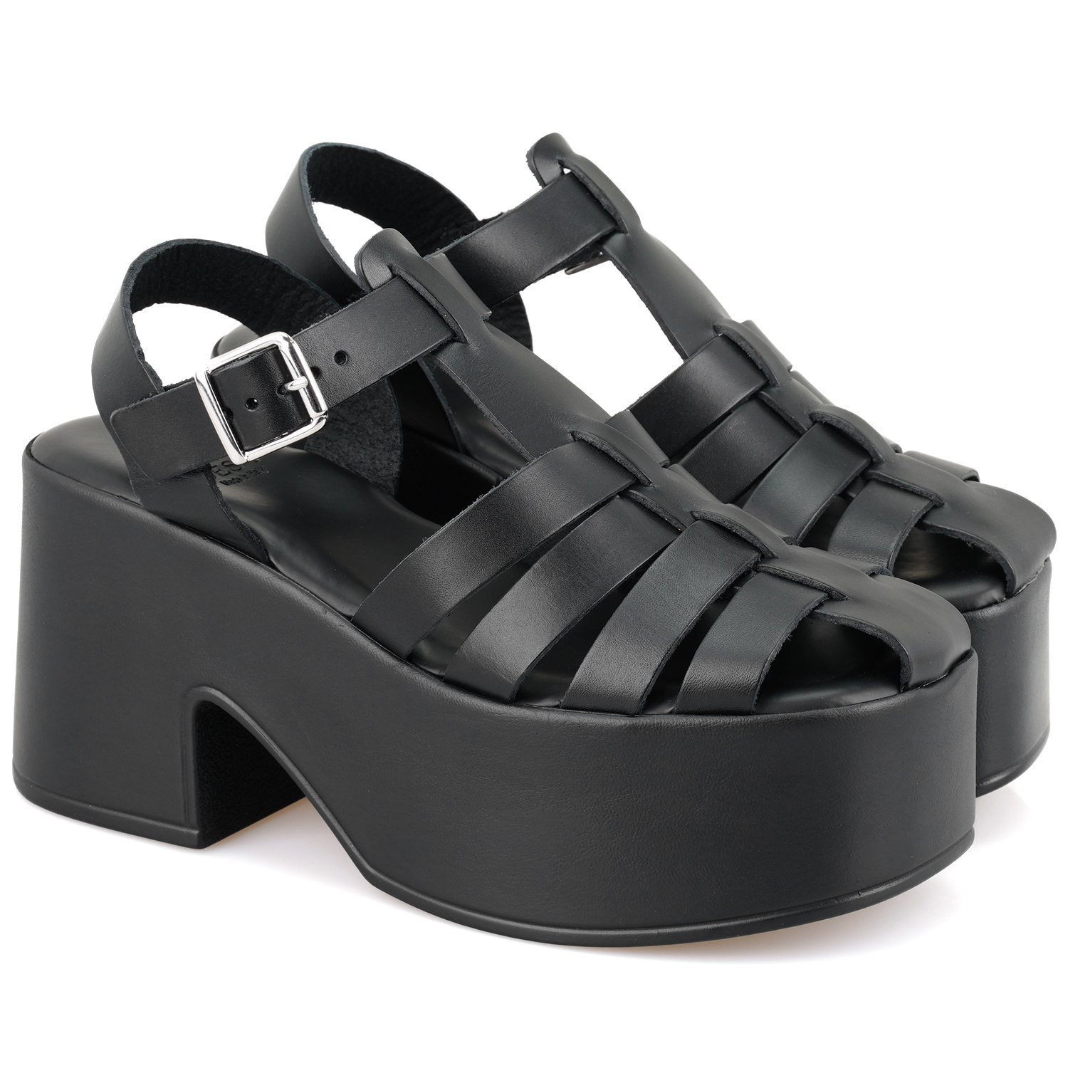 Kadın Siyah Dolgu Topuklu Deri Sandalet