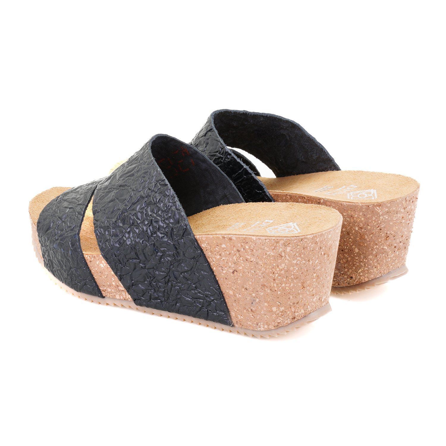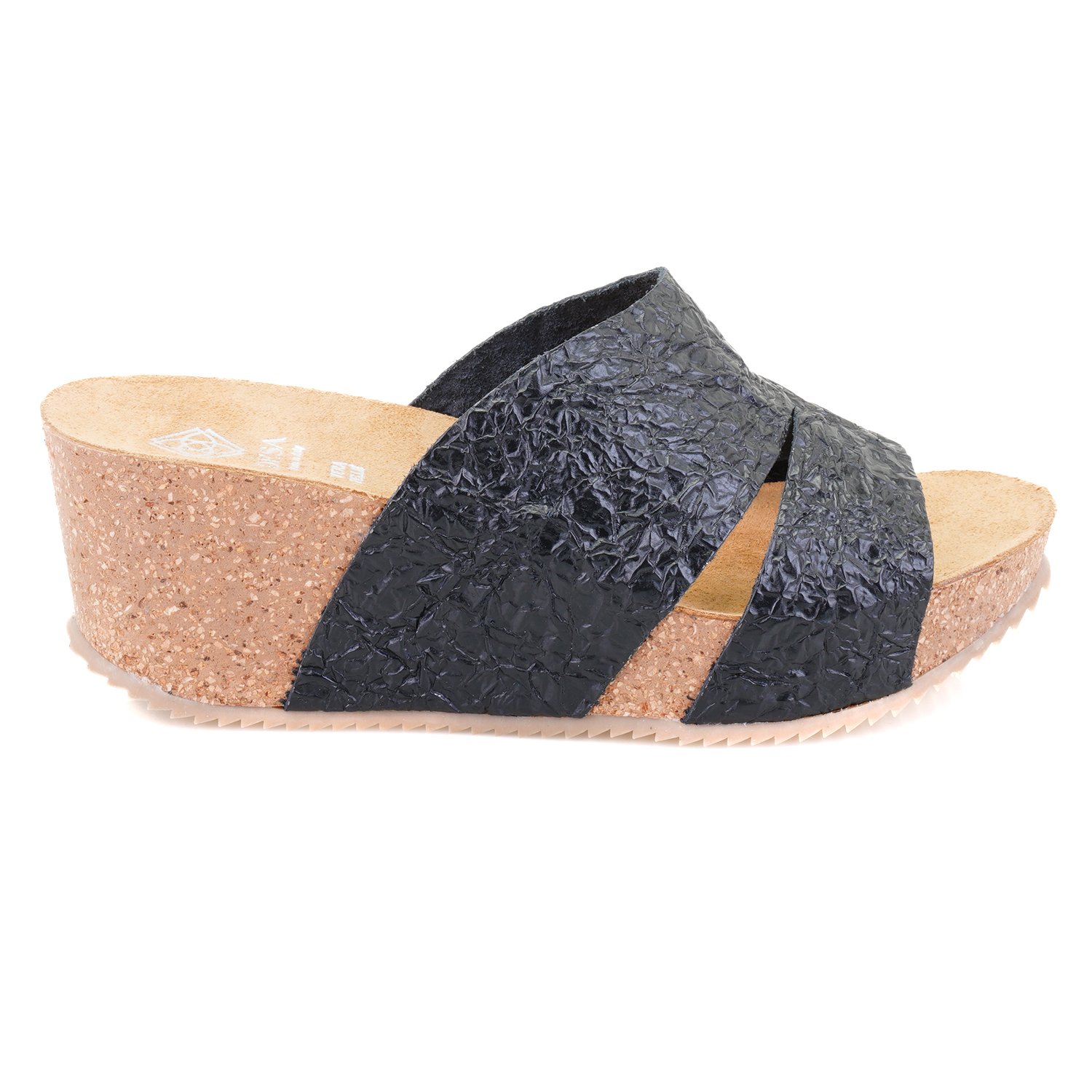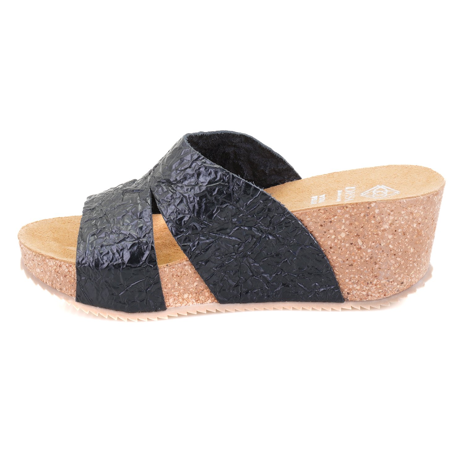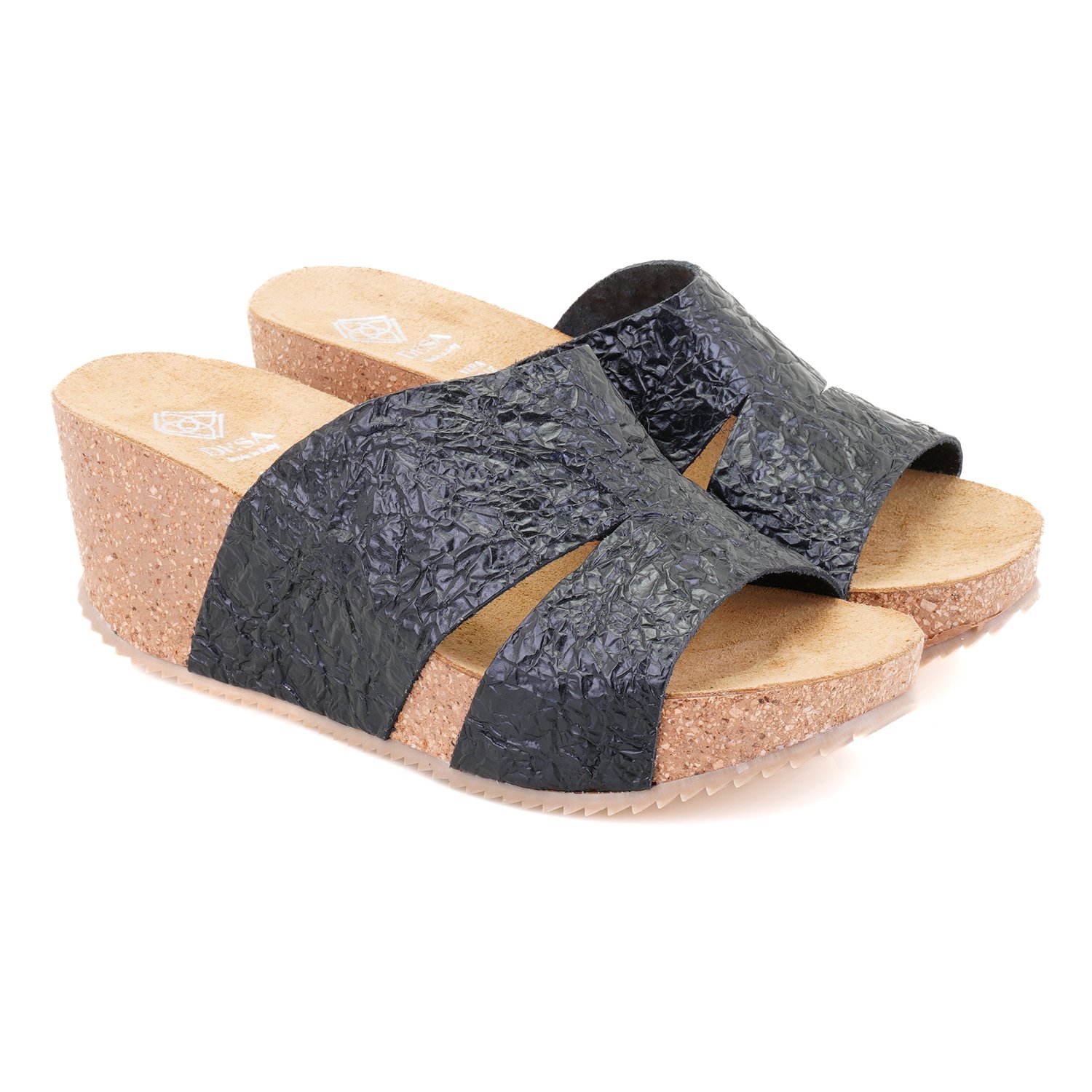 Kadın Siyah Dolgu Topuklu Deri Terlik