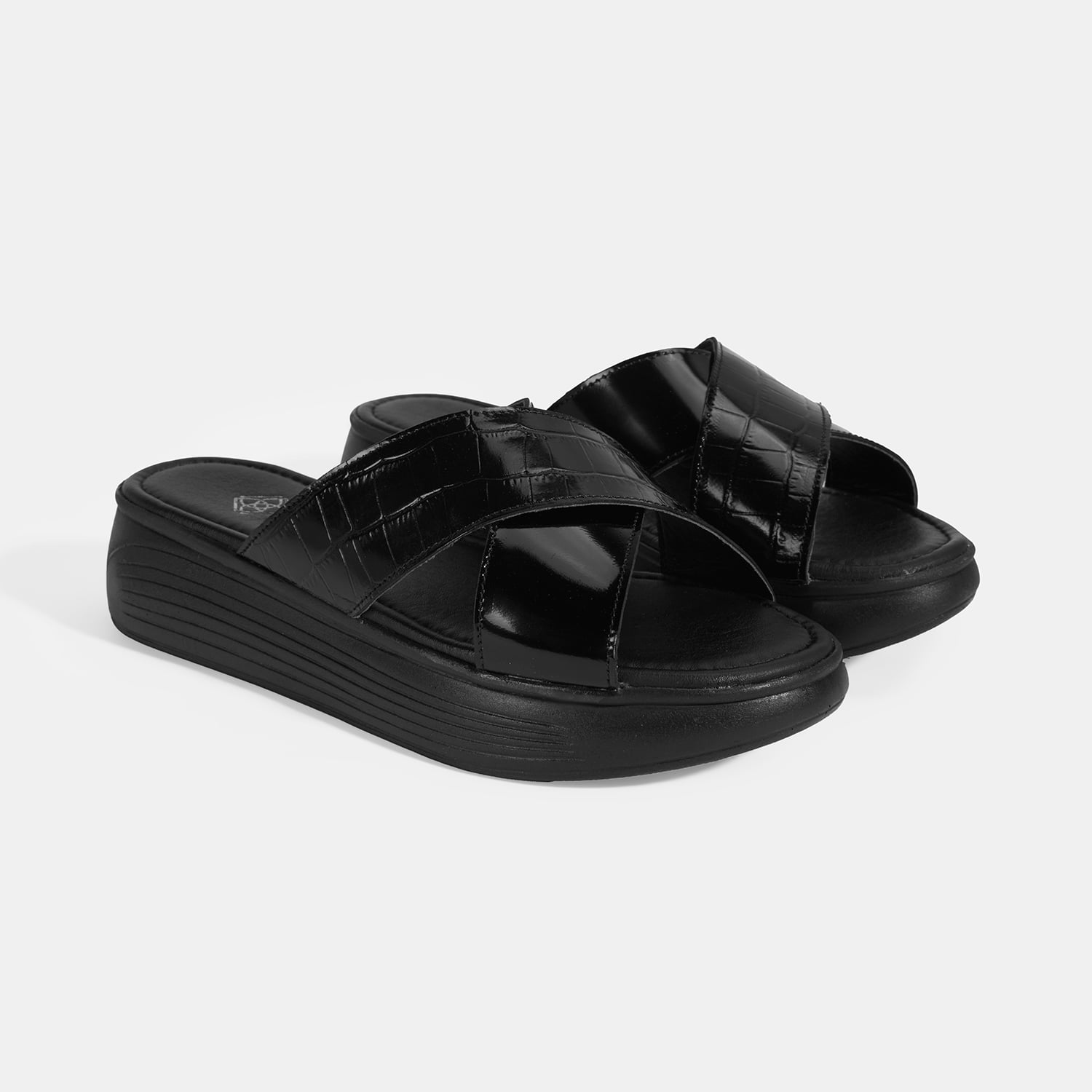 Kadın Siyah Dolgu Topuklu Deri Terlik