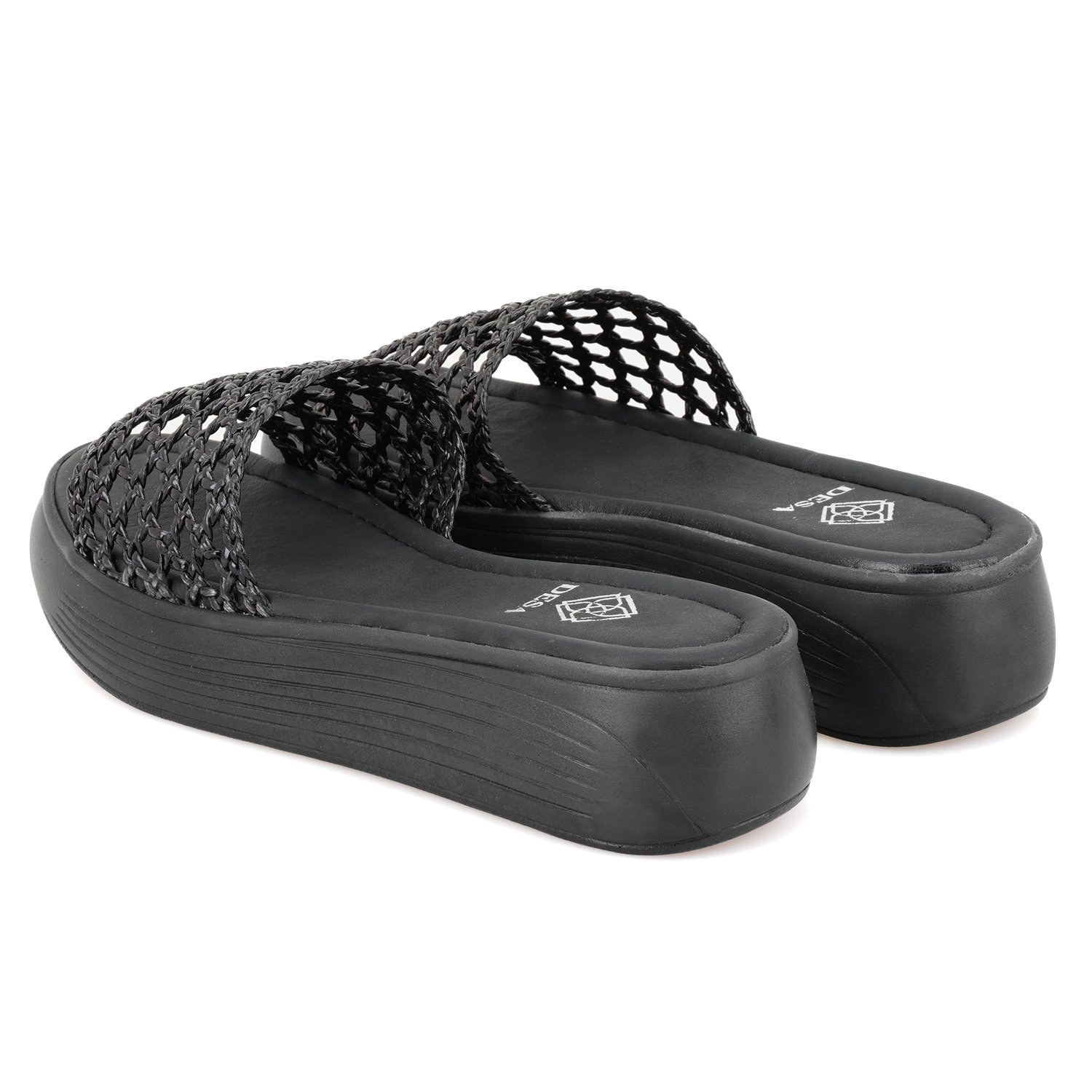 Kadın Siyah File Örgülü Terlik
