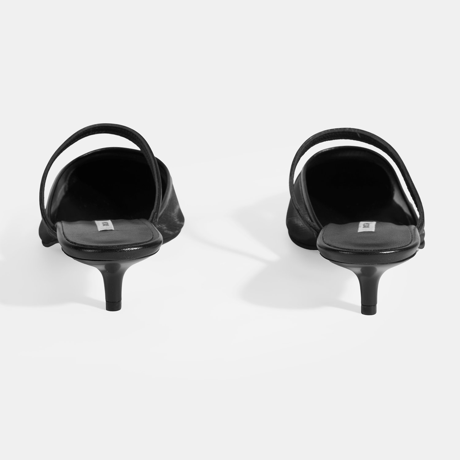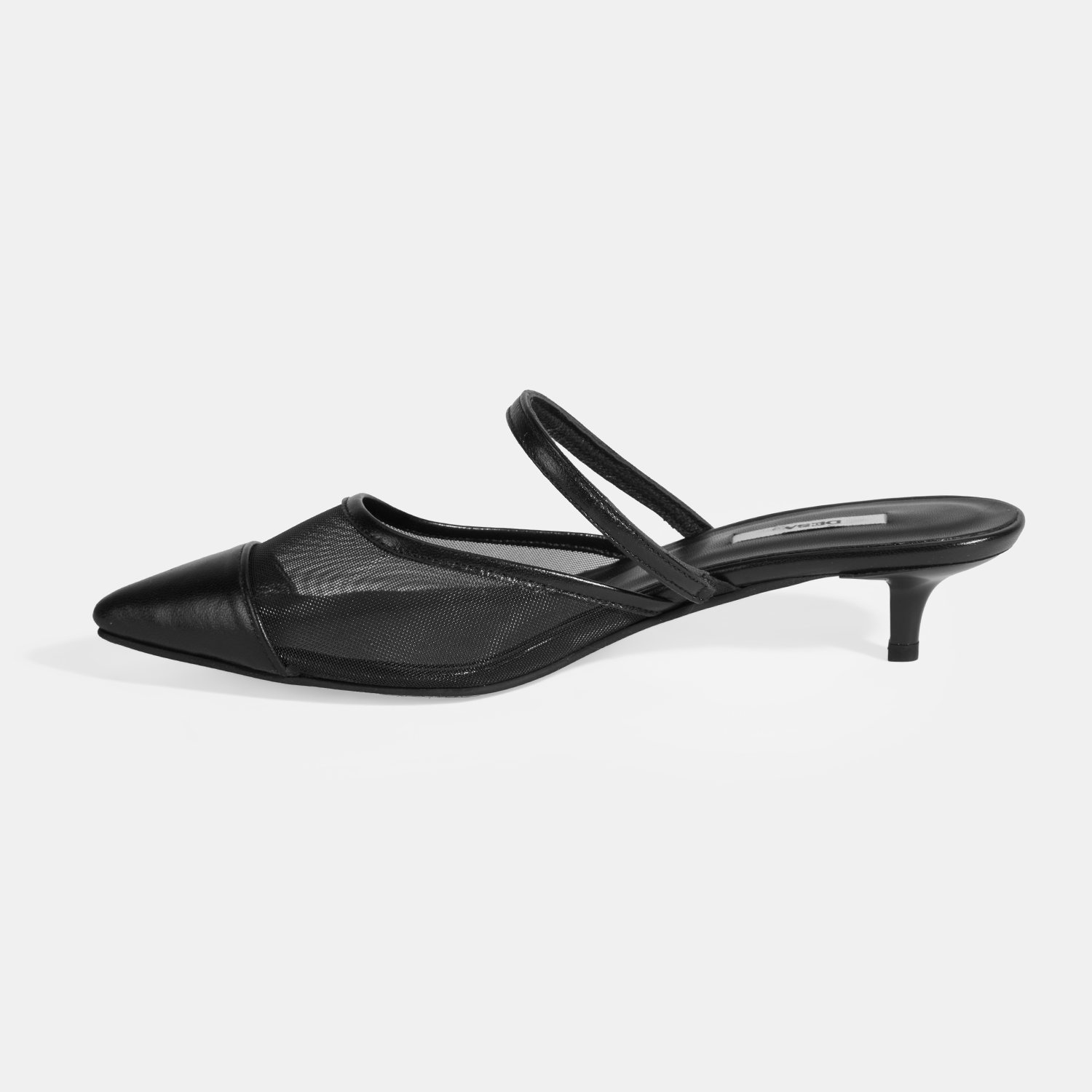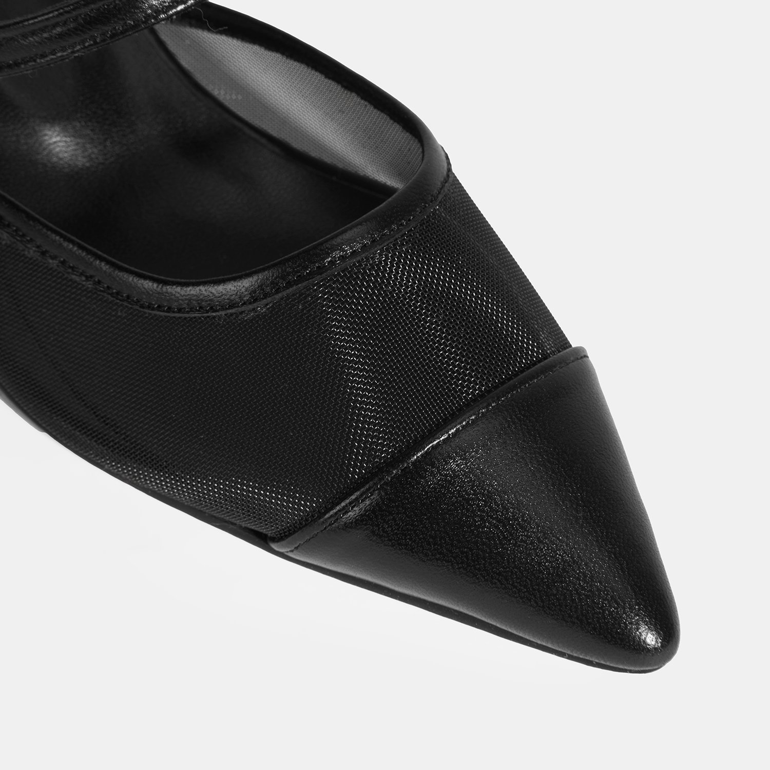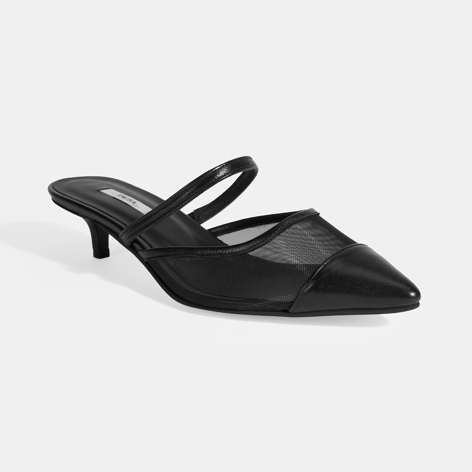 Kadın Siyah Fileli Deri Topuklu Terlik