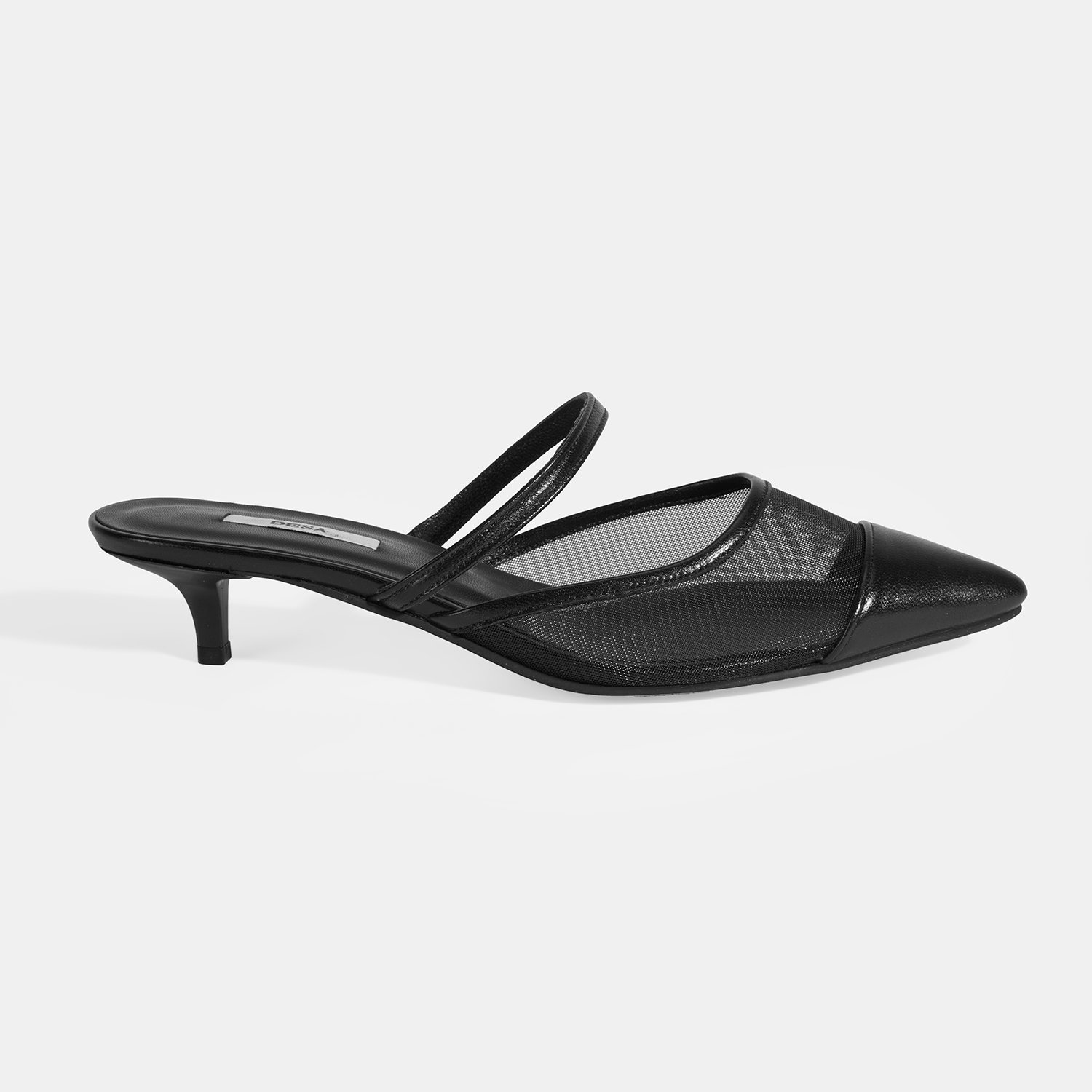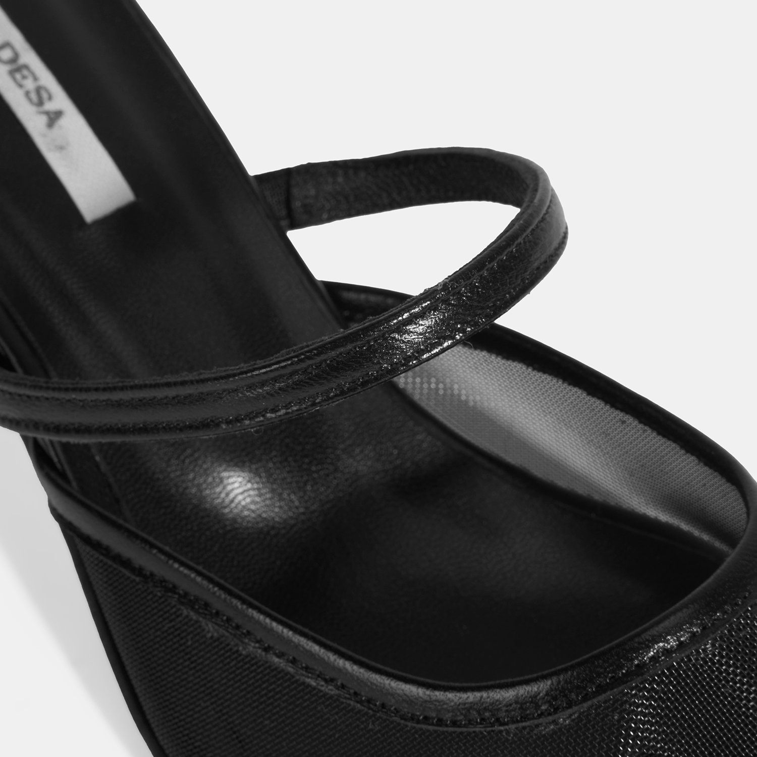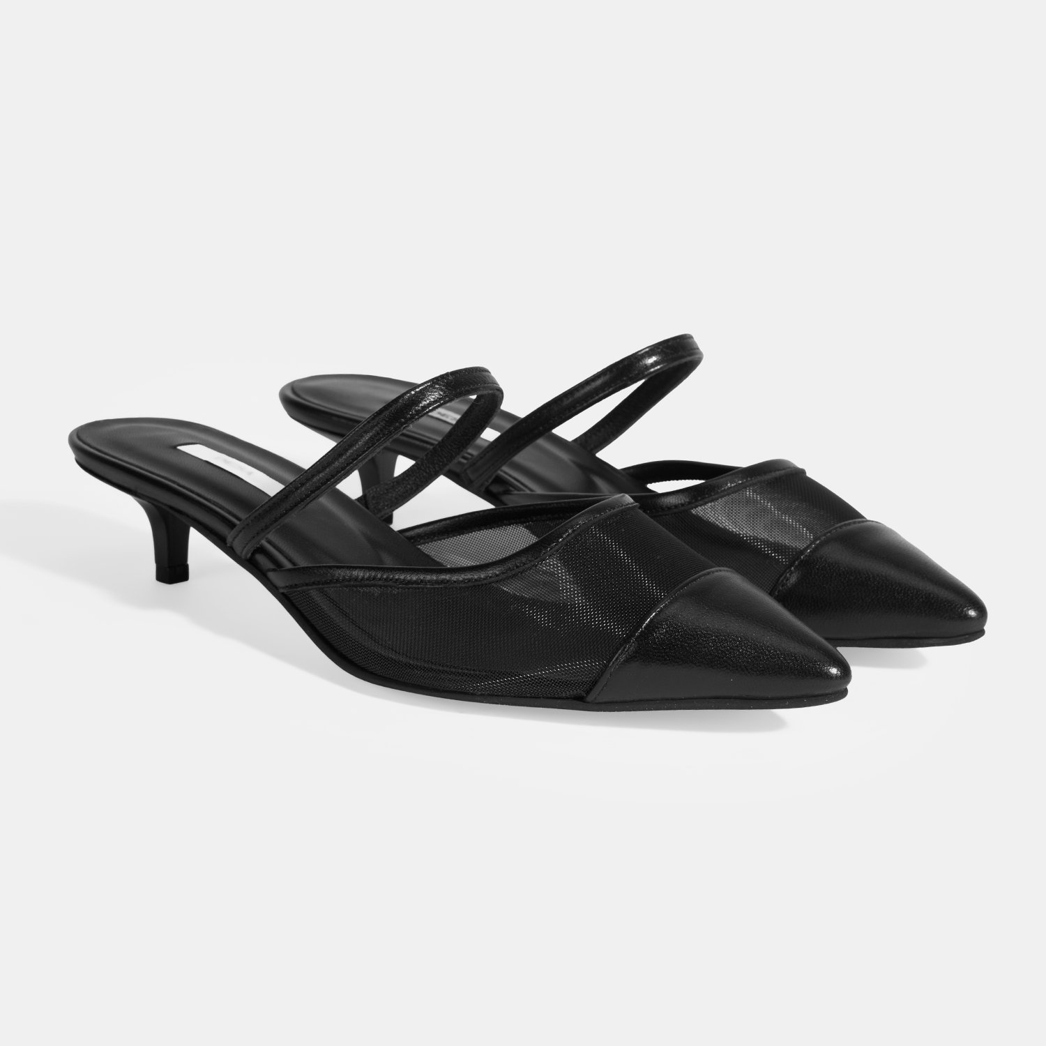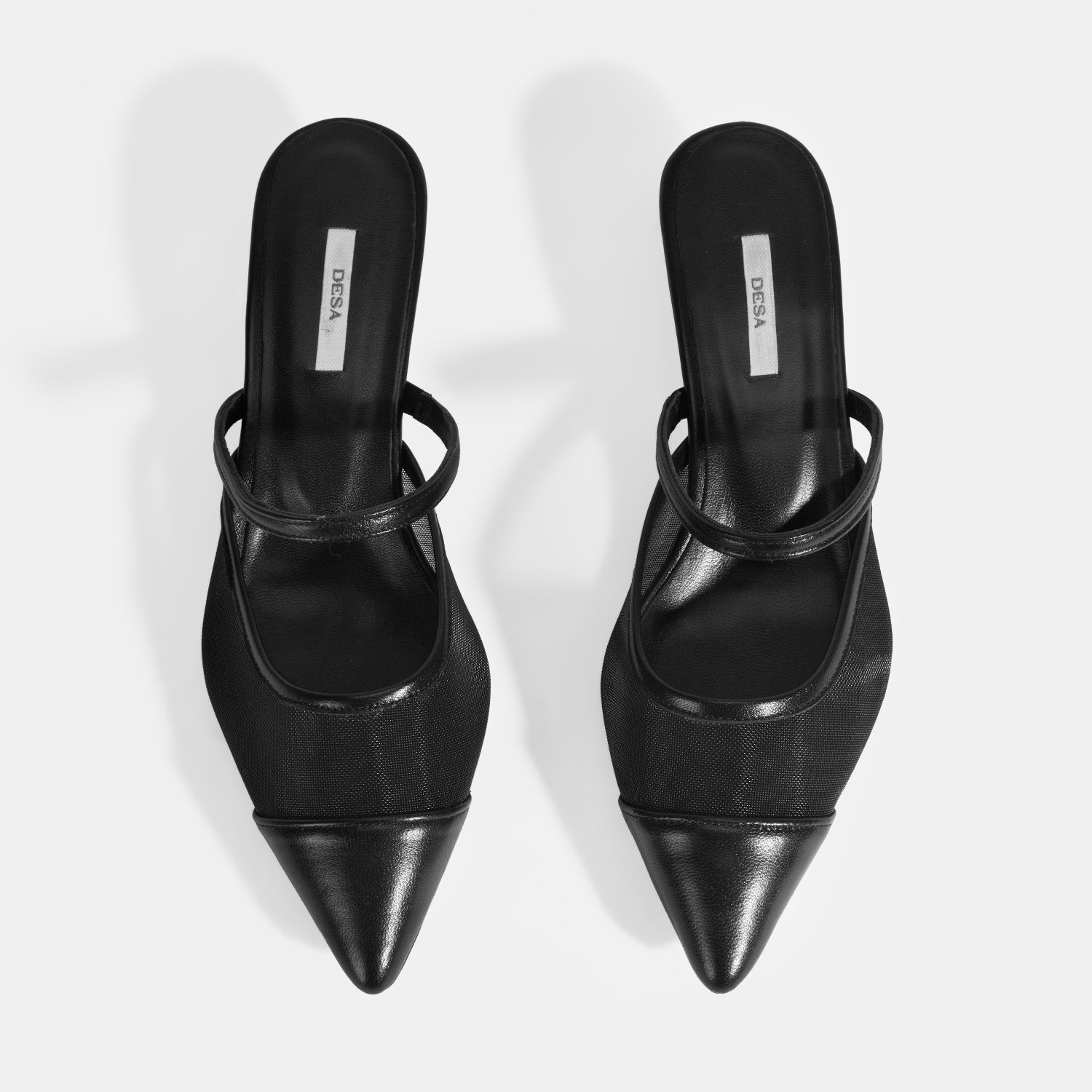 Kadın Siyah Fileli Deri Topuklu Terlik