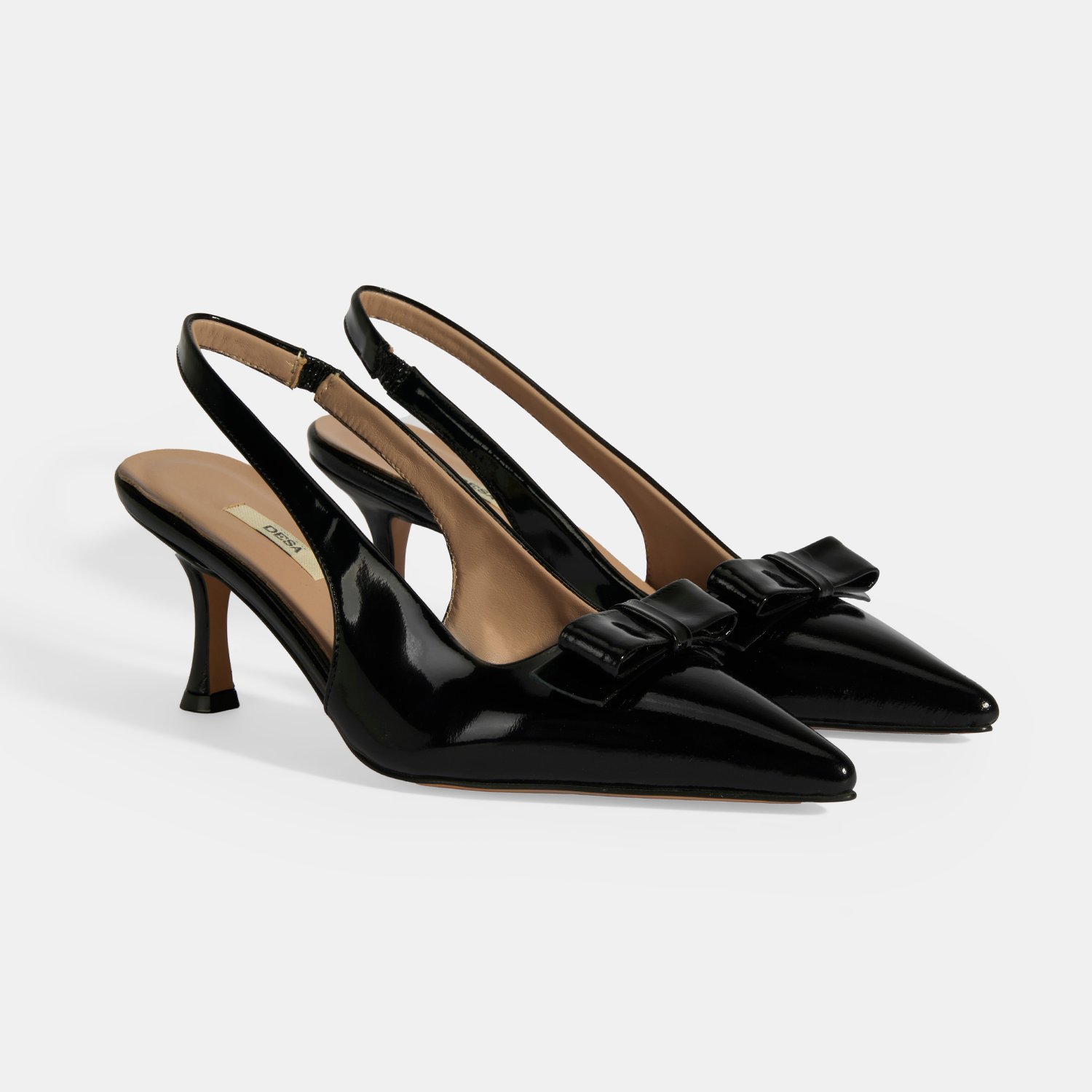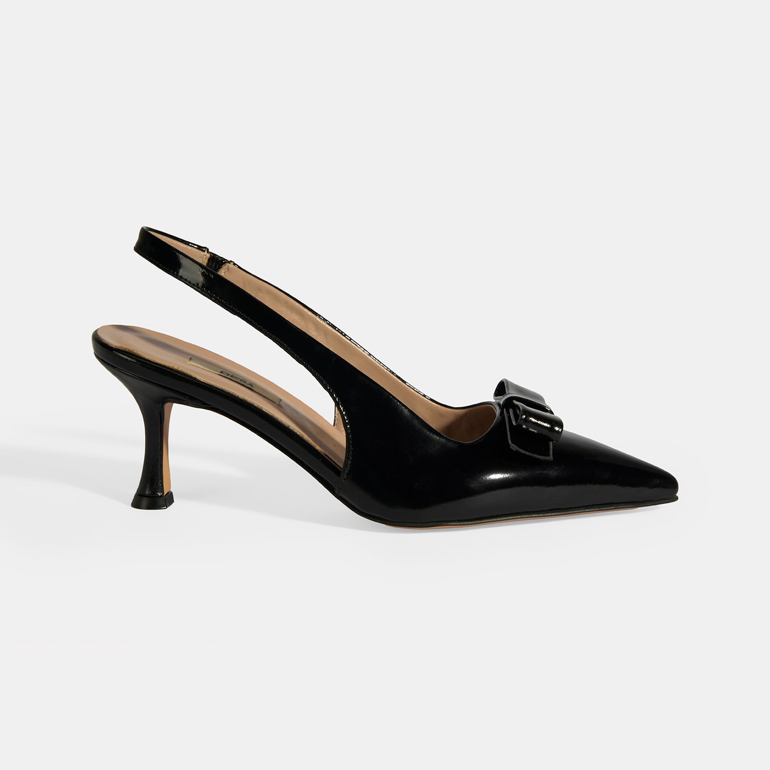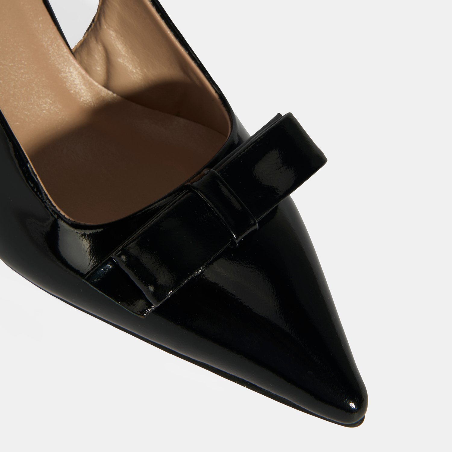 Kadın Siyah Fiyonk Detaylı Rugan Topuklu Klasik Ayakkabı