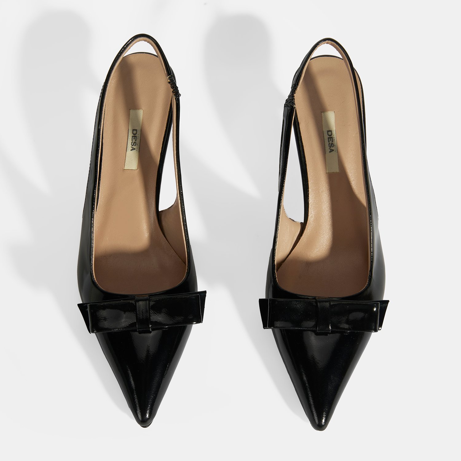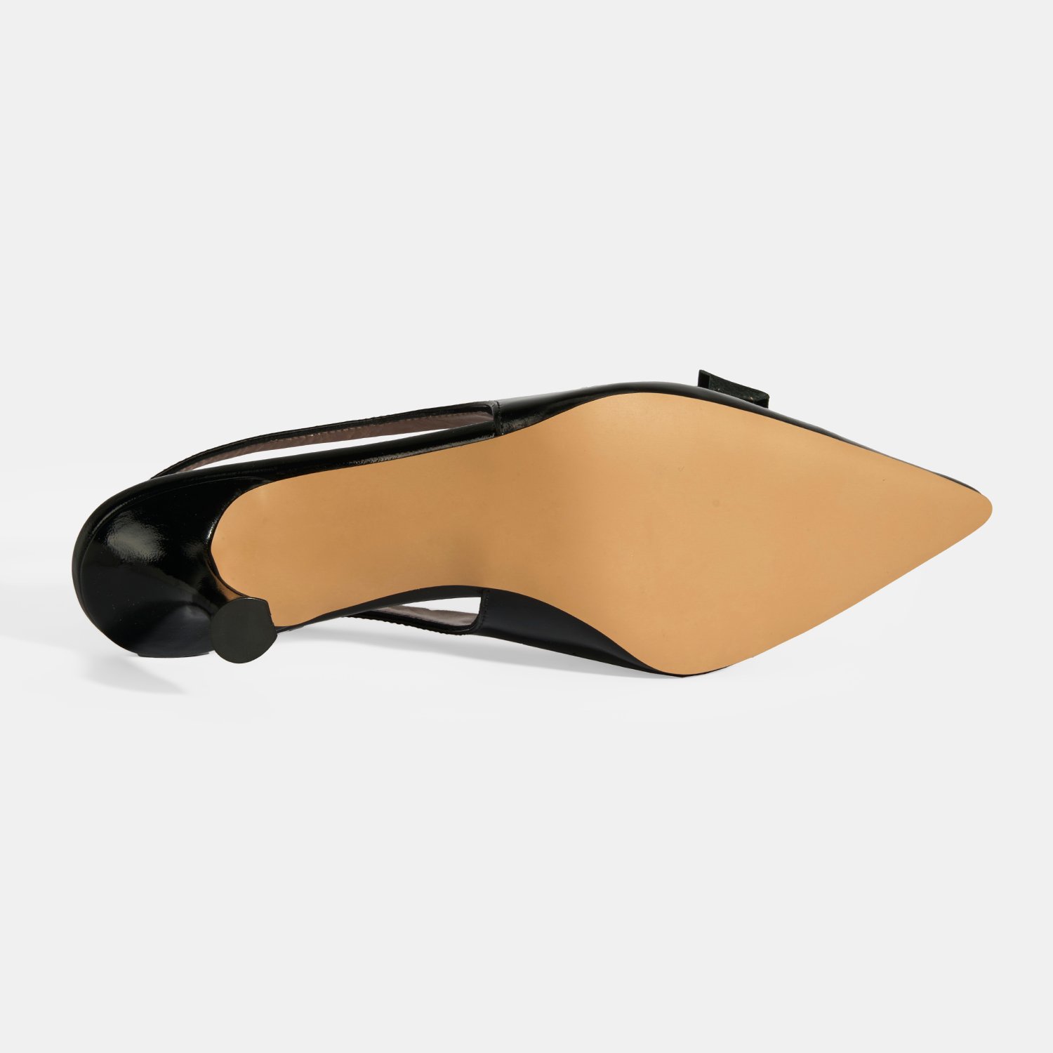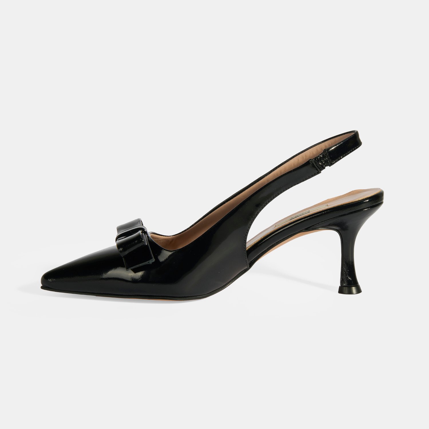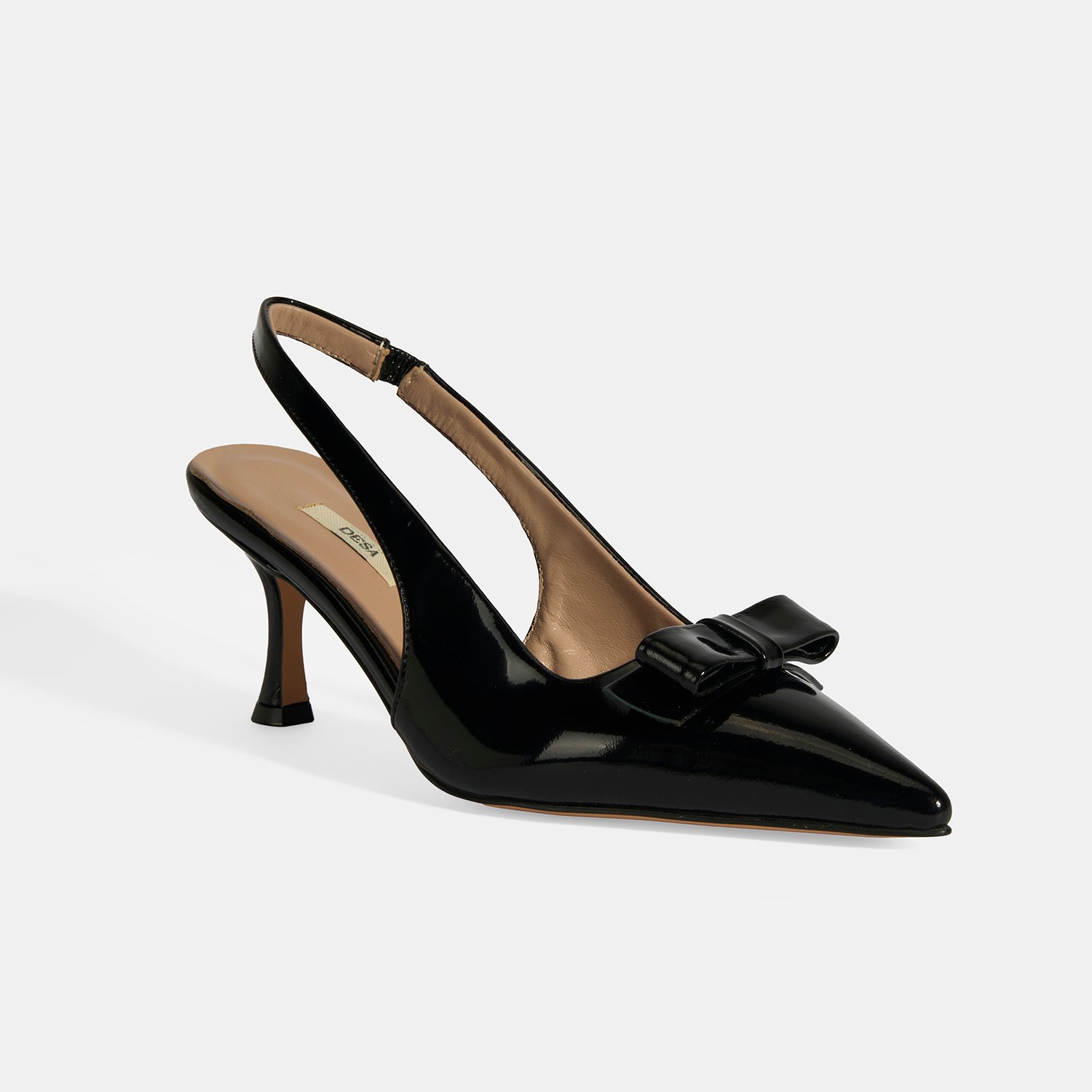 Kadın Siyah Fiyonk Detaylı Rugan Topuklu Klasik Ayakkabı