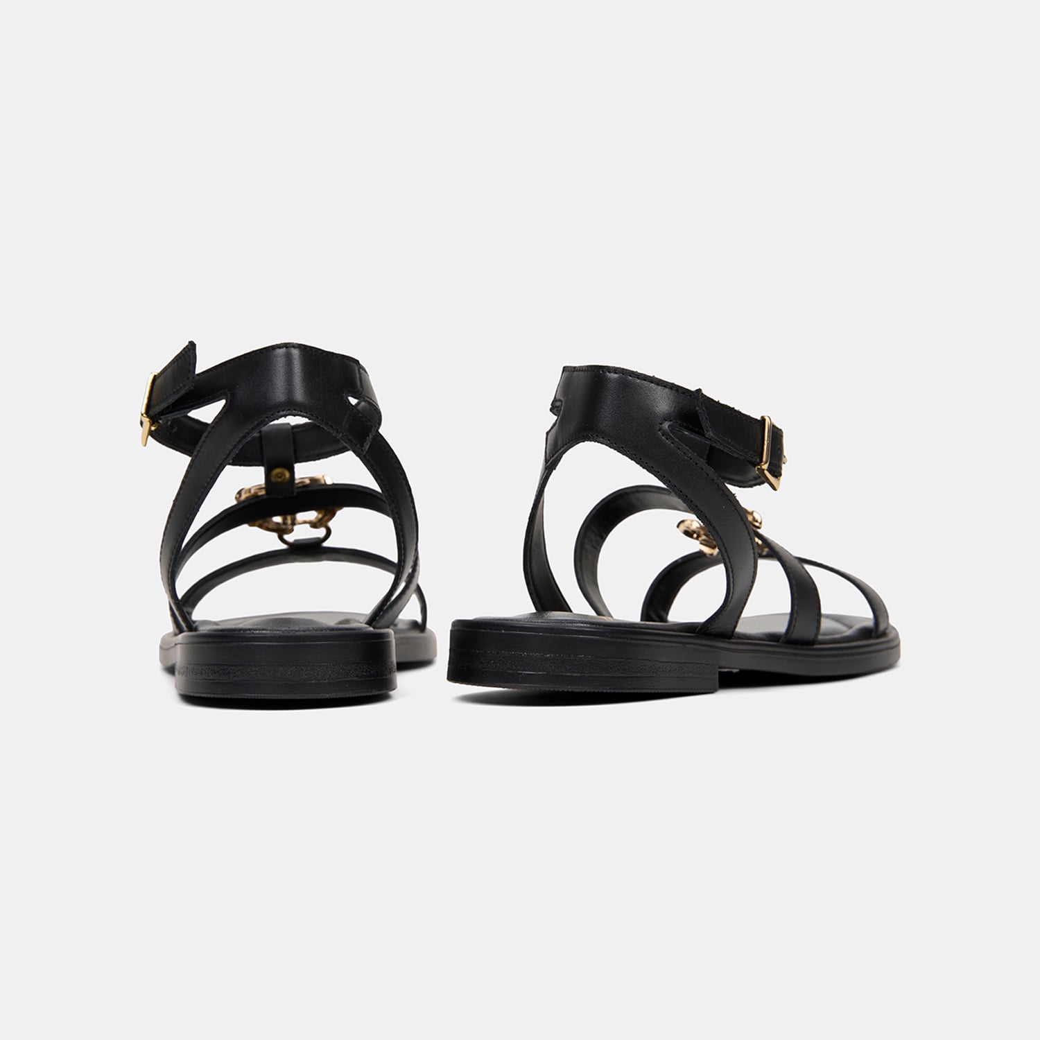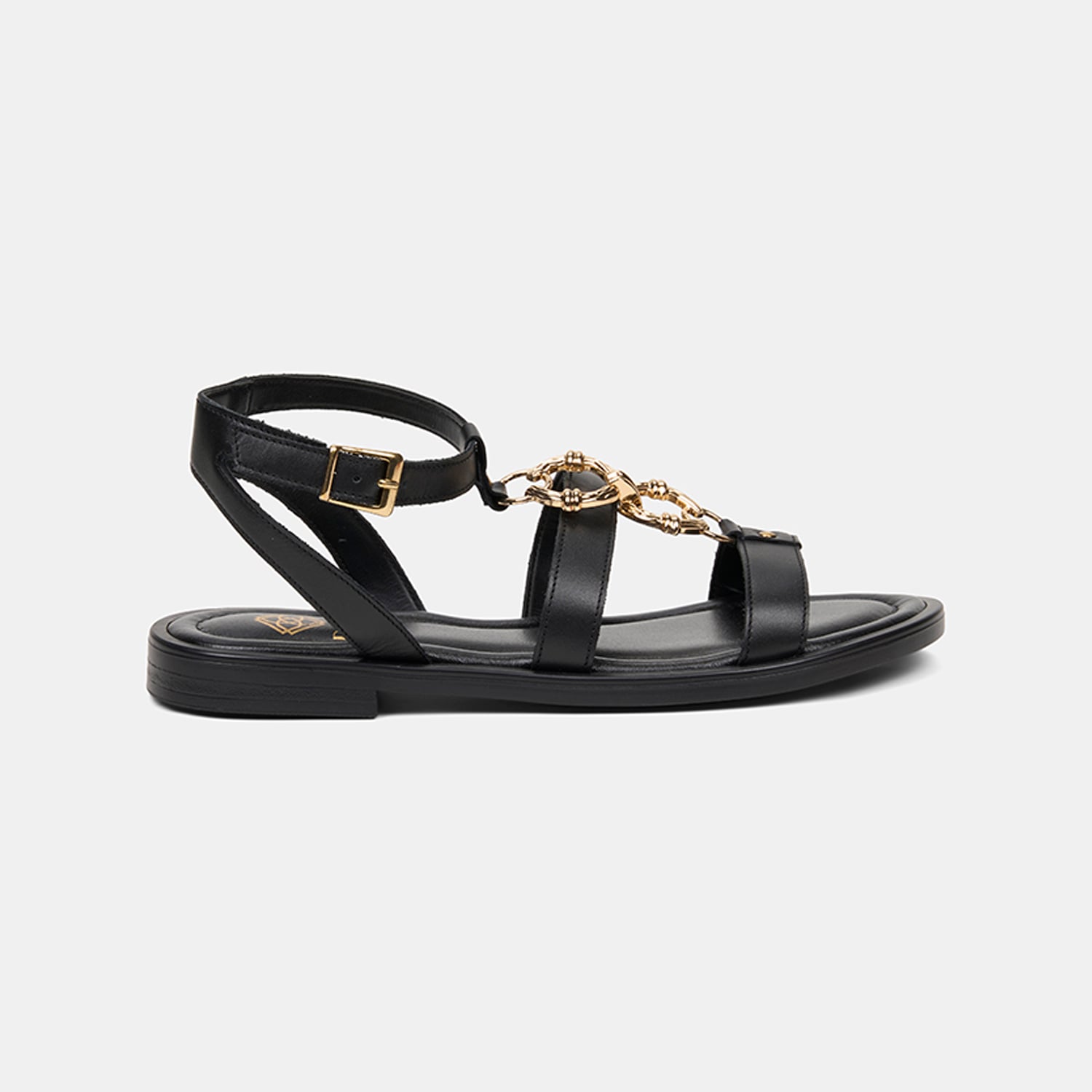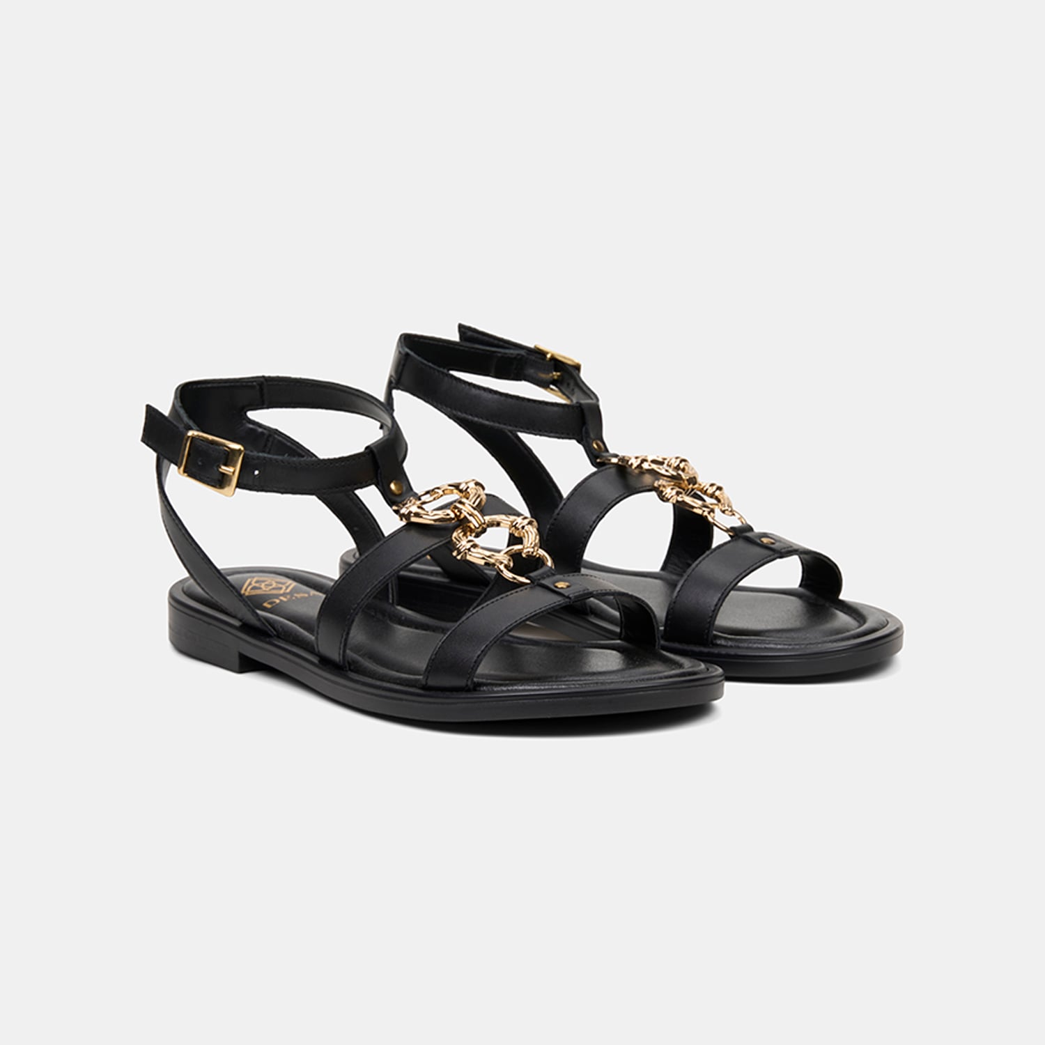 Kadın Siyah Gold Aksesuar Detaylı Deri Sandalet