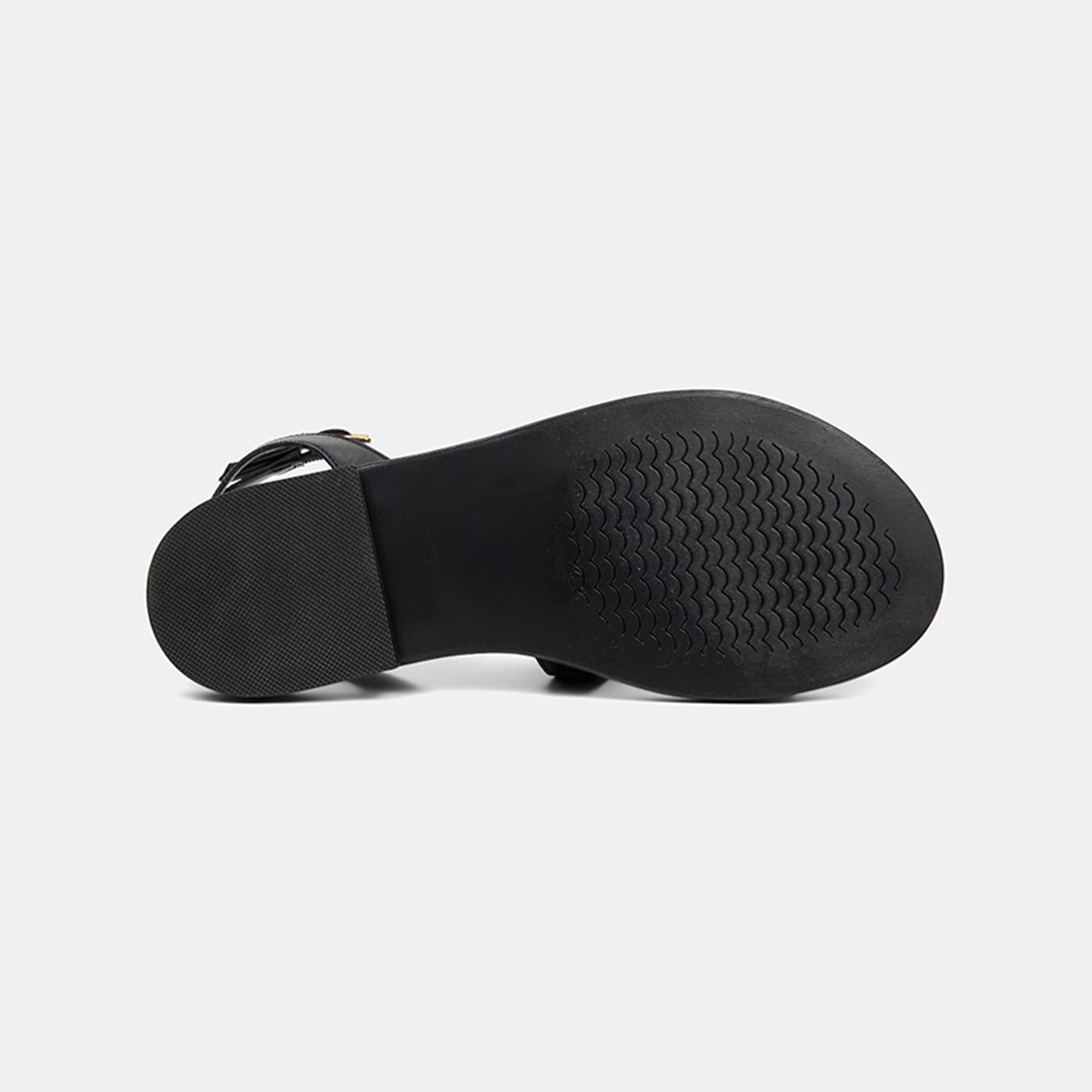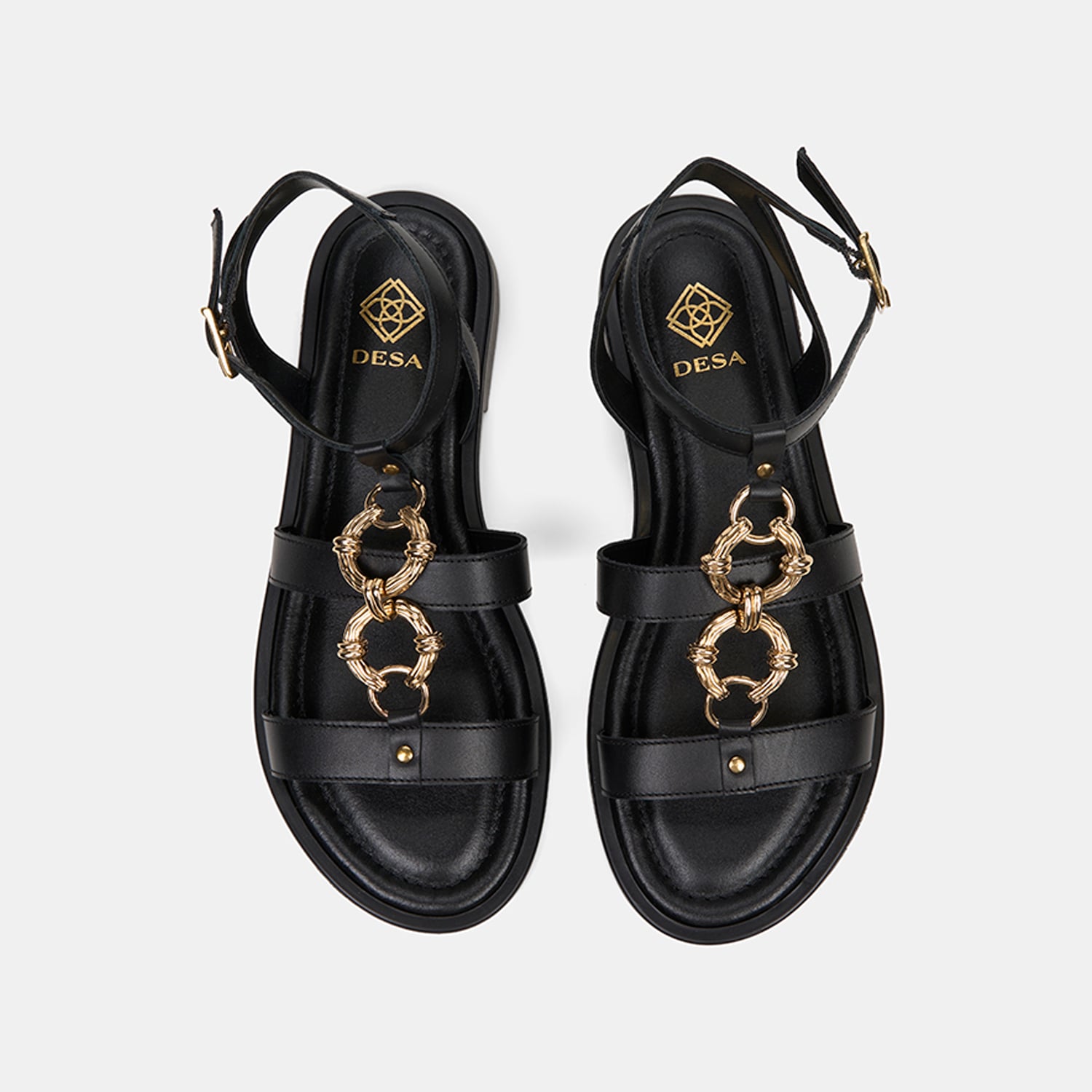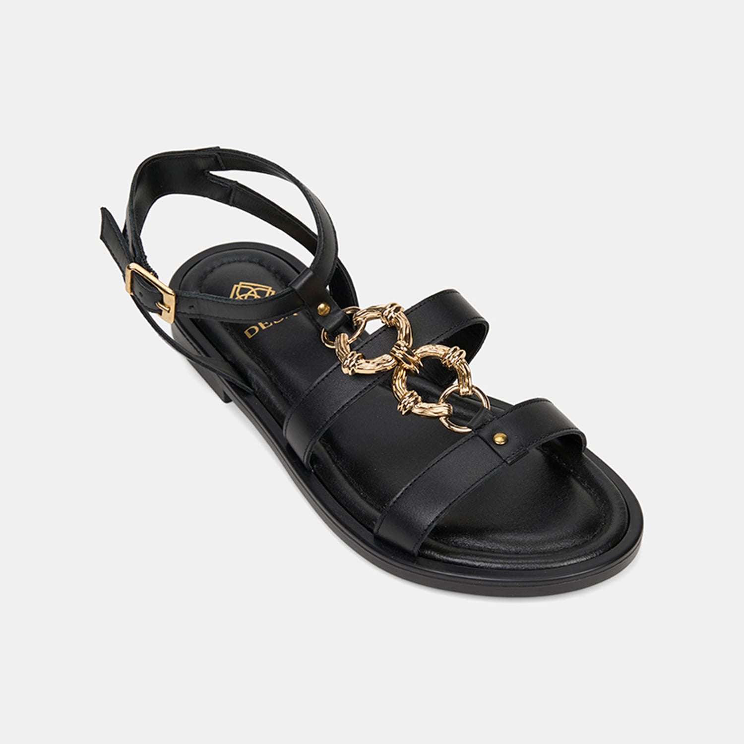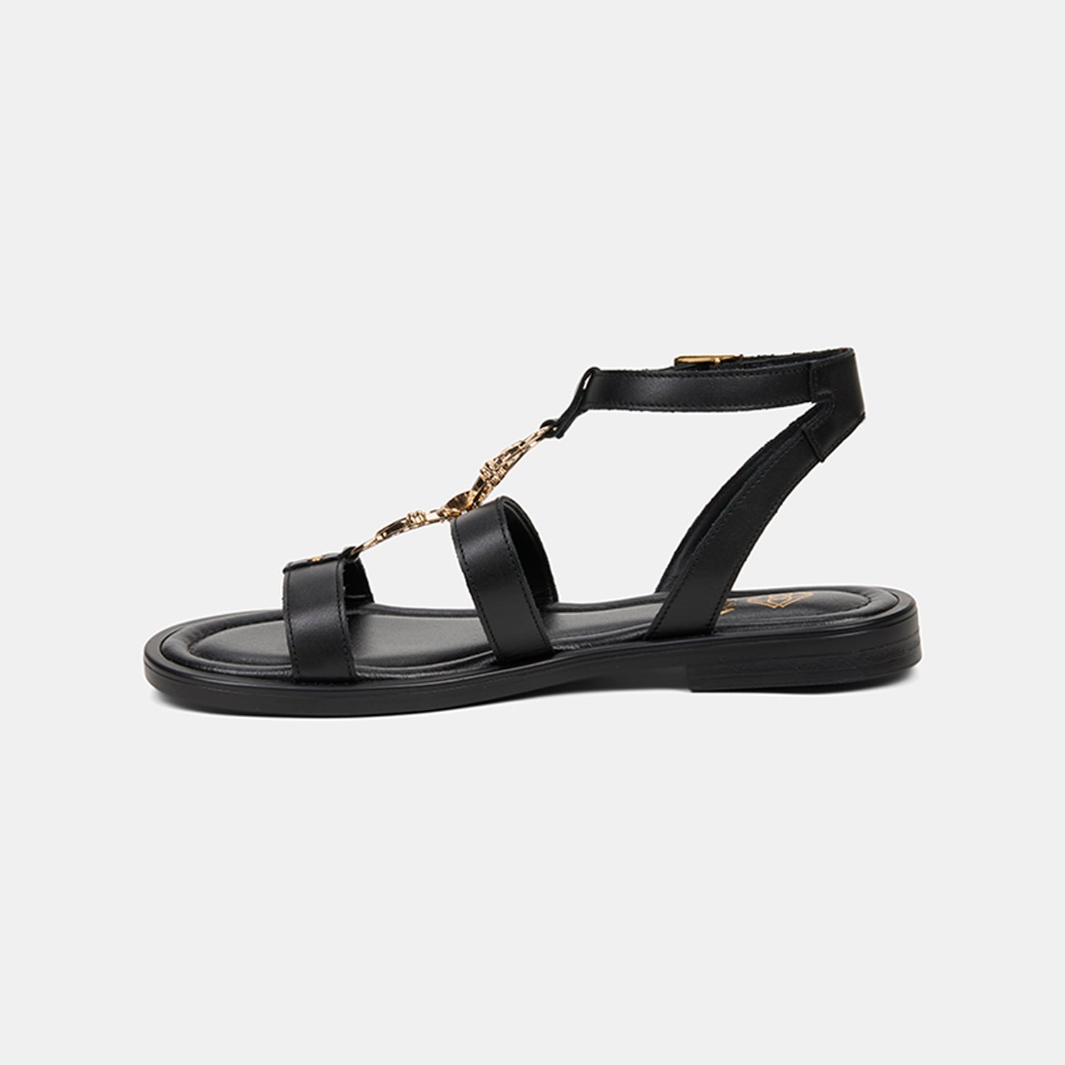 Kadın Siyah Gold Aksesuar Detaylı Deri Sandalet