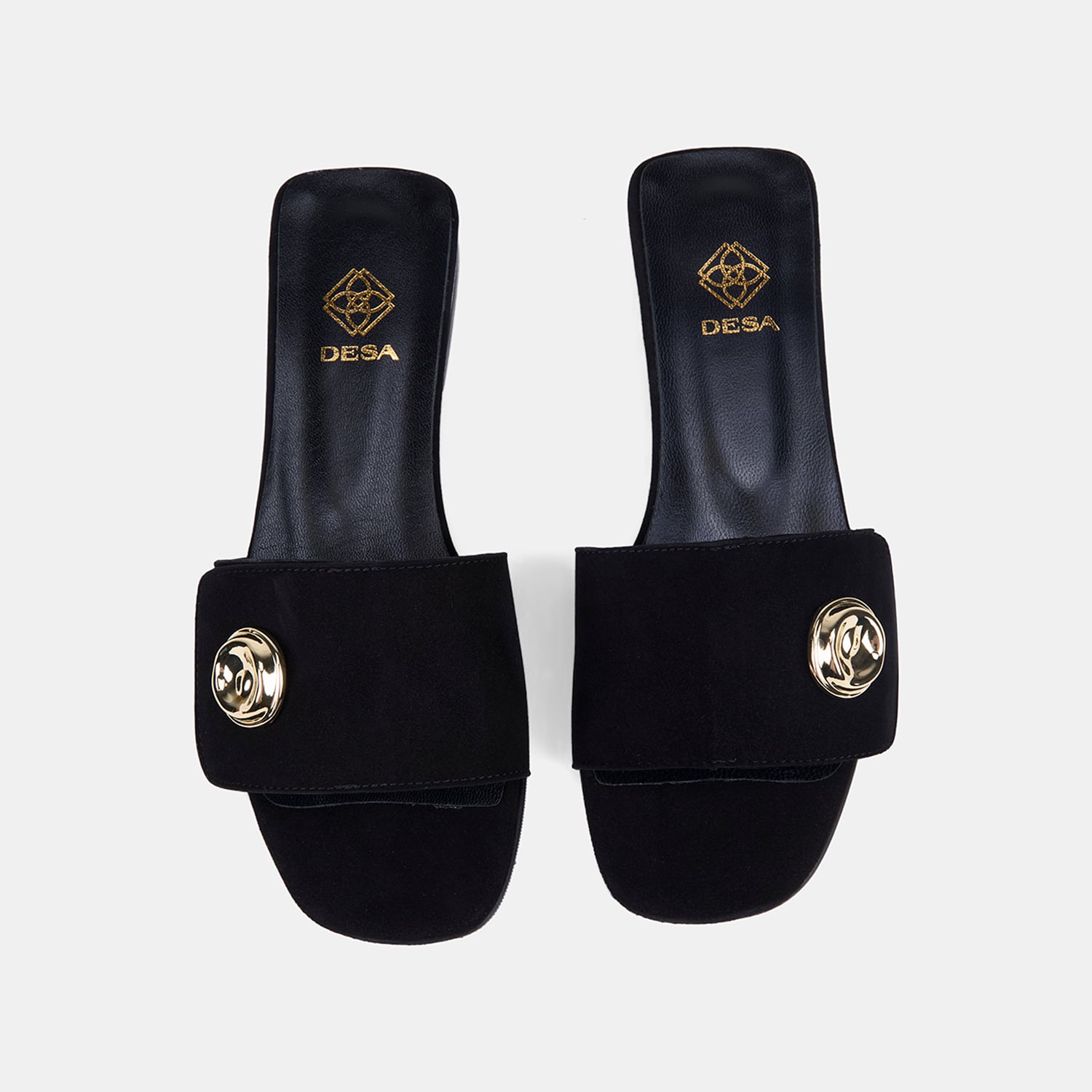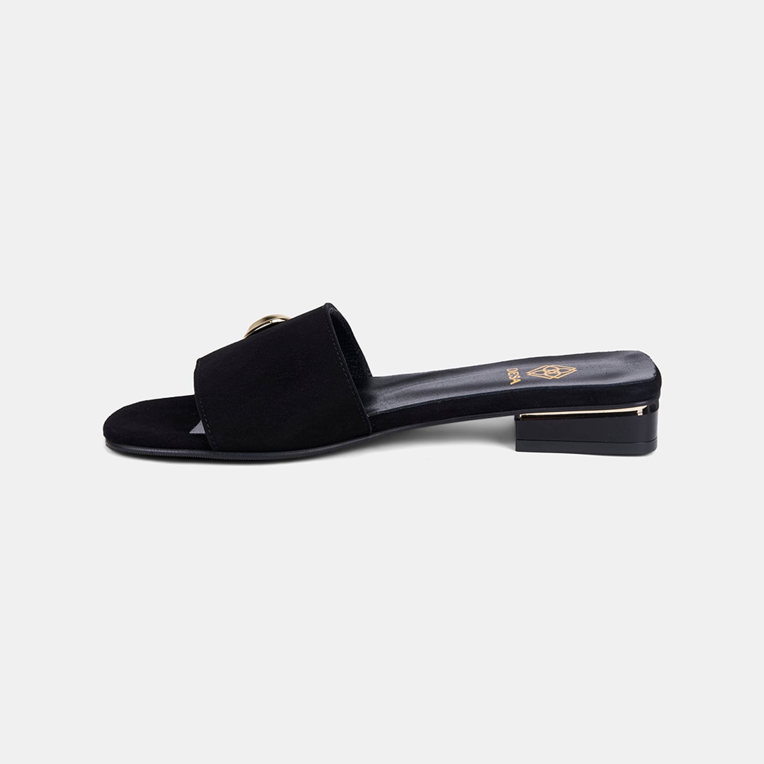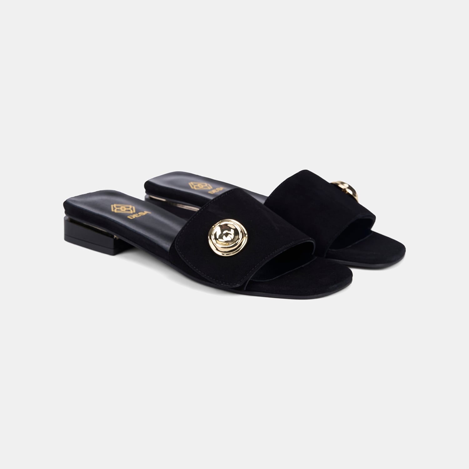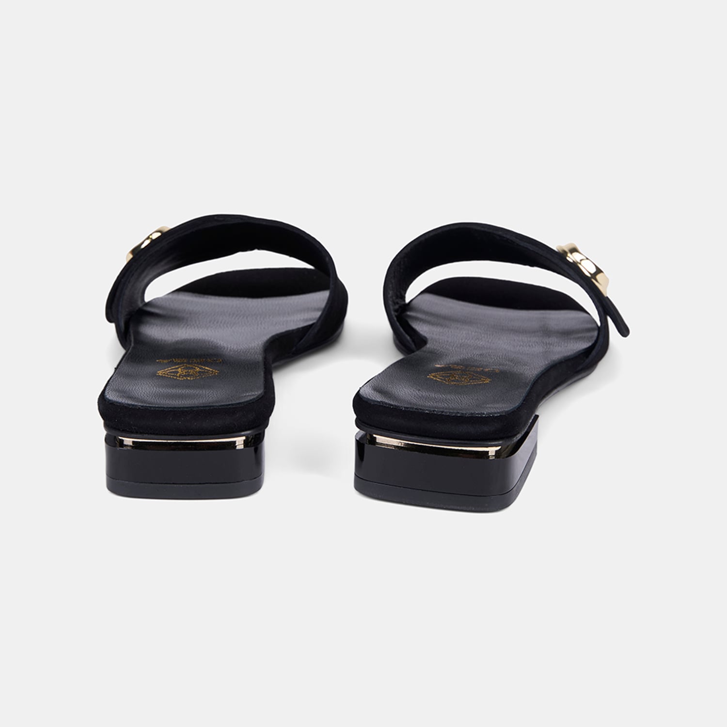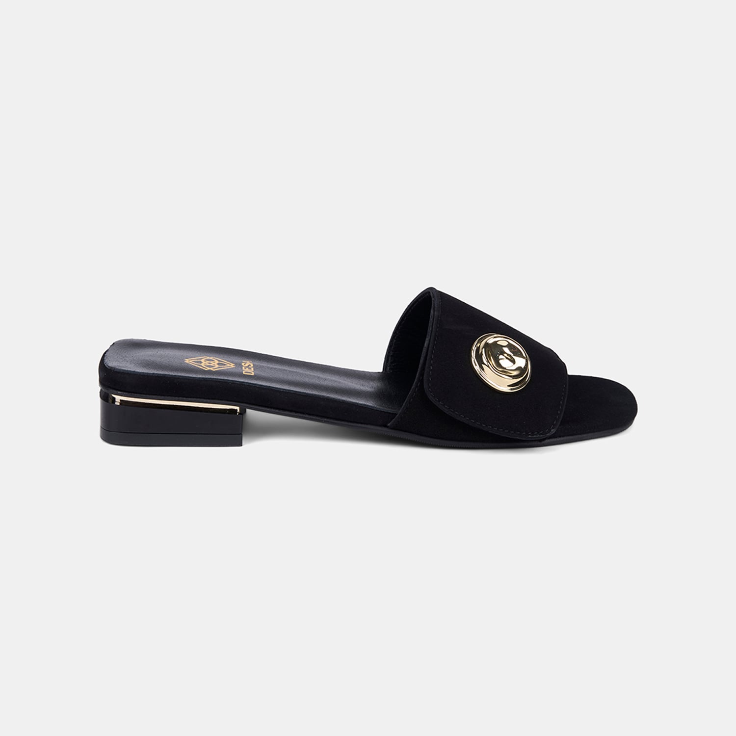 Kadın Siyah Gold Aksesuarlı Süet Terlik