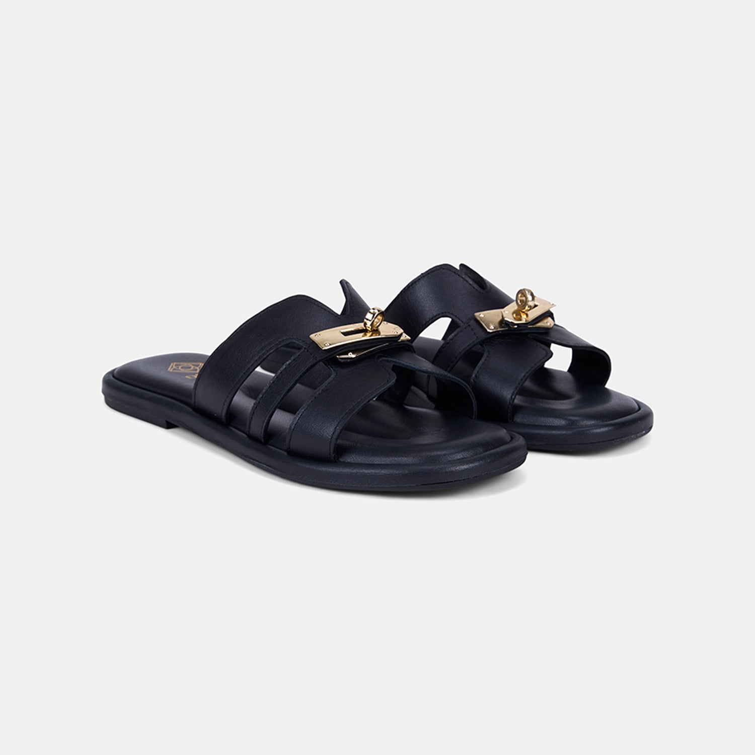 Kadın Siyah Gold Kilit Detaylı Deri Terlik