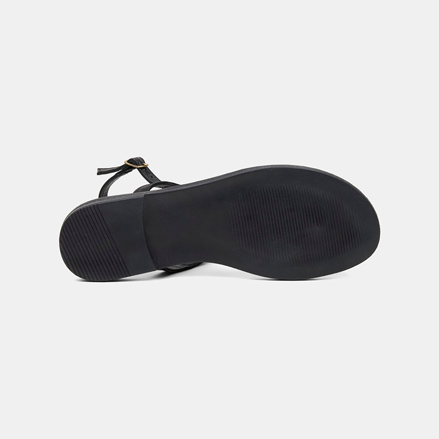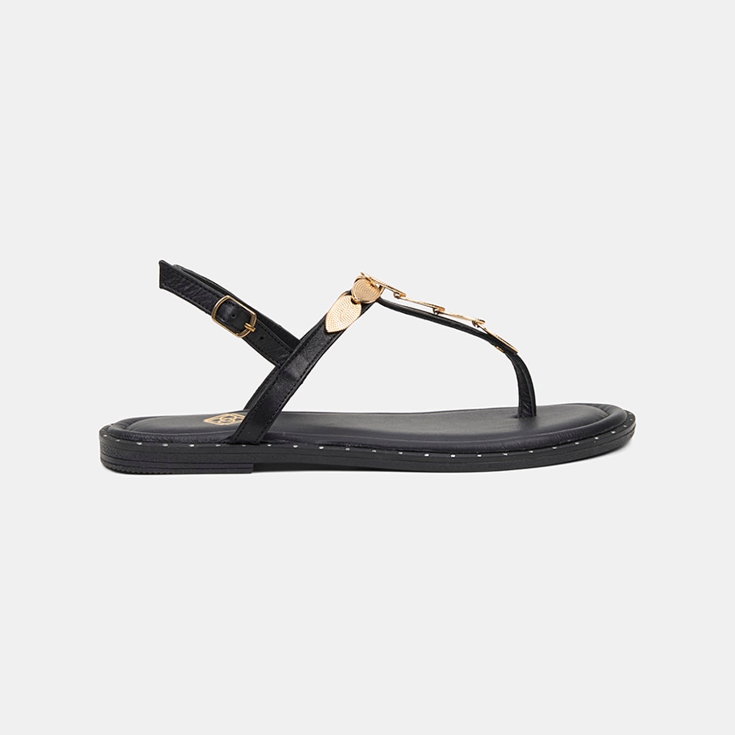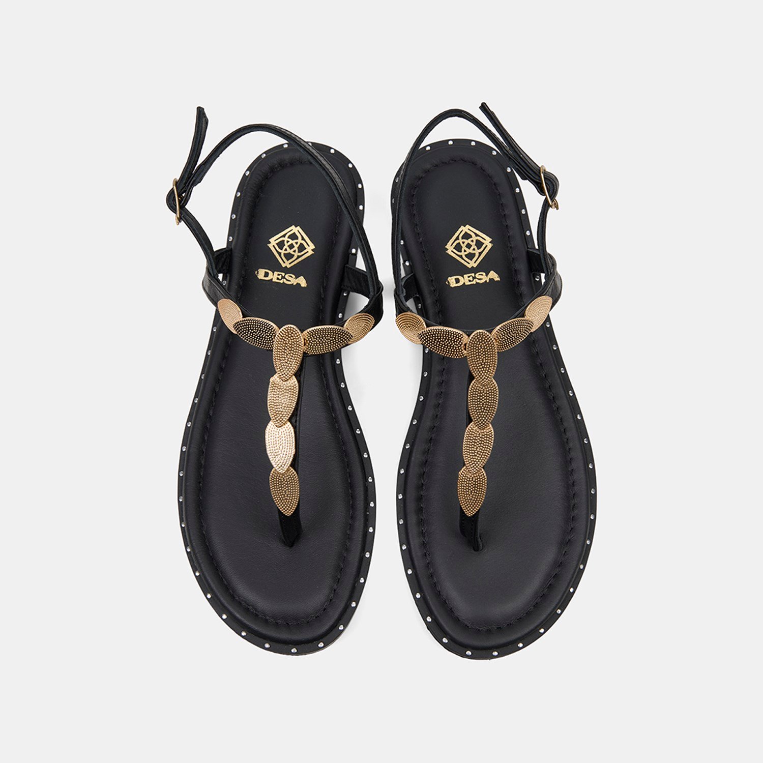 Kadın Siyah Gold Toka Aksesuarlı Parmak Arası Deri Sandalet