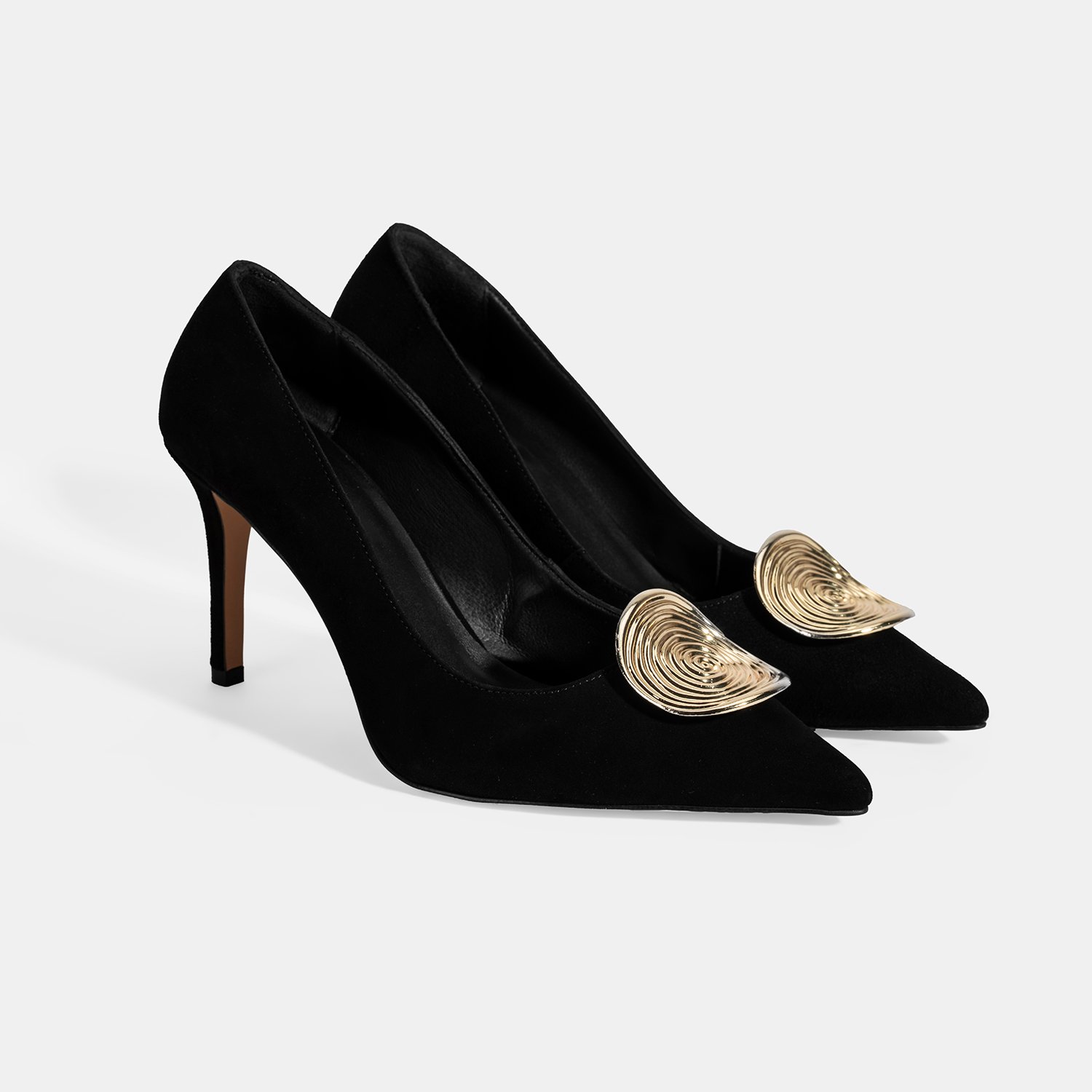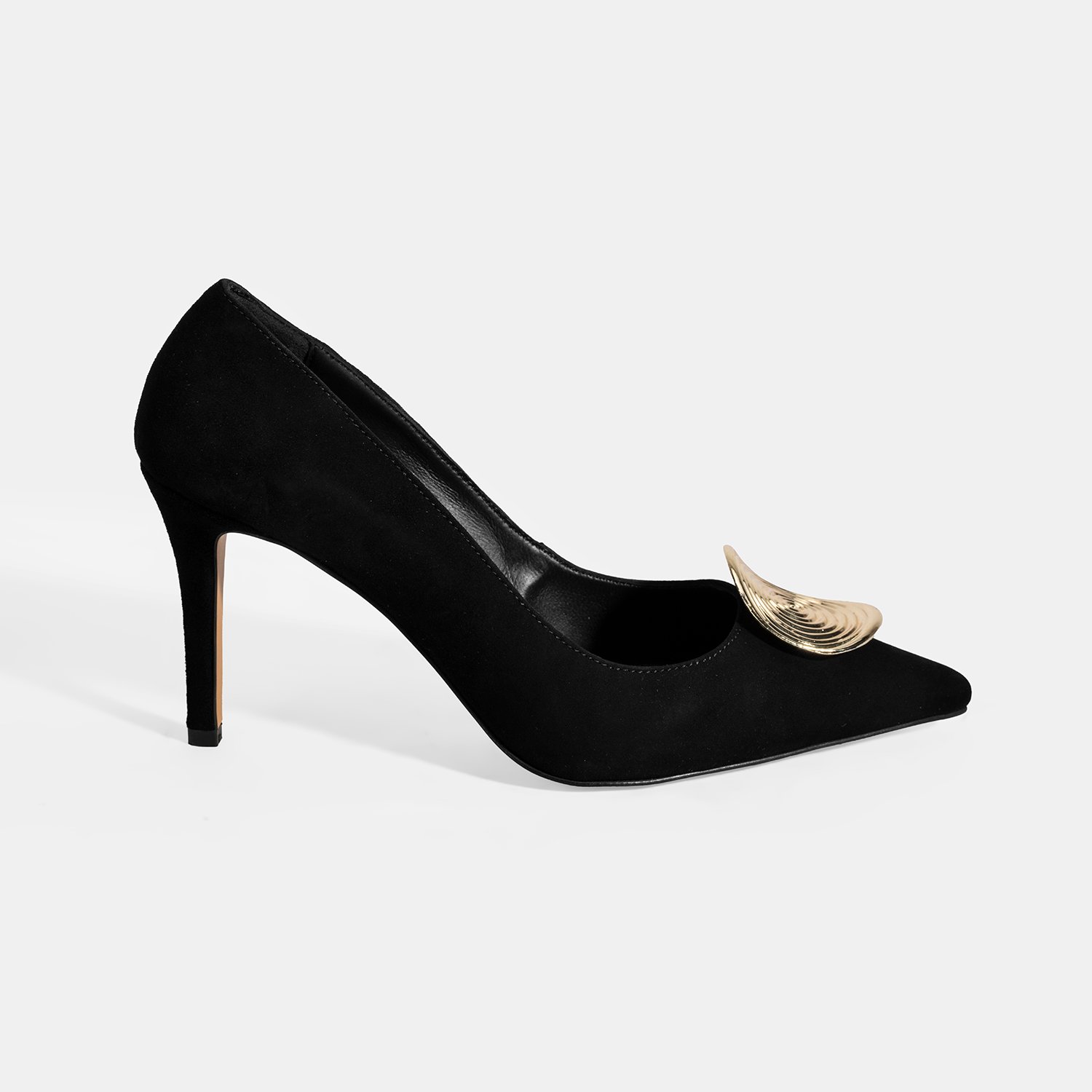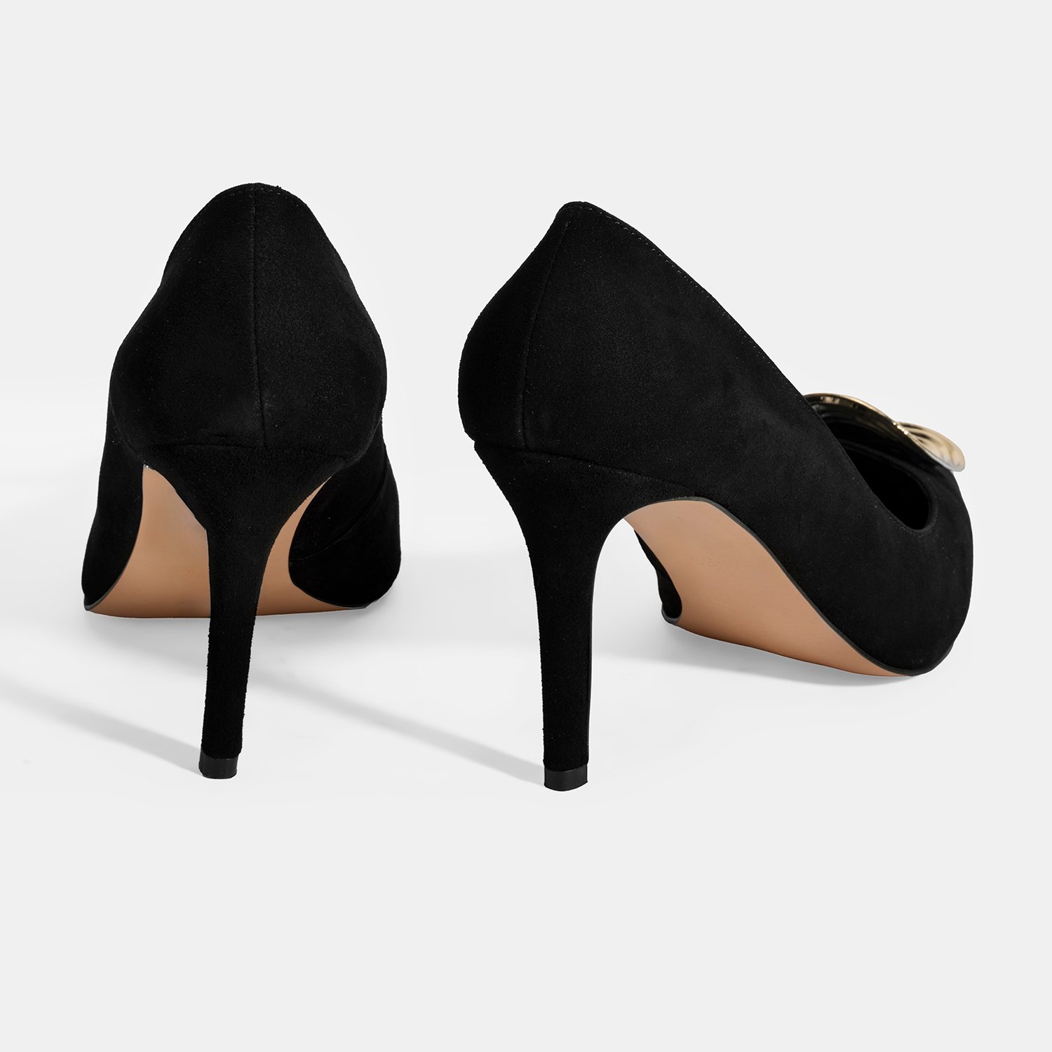 Kadın Siyah Gold Toka Detaylı Süet Topuklu Ayakkabı