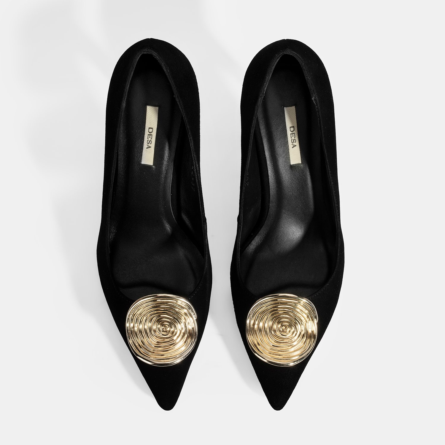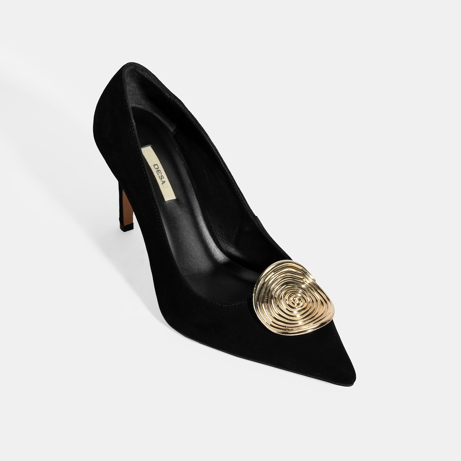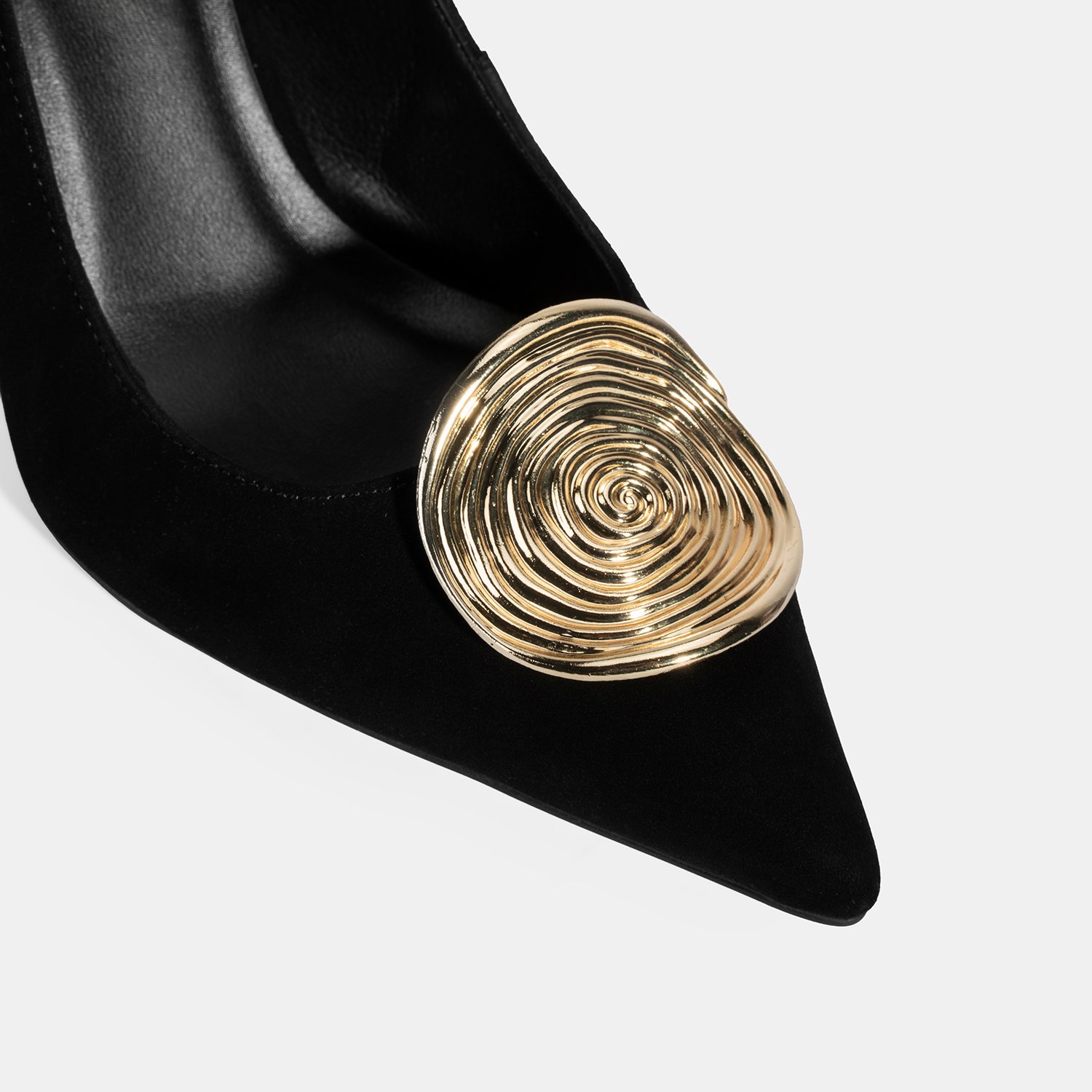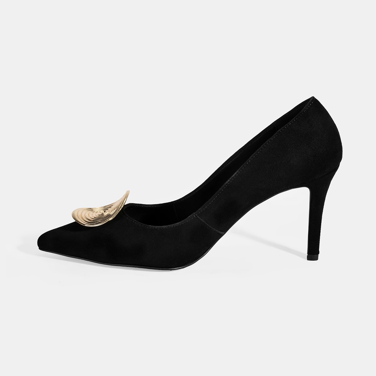 Kadın Siyah Gold Toka Detaylı Süet Topuklu Ayakkabı