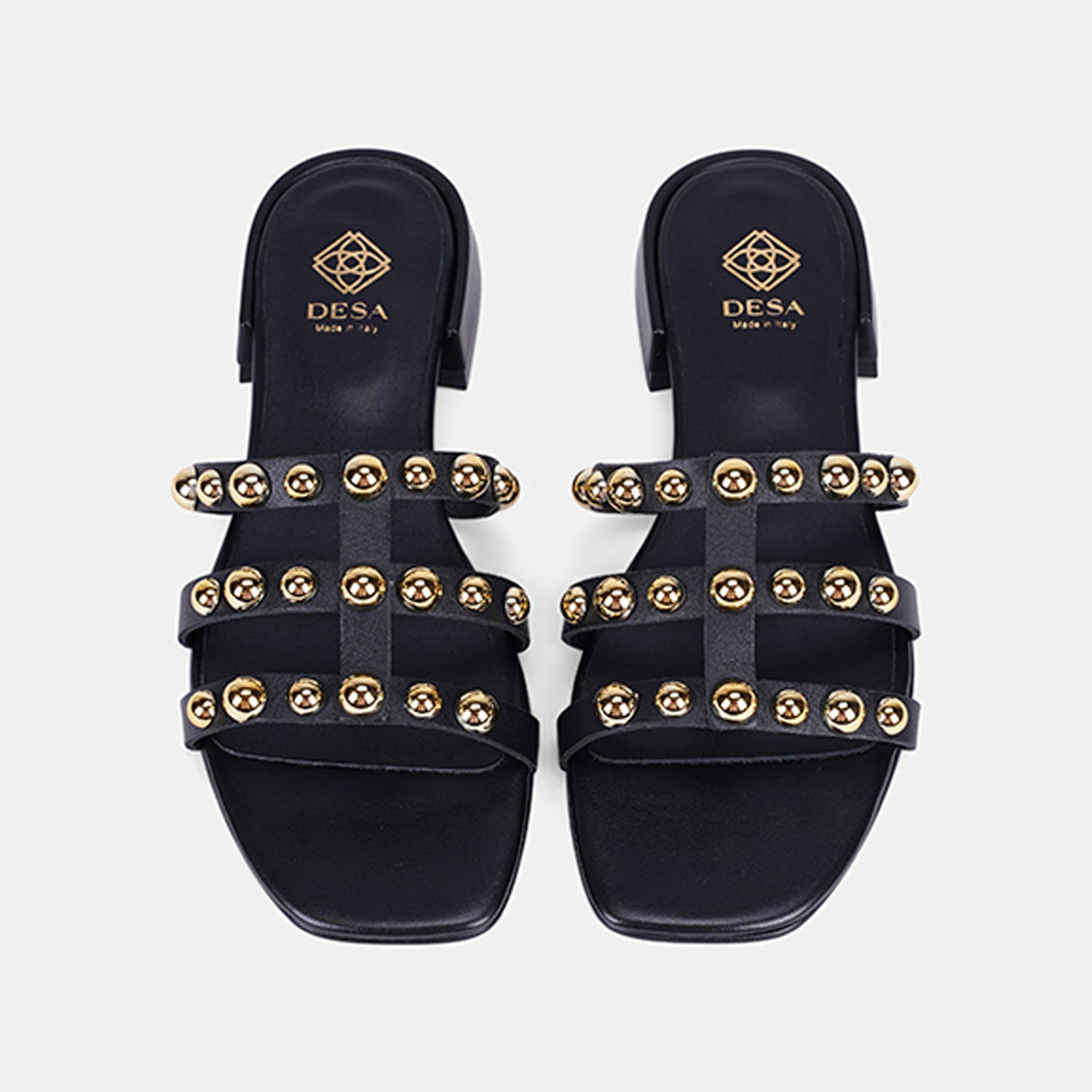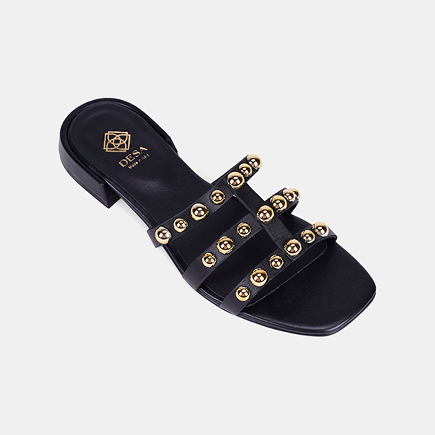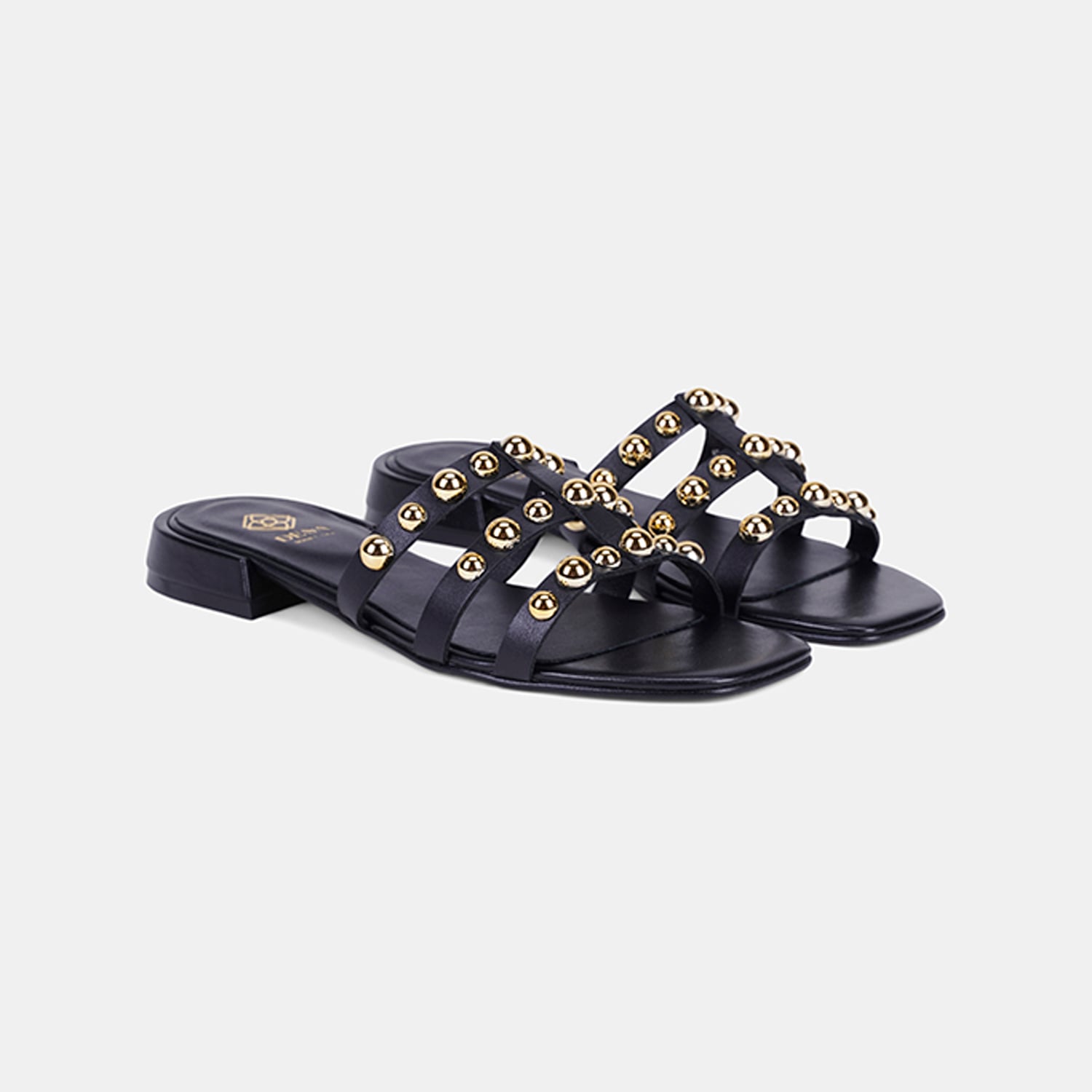 Kadın Siyah Gold Zımba Detaylı Deri Terlik