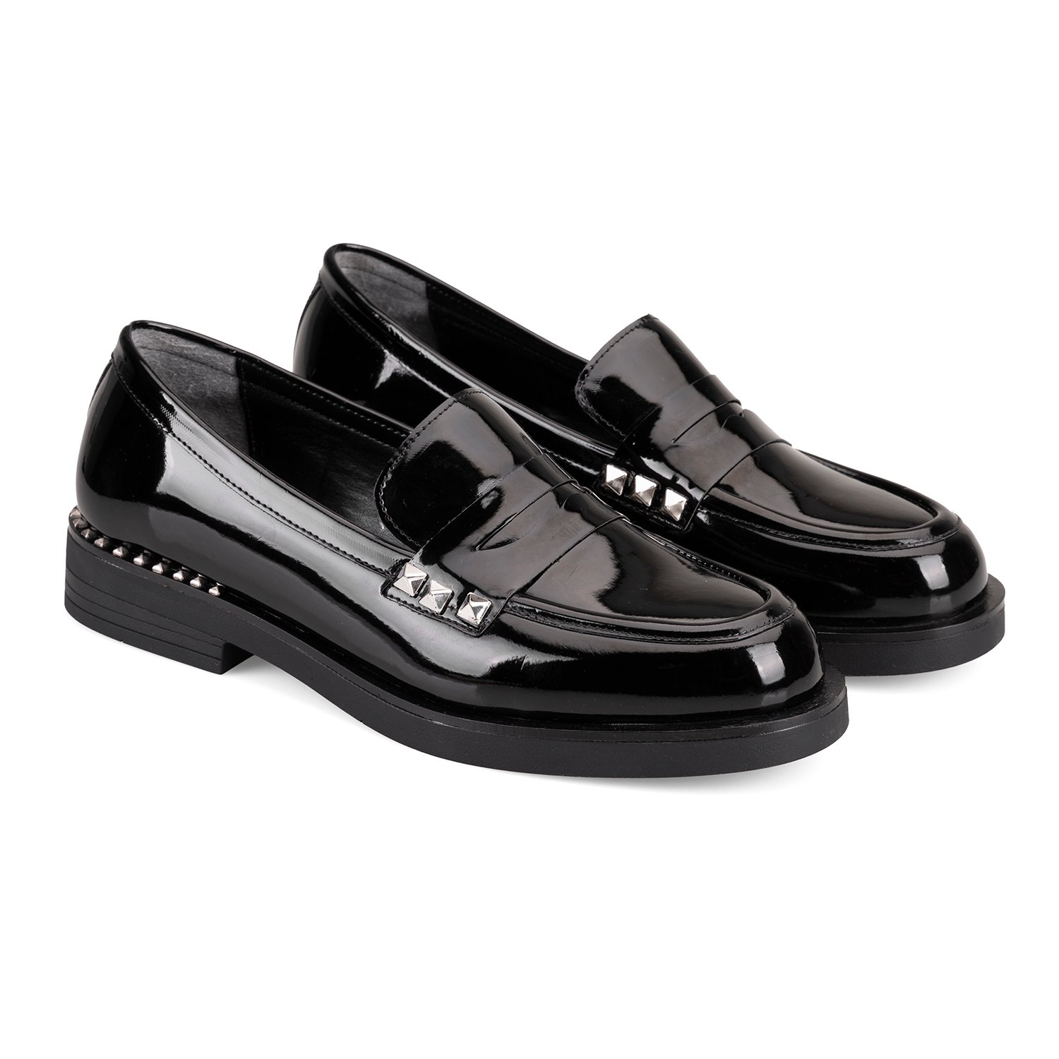 Pu iç tabanlı, pu astarlı, metal aksesuar detaylı, pu tabanlı, kadın laofer.
