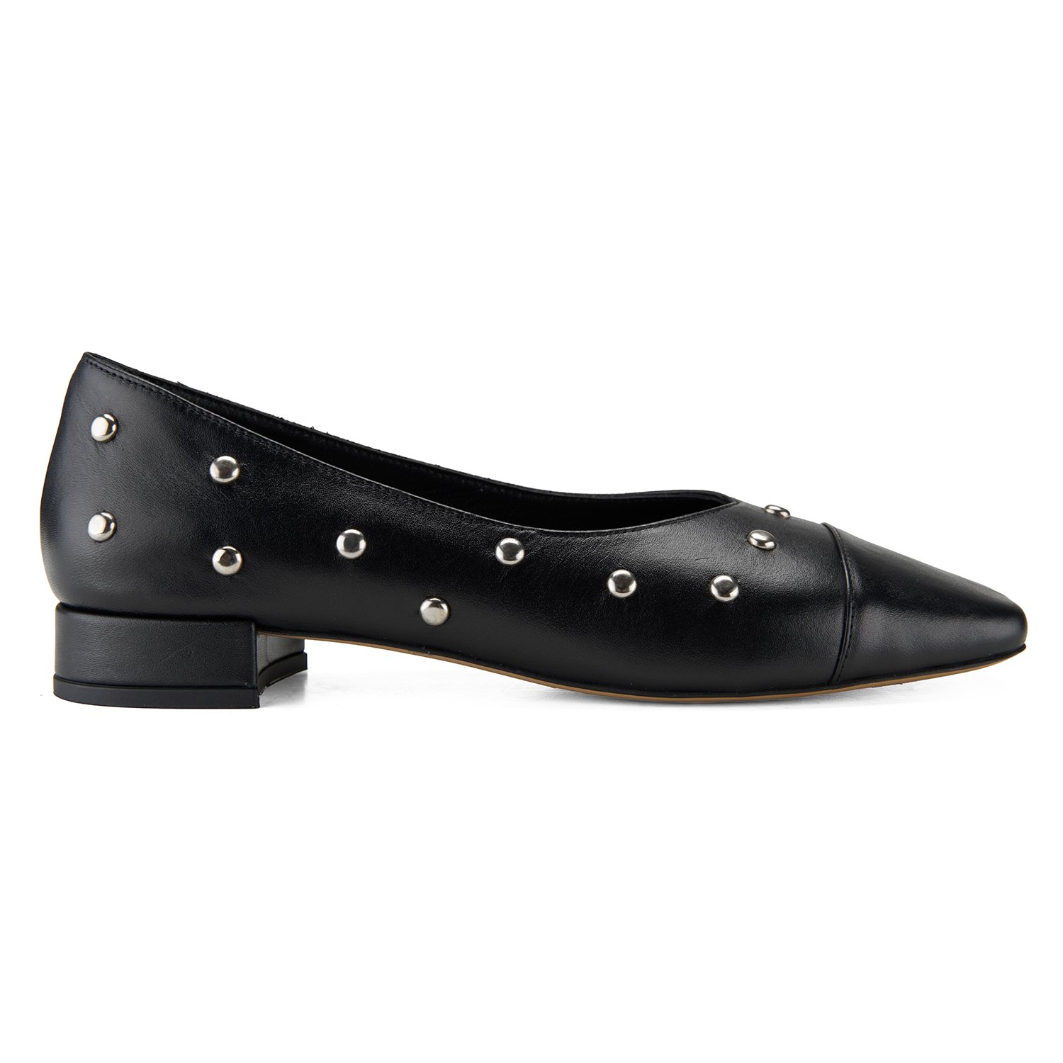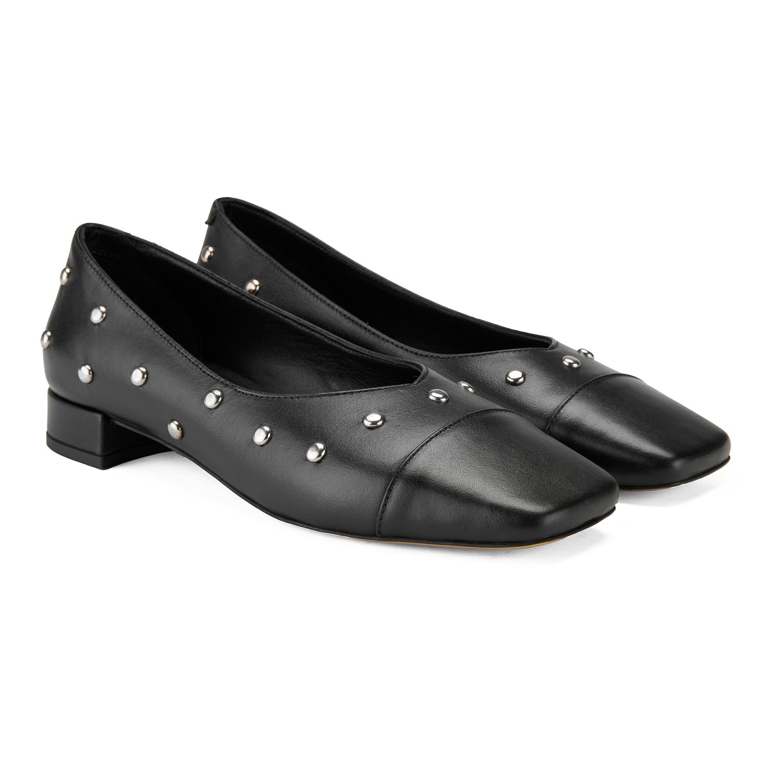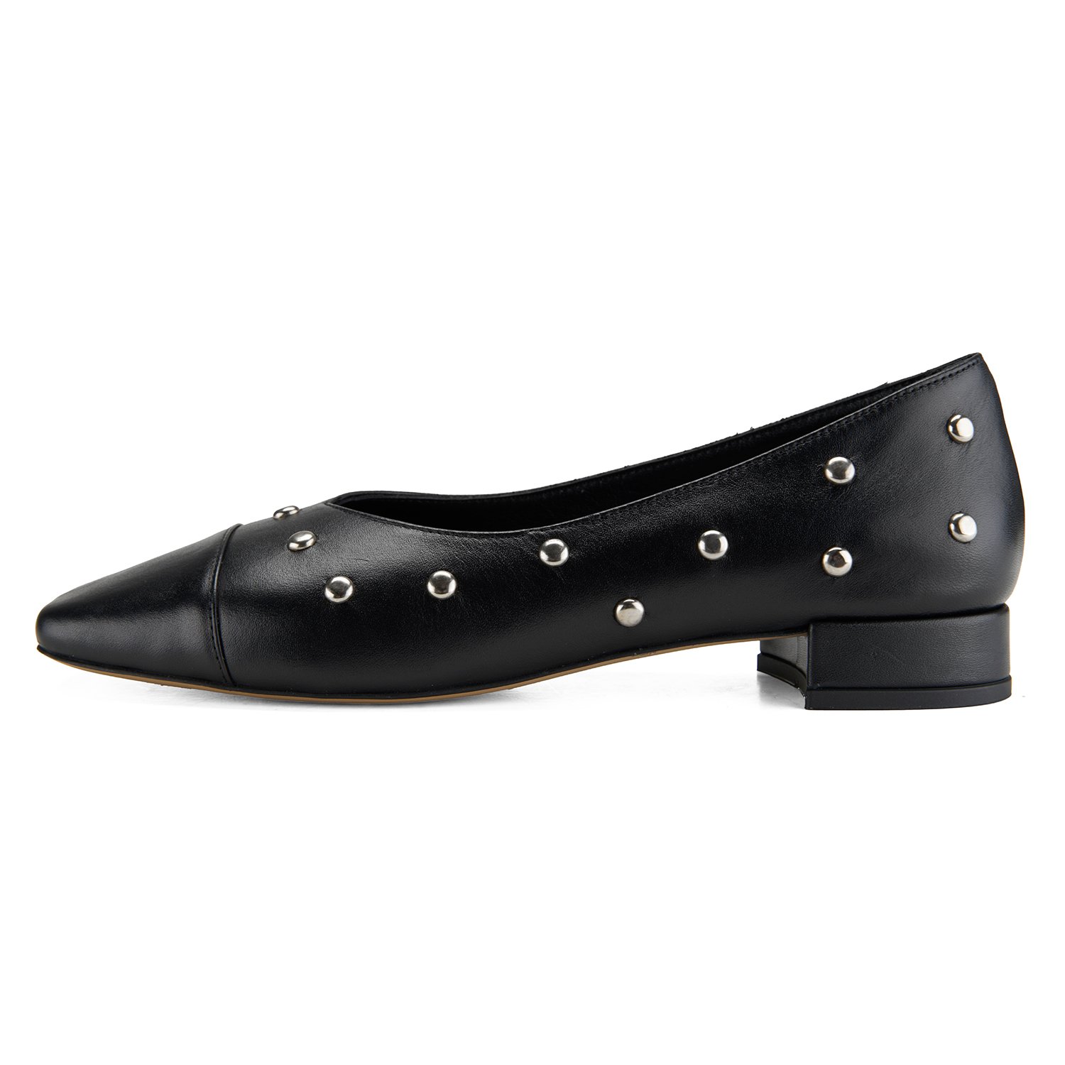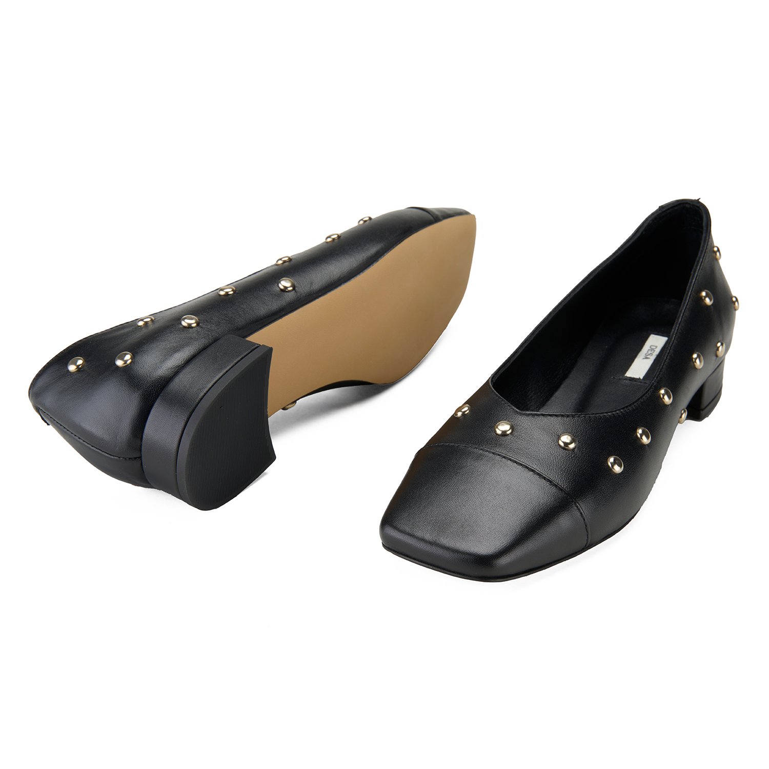 %100 deri, deri iç tabanlı, deri astarlı, metal pim detaylı, neolit tabanlı, kadın babet.