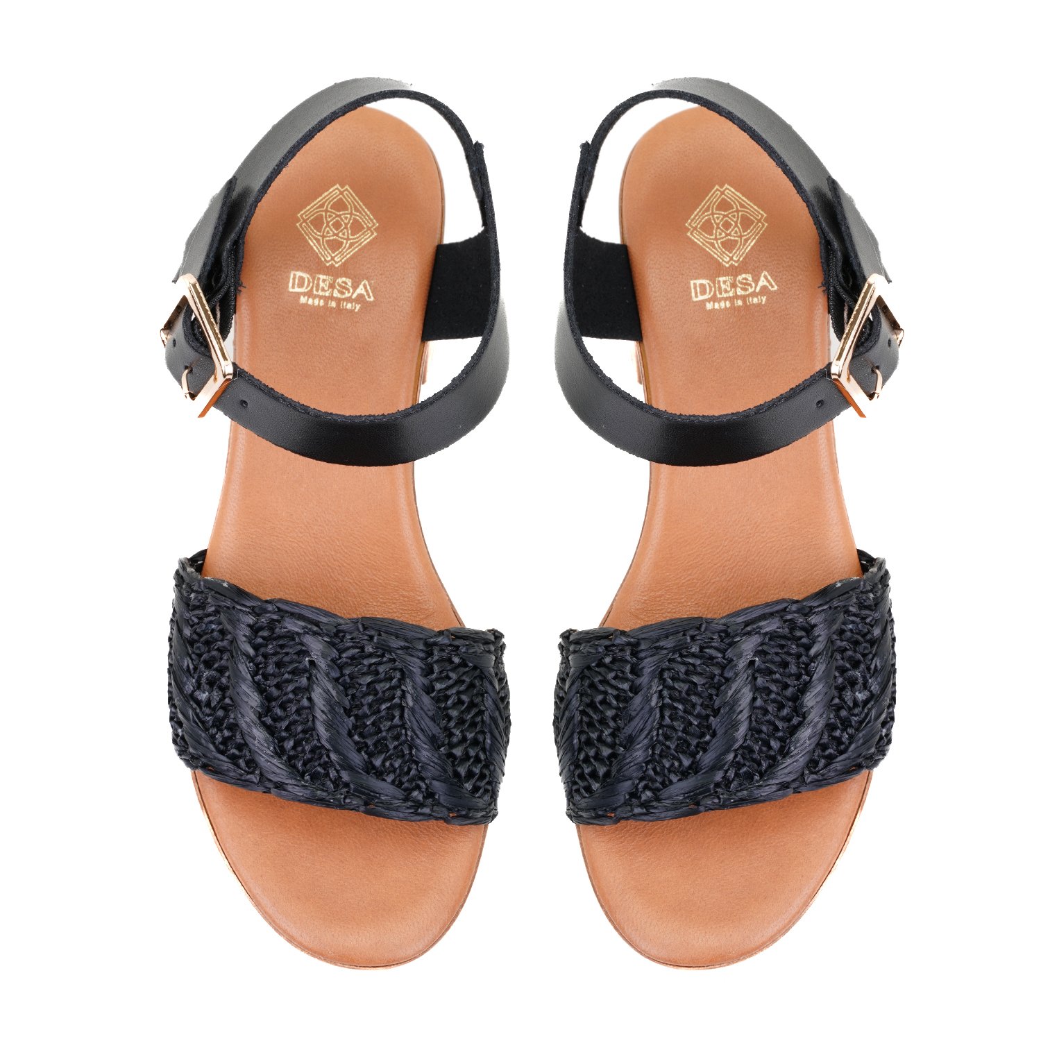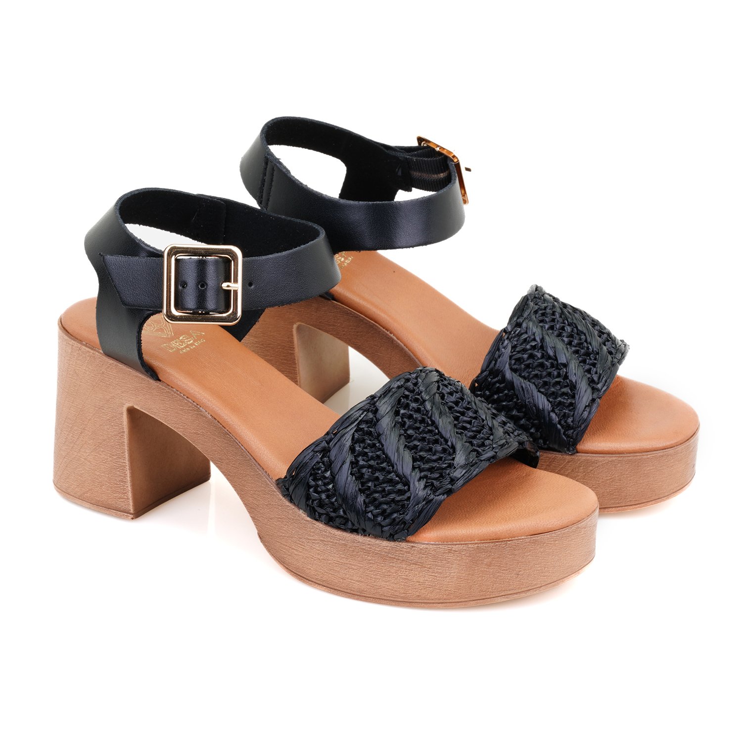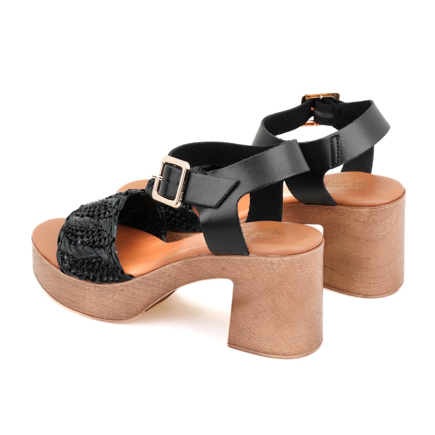 Kadın Siyah Hasır Topuklu Deri Sandalet
