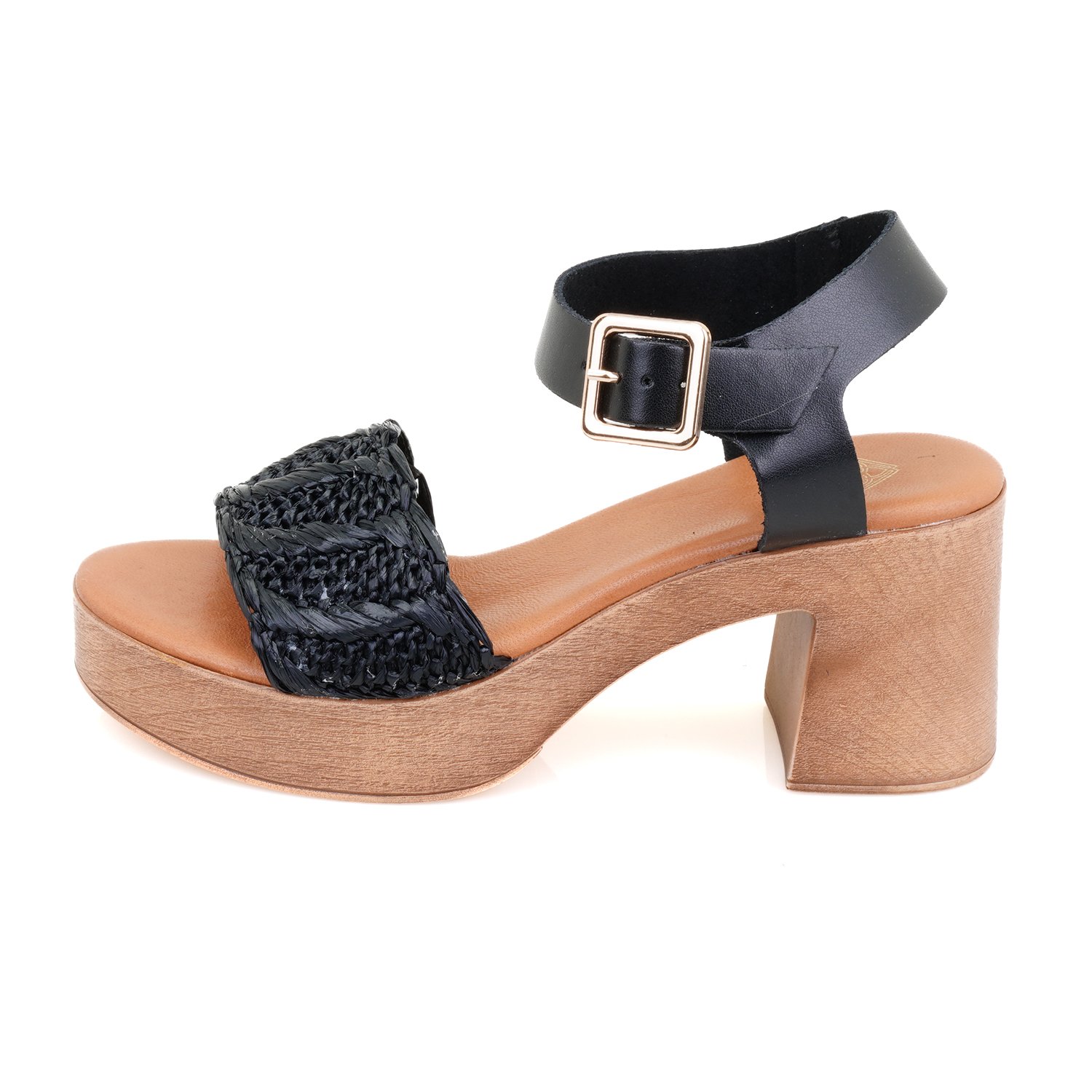 %50 rafya örgü, %50 deri, pu iç astarlı, deri iç tabanlı, pu tabanlı, kadın topuklu sandalet.