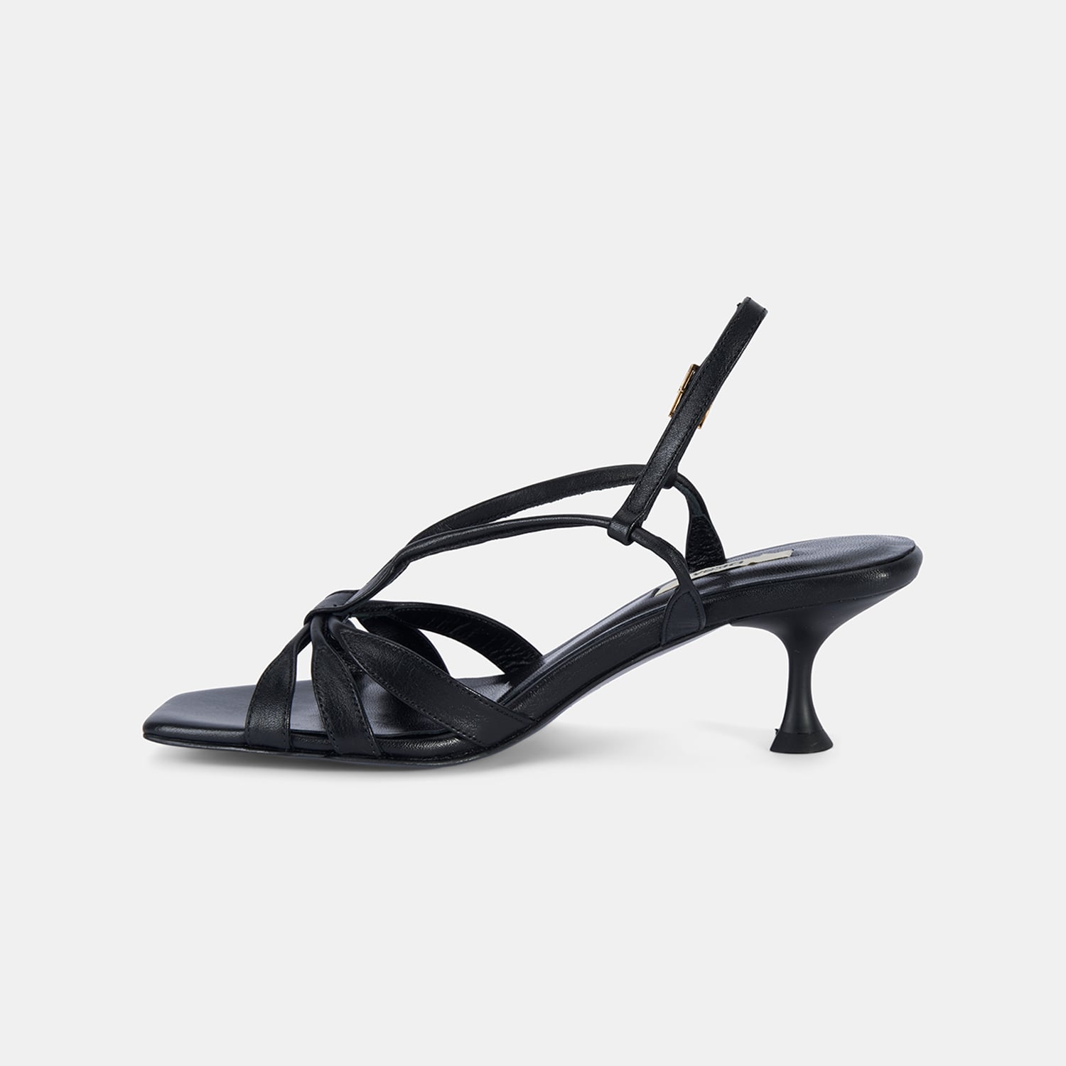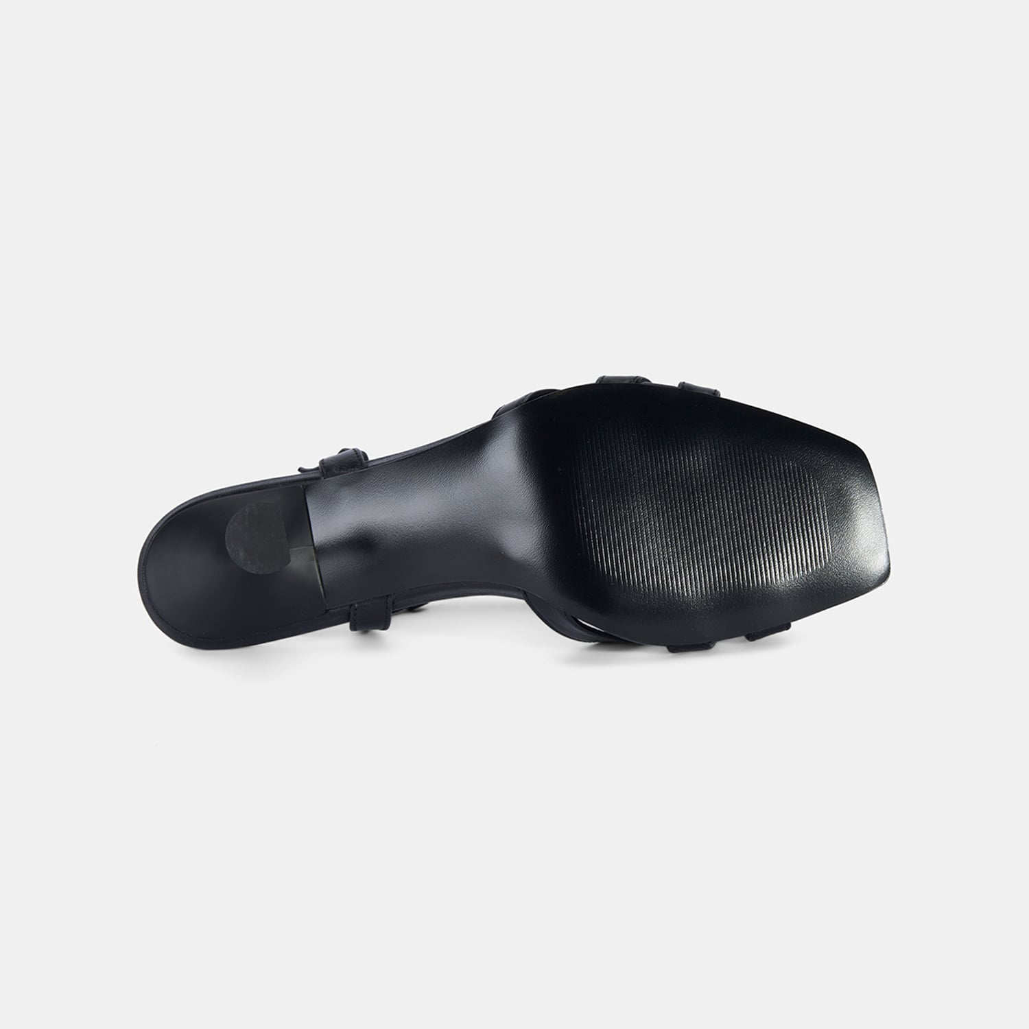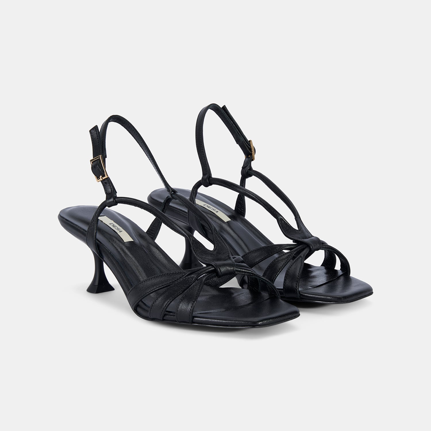Kadın deri topuklu sandalet, sade tasarımı ve zamansız formuyla şehir kullanımı ve günlük stil için uygun bir modeldir.