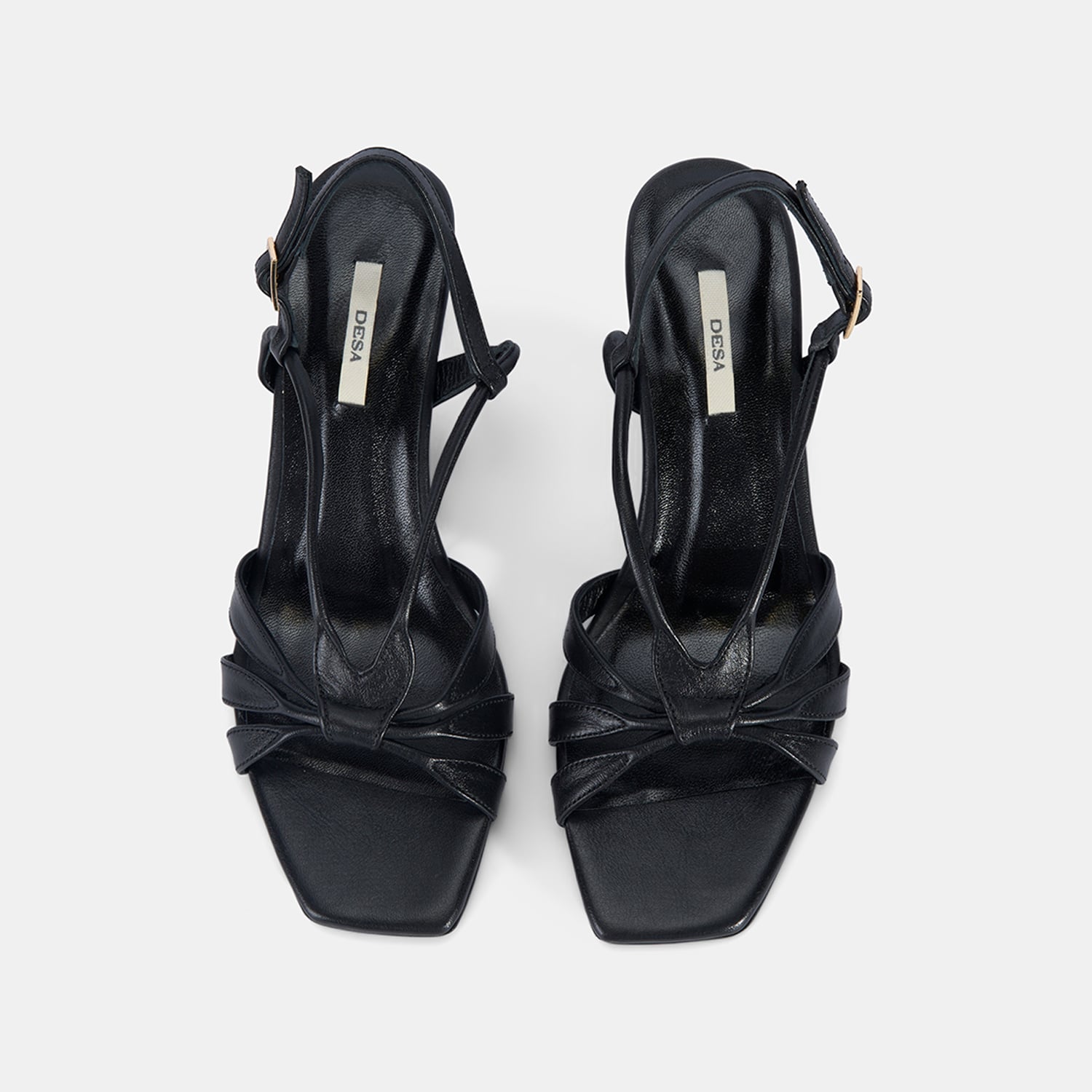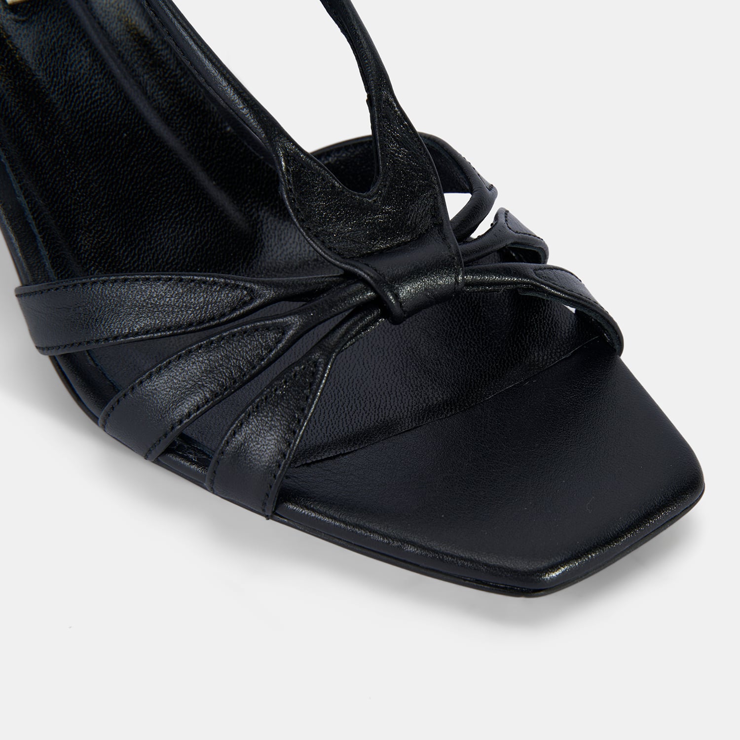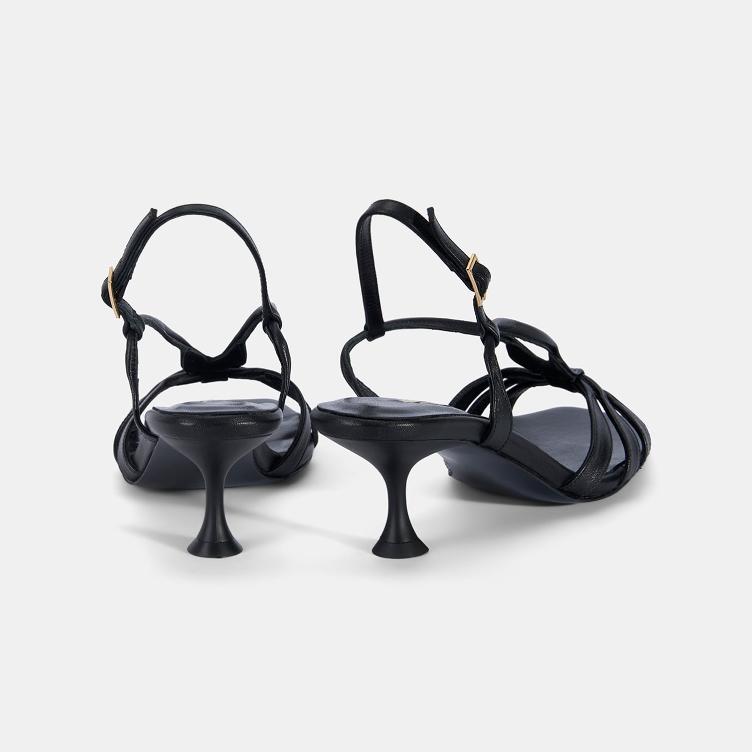 Kadın deri topuklu sandalet, sade tasarımı ve zamansız formuyla şehir kullanımı ve günlük stil için uygun bir modeldir.