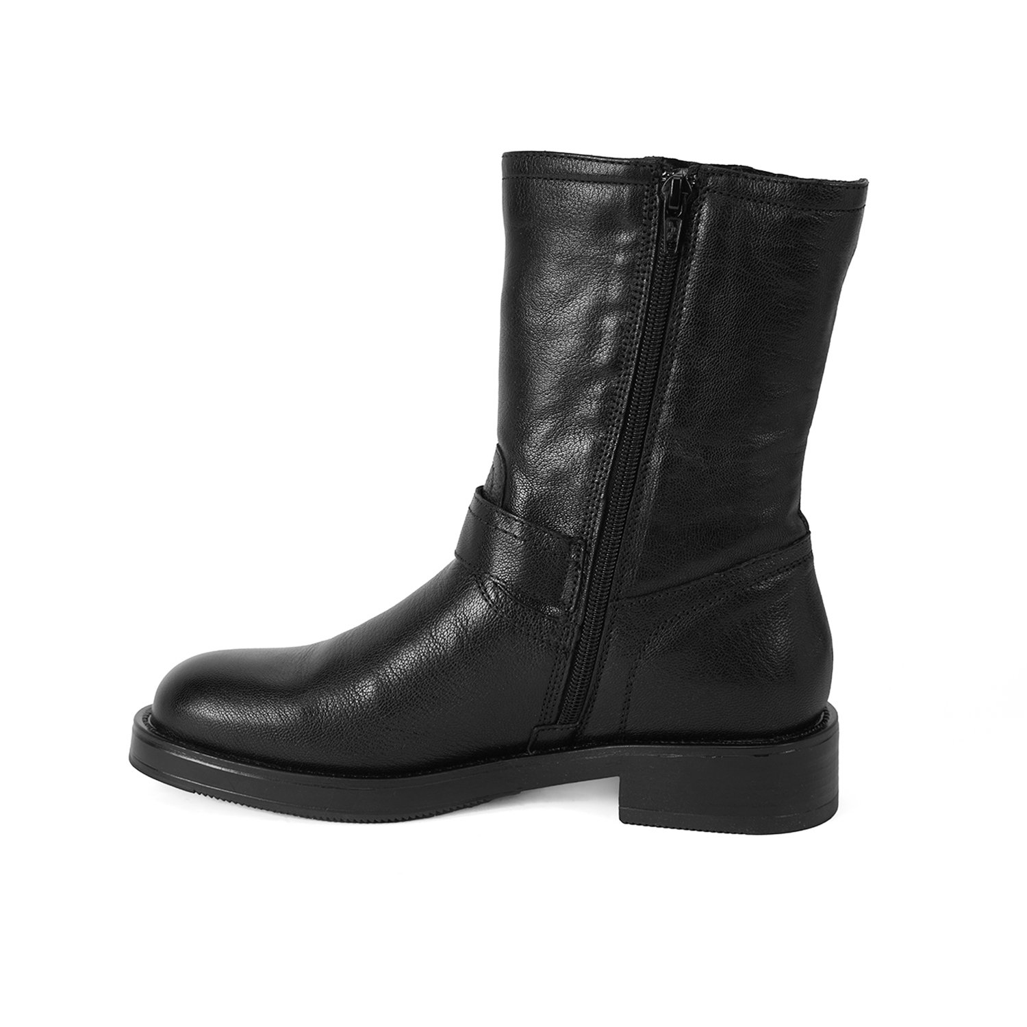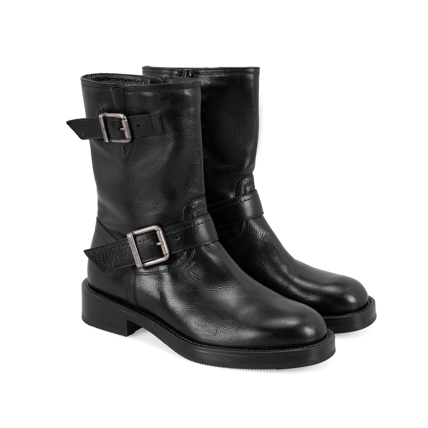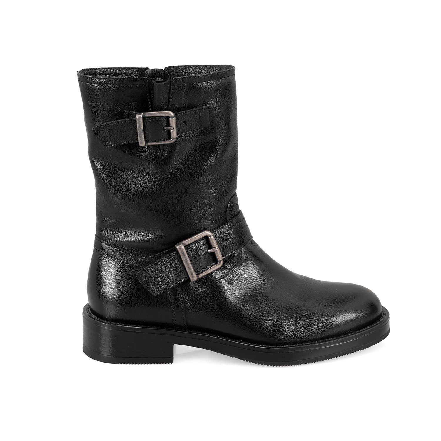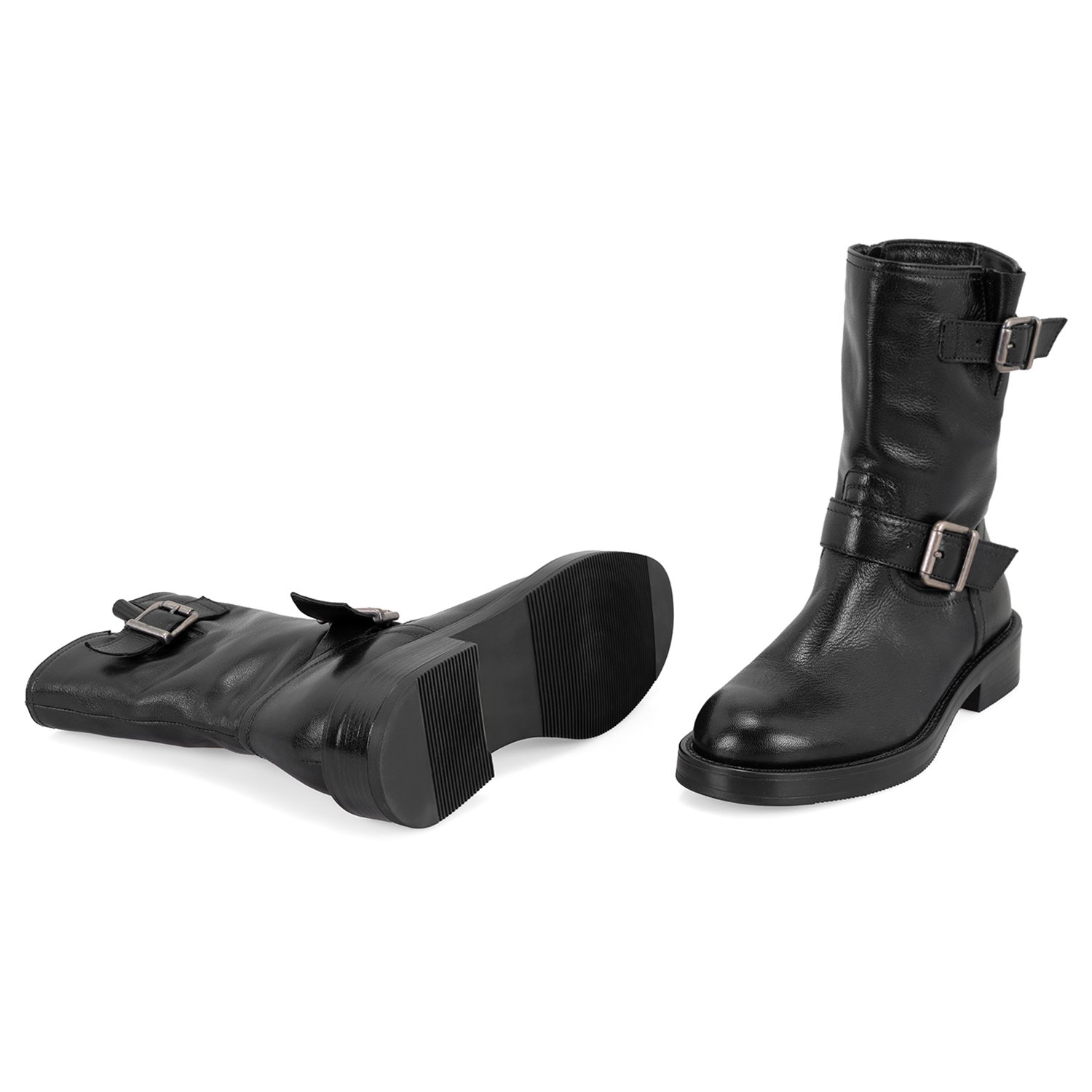 %100 deri, deri iç tabanlı, tekstil astarlı, metal toka akesuarlı, termo tabanlı, içten fermuarlı kadın biker bot.