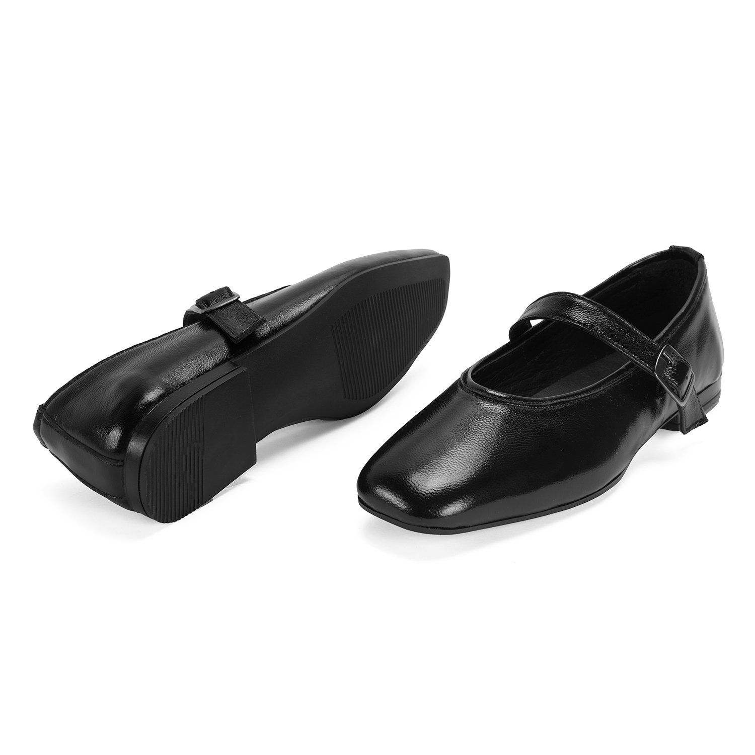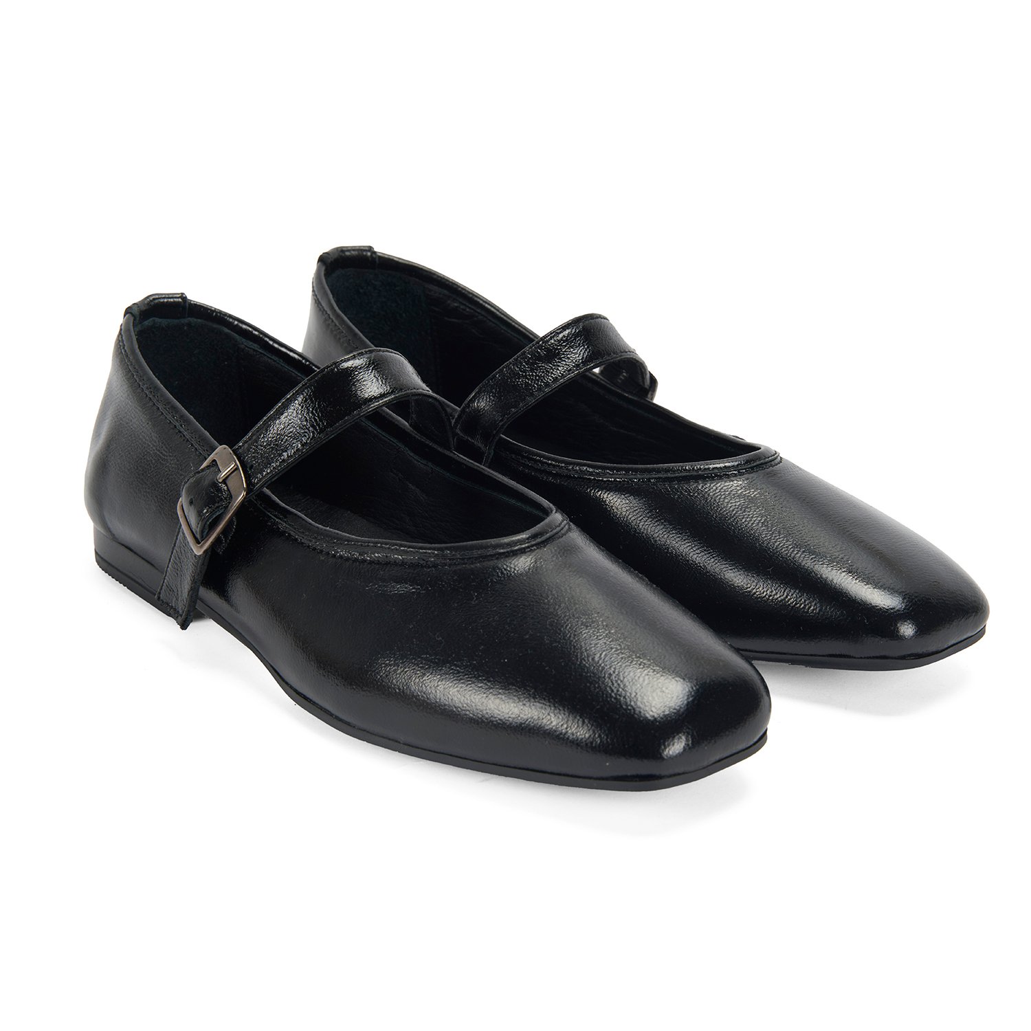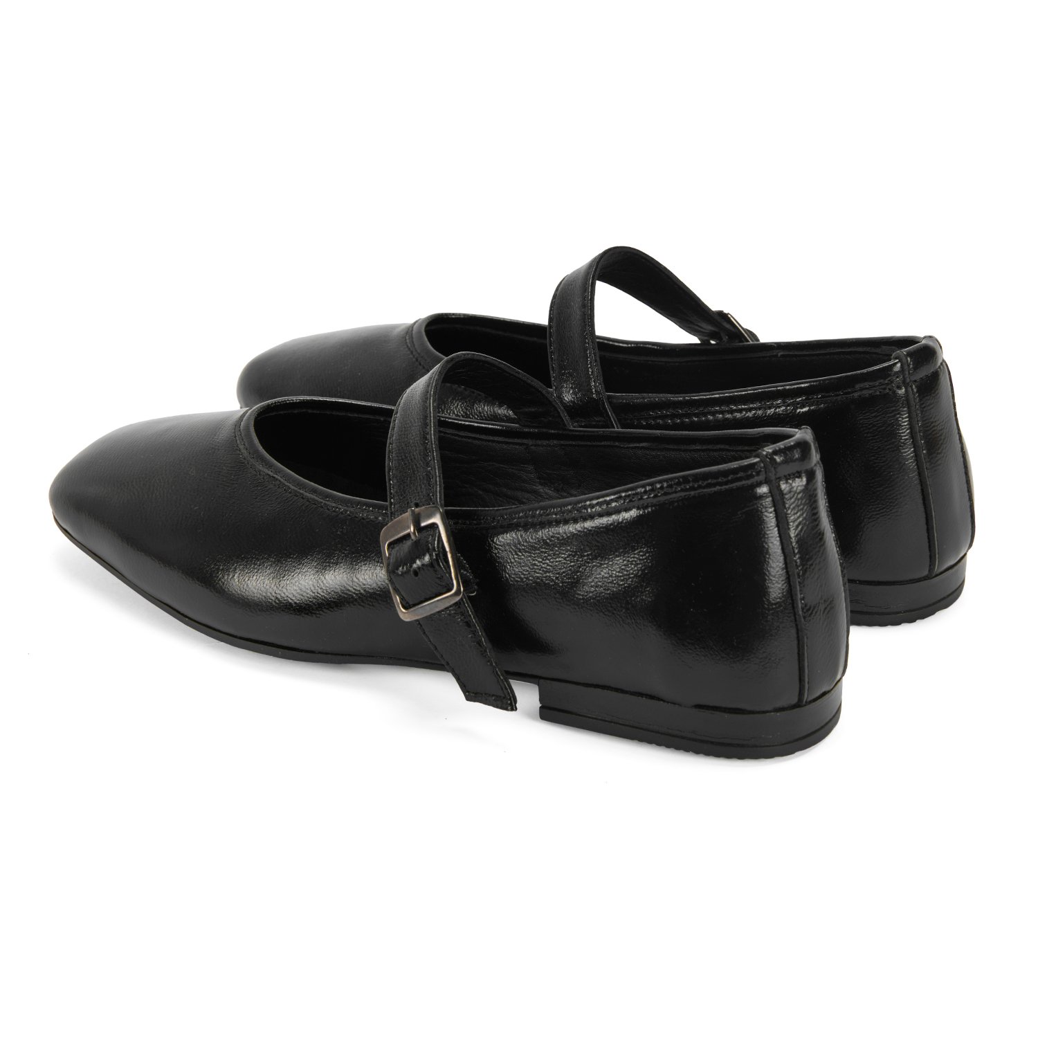 Kadın Siyah Kemer Aksesuarlı Rugan Mary Jane Babet
