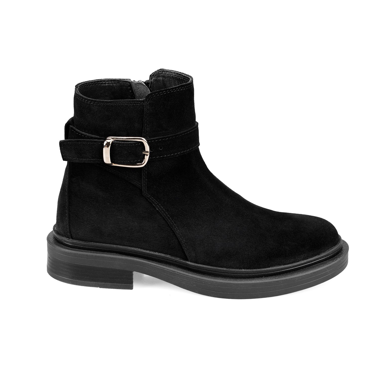 Kadın Siyah Kemer Aksesuarlı Süet Bot