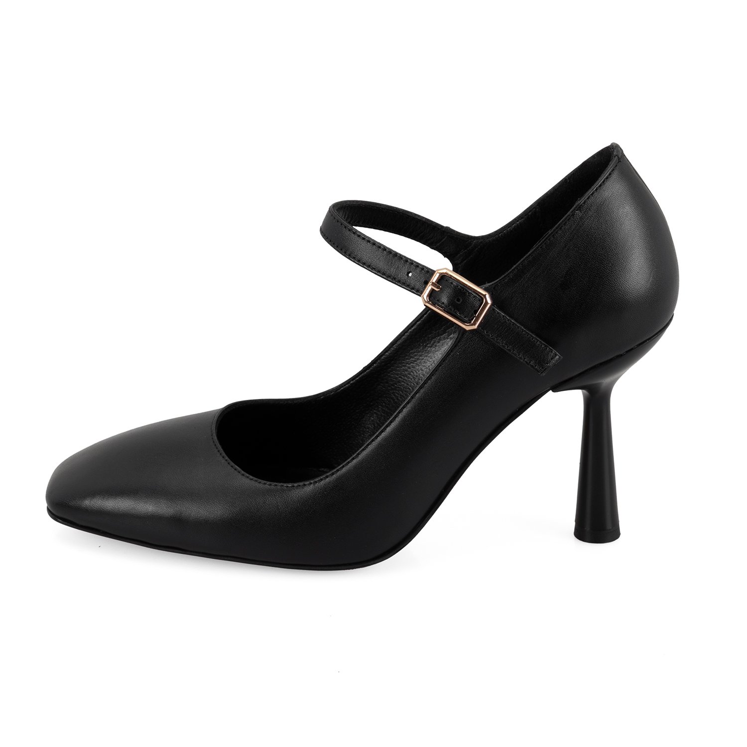 %100 deri, deri iç tabanlı, deri astarlı, neolit tabanlı, ayarlanabilir metal tokalı, kadın stiletto.