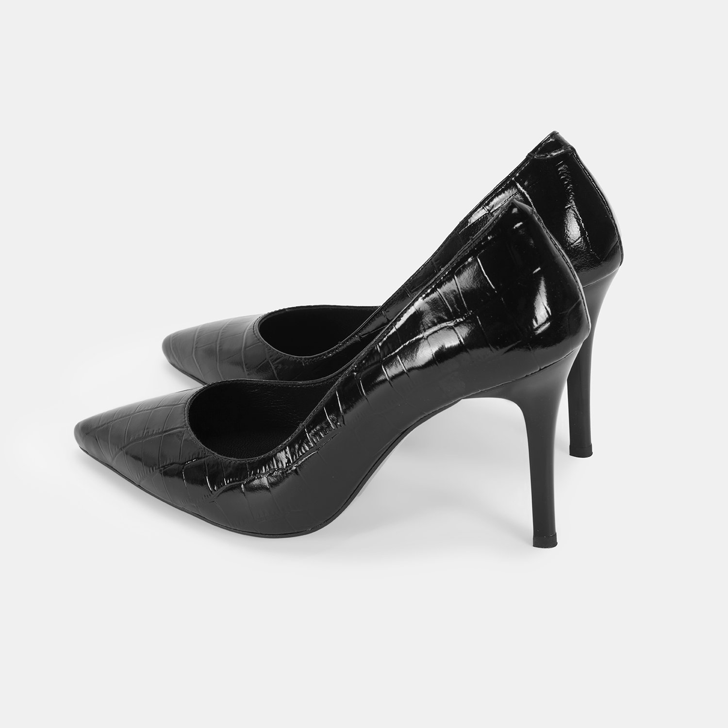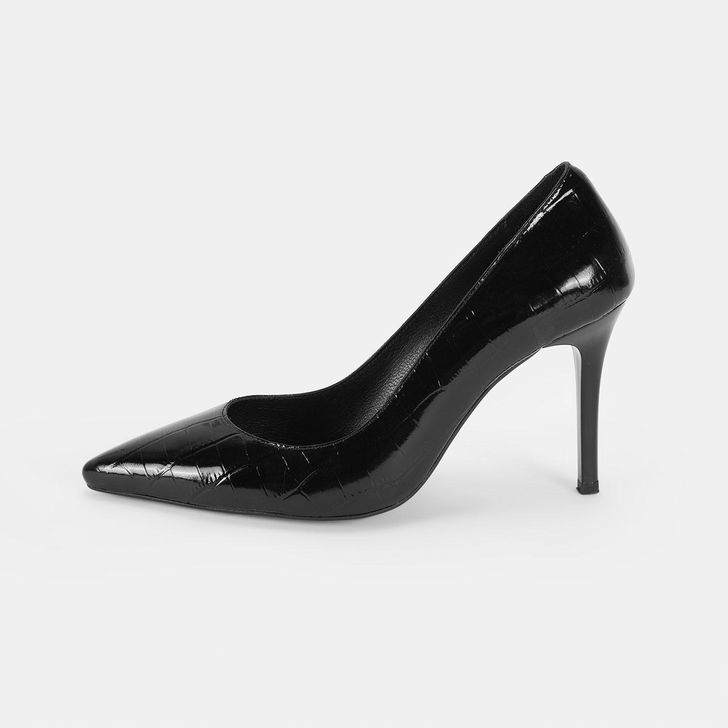 %100 kroko baskılı deri, deri iç tabanlı, deri astarlı, neolit tabanlı, kadın stiletto.