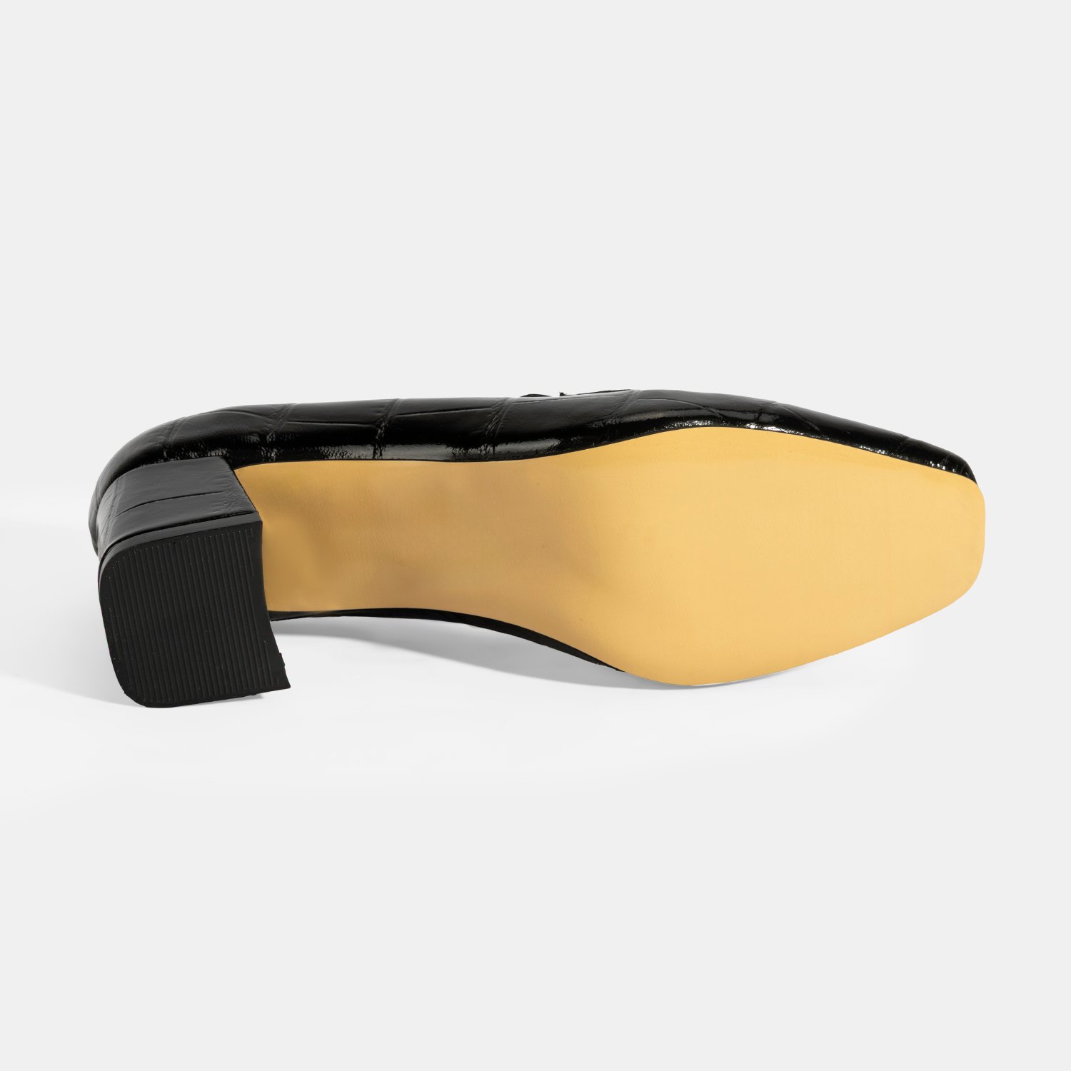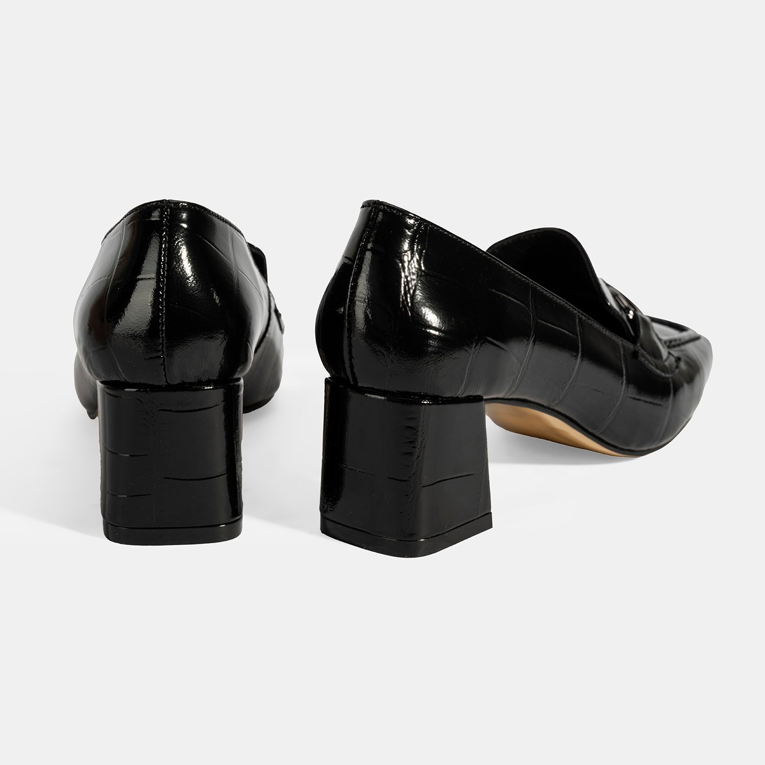 Kadın Siyah Kroko Baskılı Topuklu Rugan Loafer