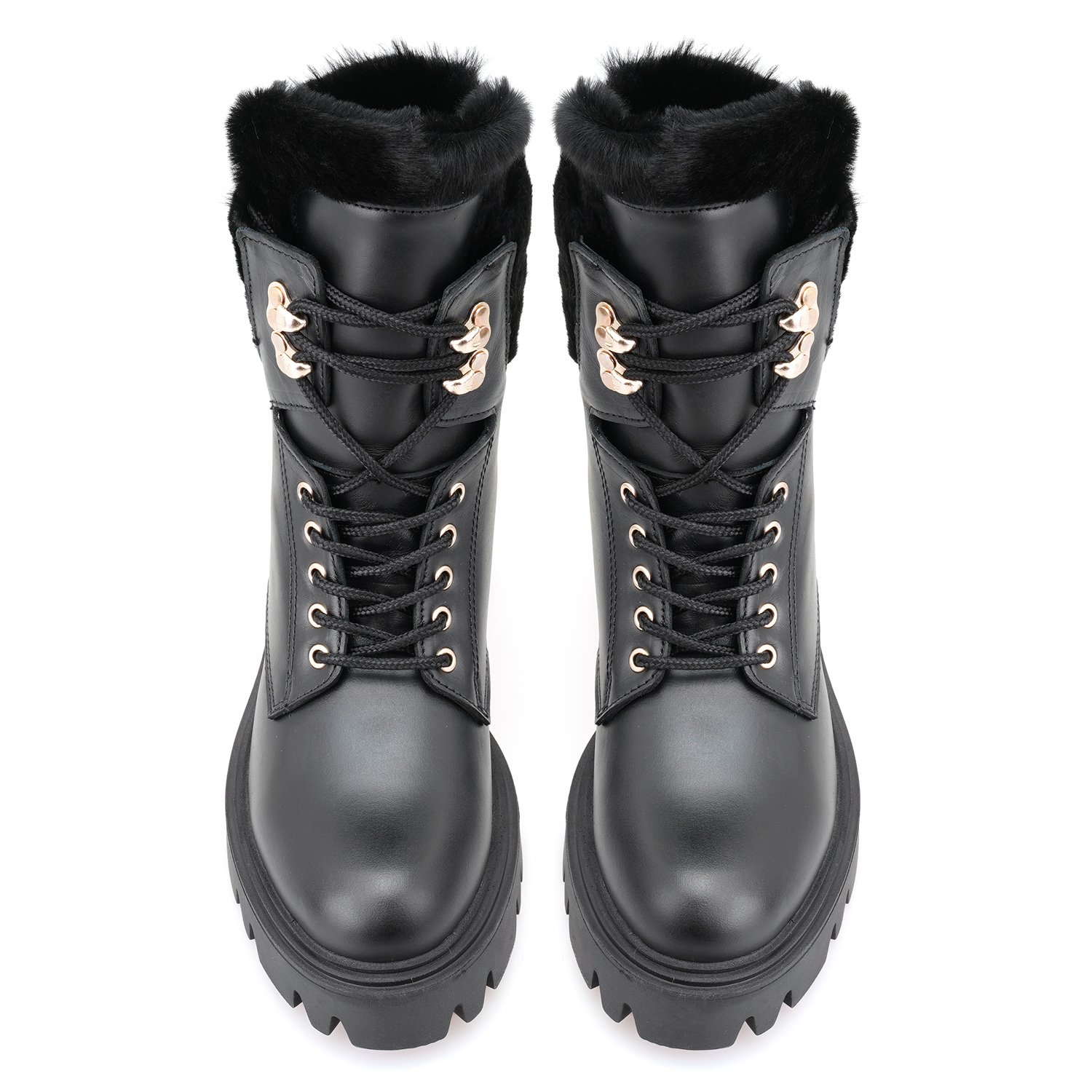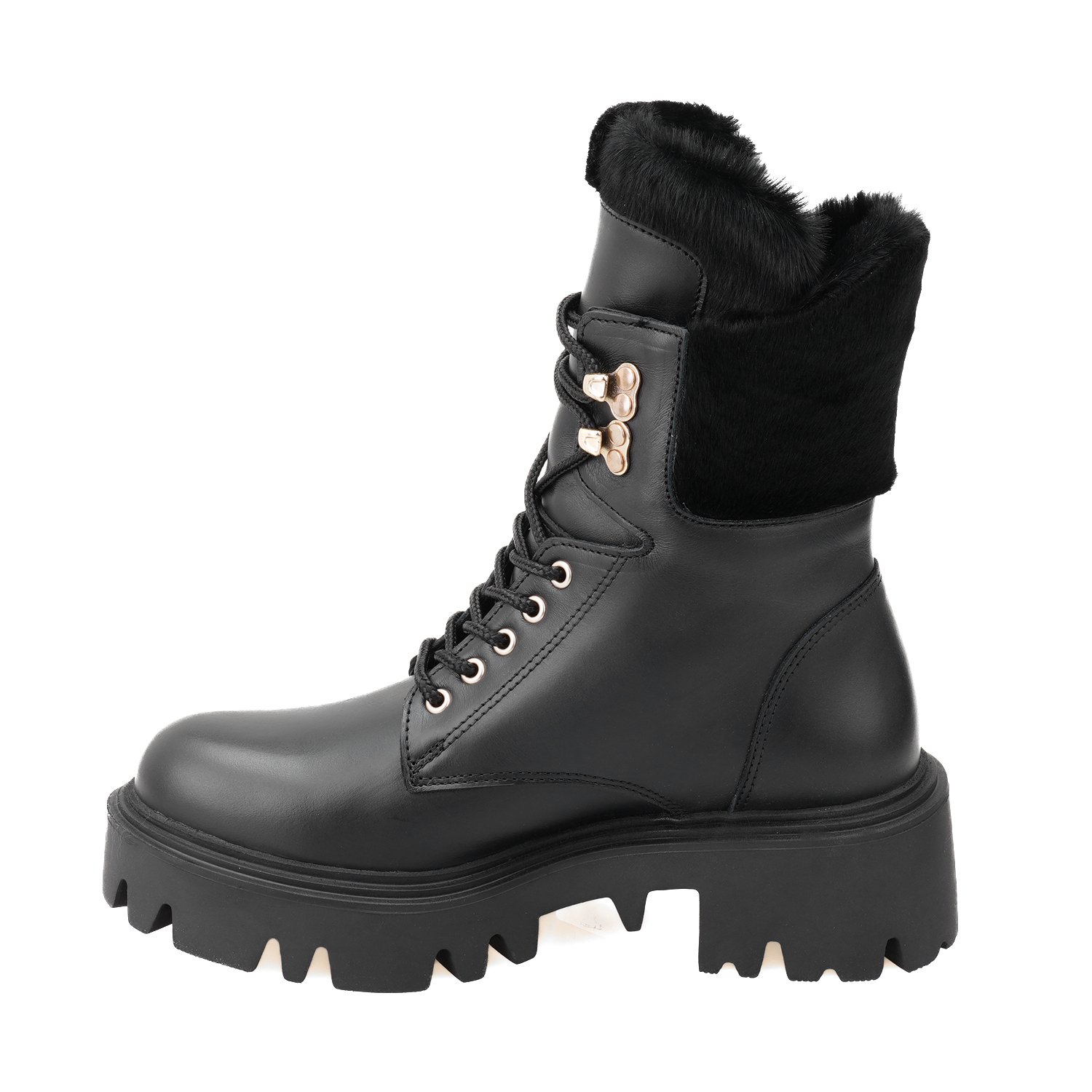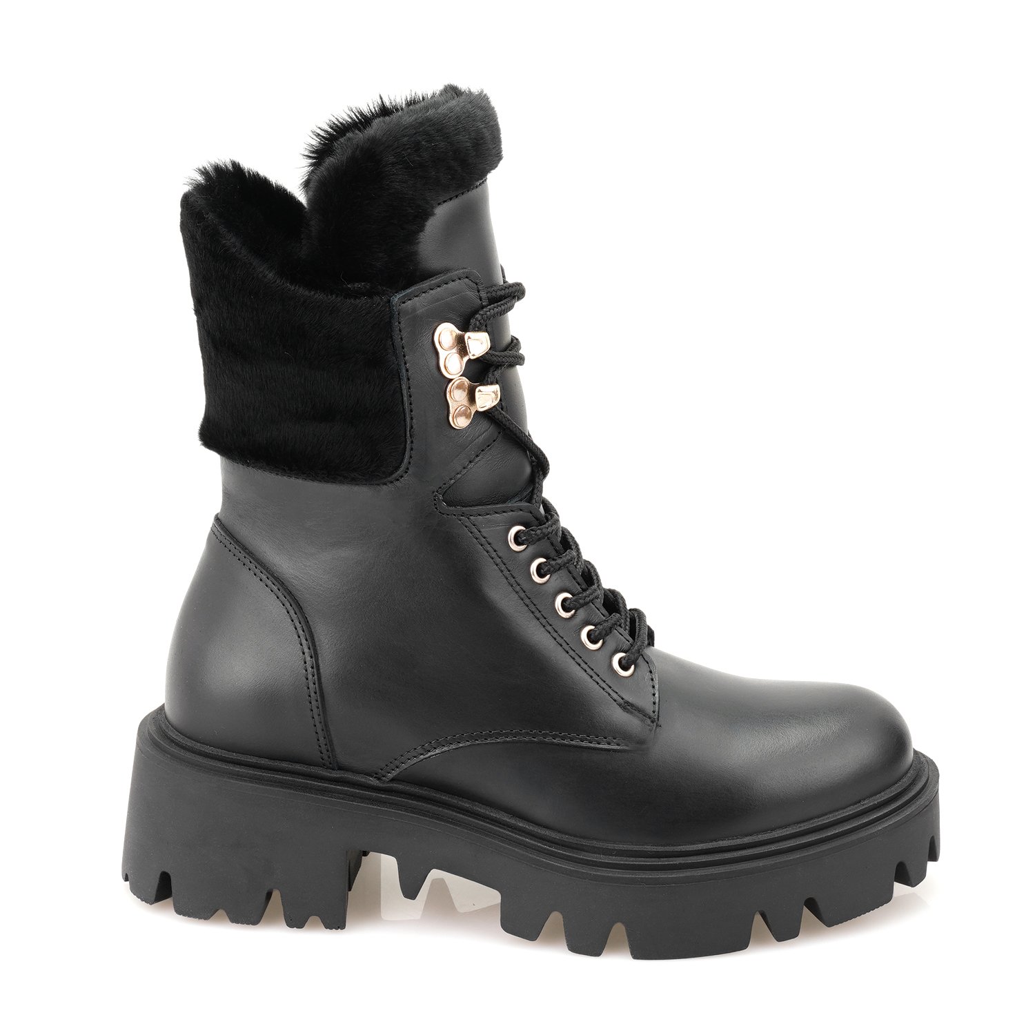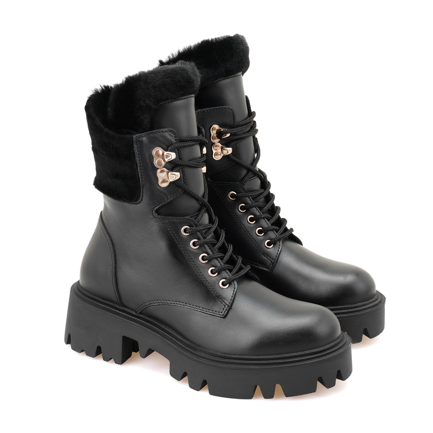 %100 deri, deri iç tabanlı, tekstil astarlı, thermo tabanlı, içten fermuarlı, kürk detaylı, bağcıklı kadın bot.